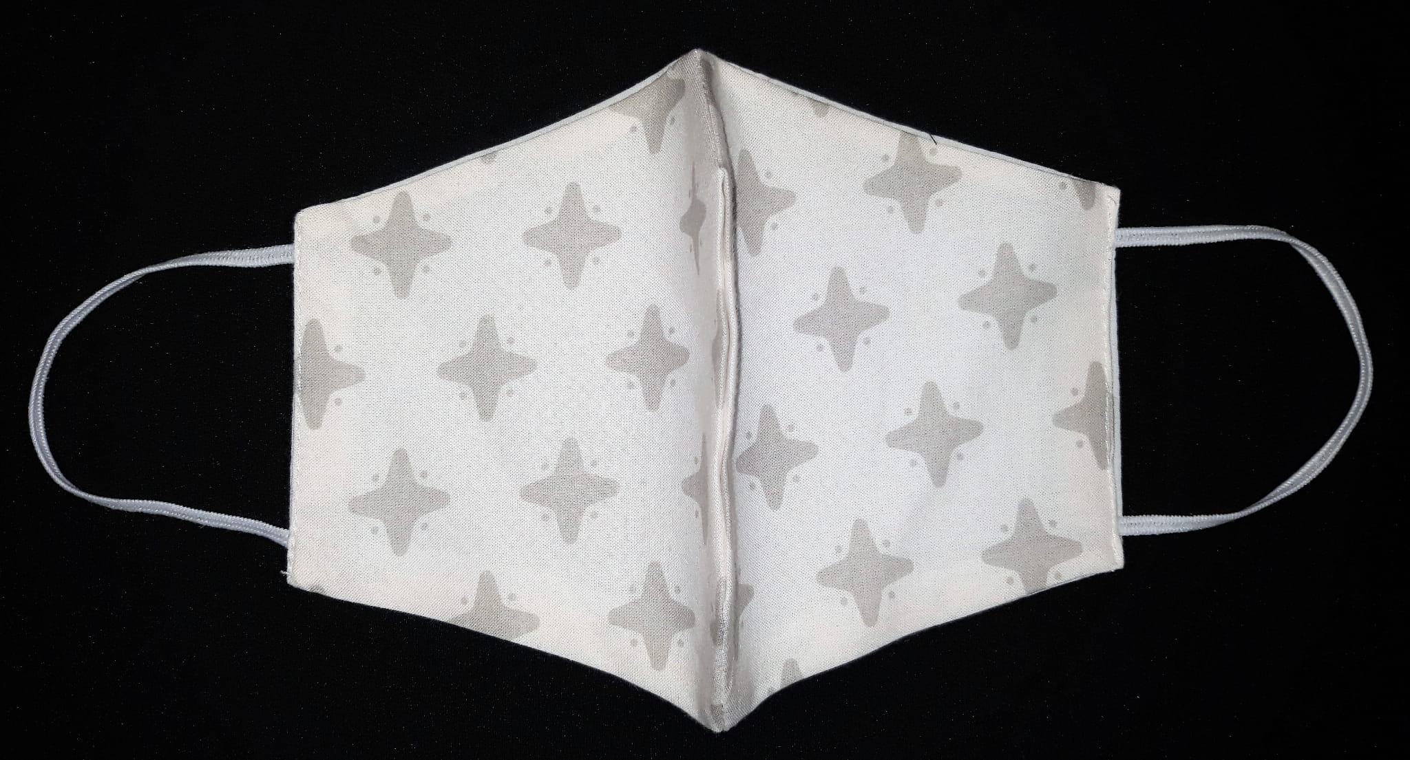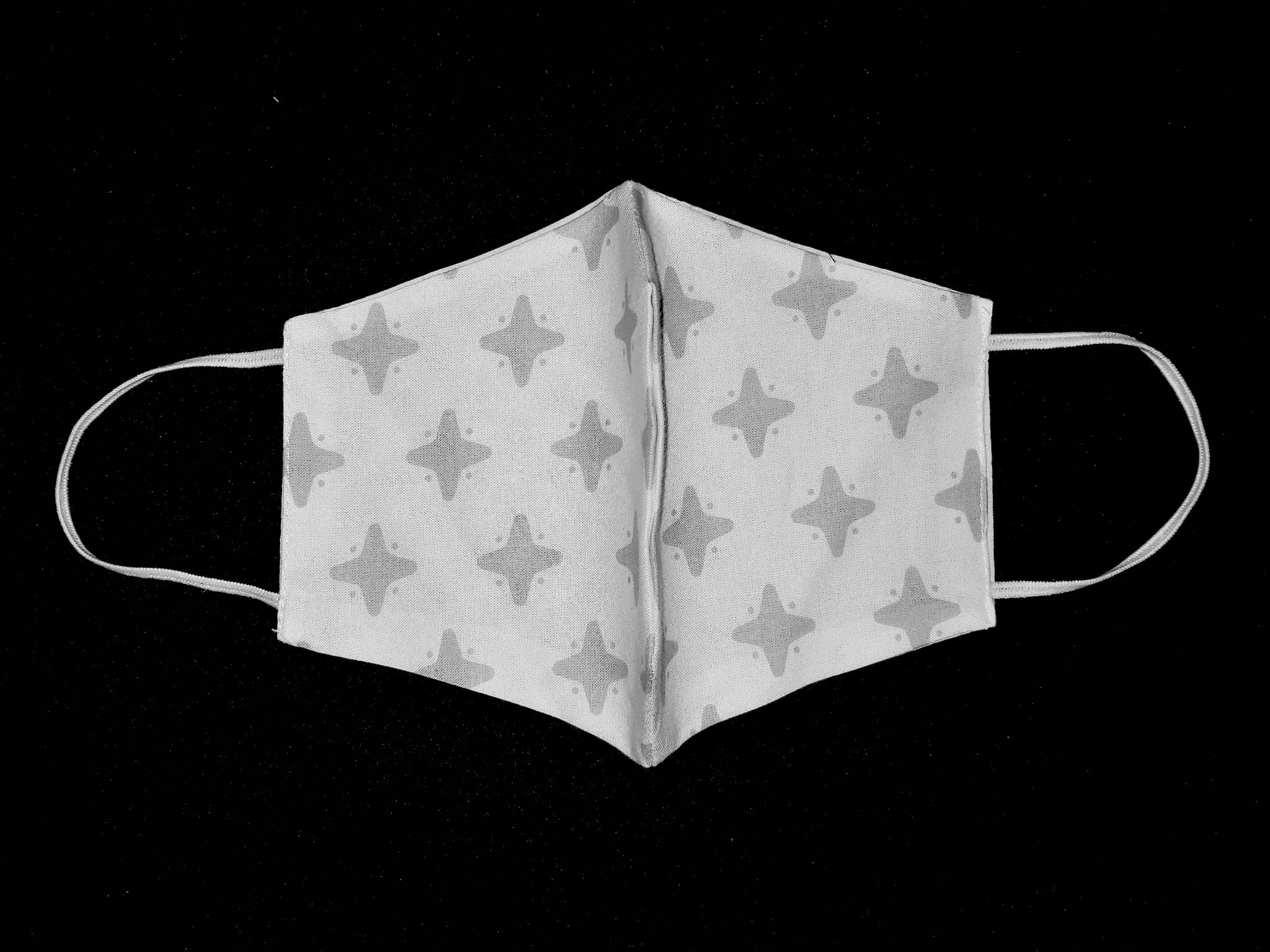 BAWEŁNIANA OCHRONNA MASECZKA DWUWARSTWOWA WIELOKROTNEGO UŻYTKU WZÓR POPIELATE GWIAZDKI NA BIAŁYM TLE