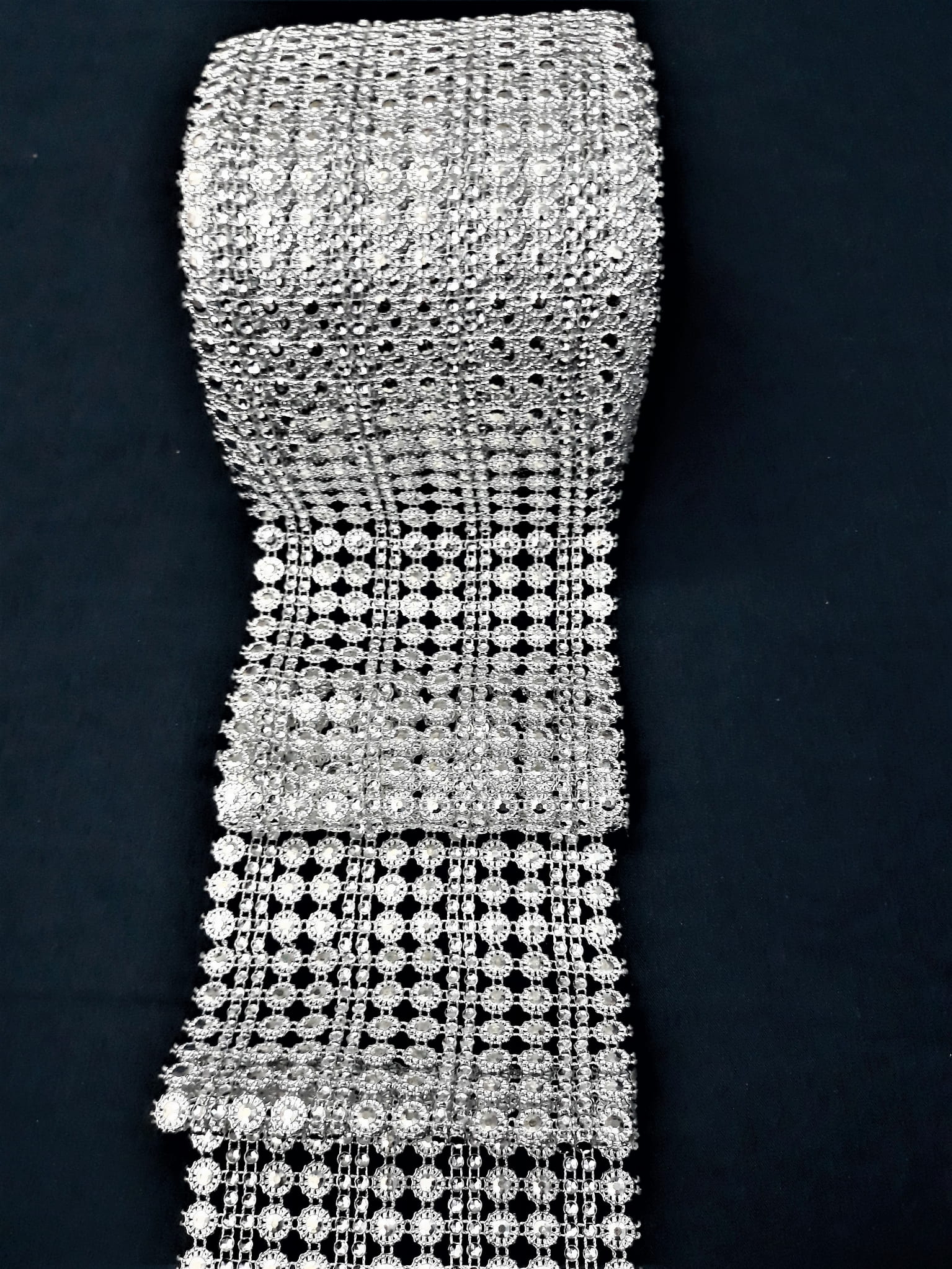 DEKORACYJNA TAŚMA W KOLORZE SREBRNYM Z CYRKONIAMI GLAMOUR SZEROKOŚĆ 12 CM
