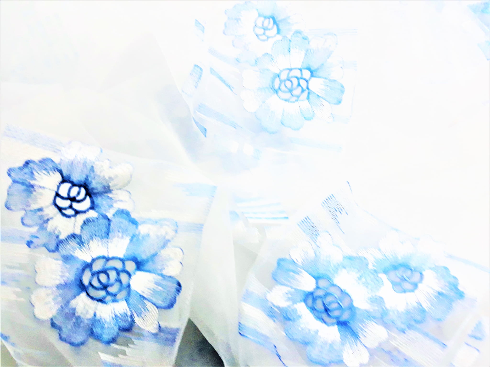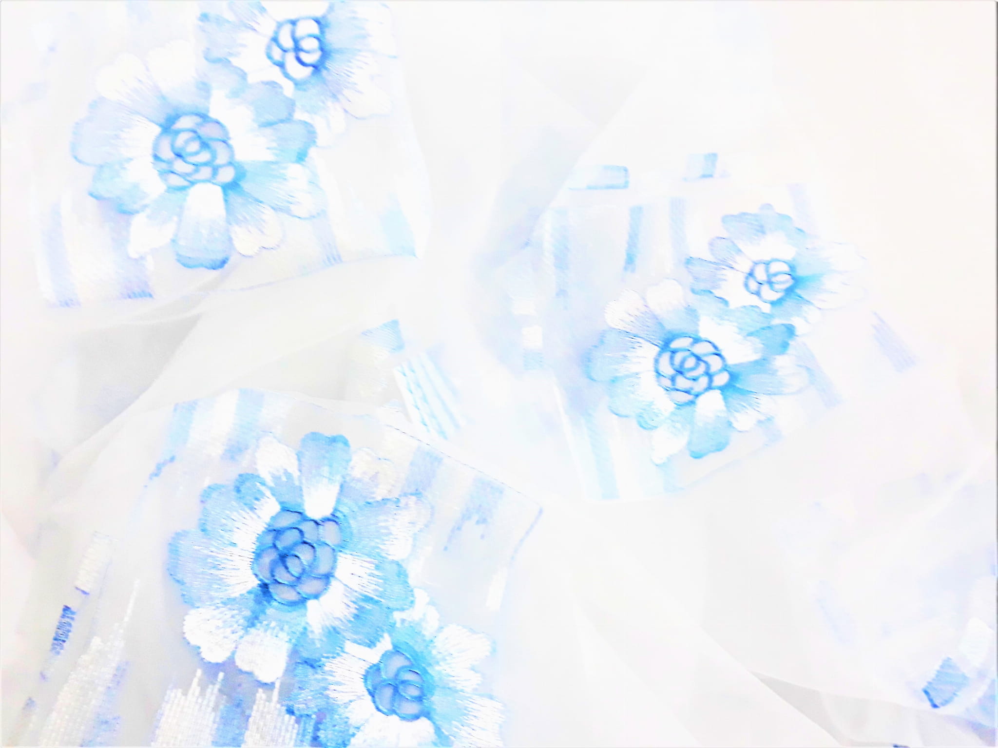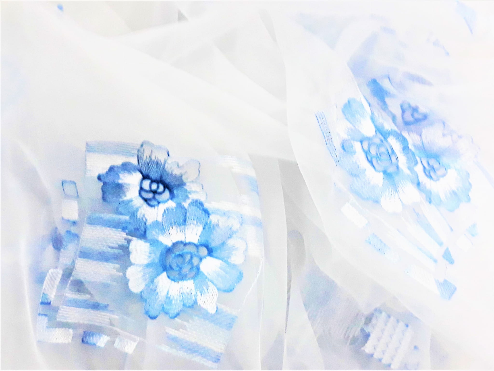 DELIKATNA ORGANTYNA Z PRZEPIĘKNYM HAFTEM W POSTACI DUŻYCH, BŁĘKITNYCH KWIATÓW NA BIAŁYM TLE TO IDEALNA PROPOZYCJA DLA MIŁOŚNIKÓW DELIKATNEJ ARANŻACJI WNĘTRZA. LEKKA I BARDZO SUBTELNA ORGANTYNA NADAJE MAGICZNEGO ROMANTYZMU, ROZŚWIETLA POMIESZCZENIE I ZDECYDOWANIE JE OCIEPLA. PRZEPIĘKNA NIEBIESKA BARWA WZORU TWORZY WYJĄTKOWO ORYGINALNY KLIMAT. ORGANTYNA FANTASTYCZNIE PREZENTUJE SIĘ W POMIESZCZENIACH URZĄDZONYCH W STYLU BOHO, ROMANTYCZNYM, ART DECO, EKLEKTYCZNYM CZY TEŻ GLAMOUR.