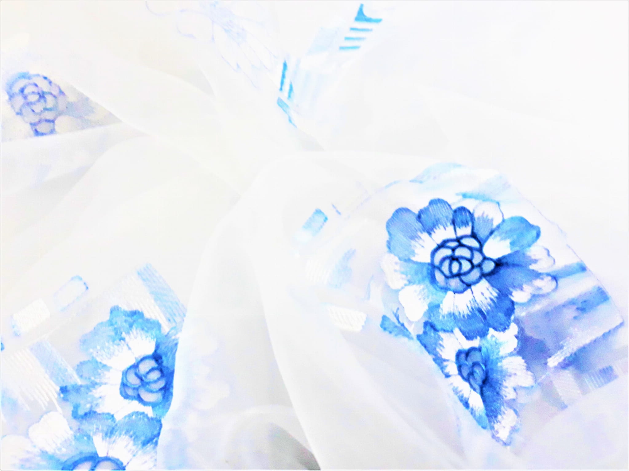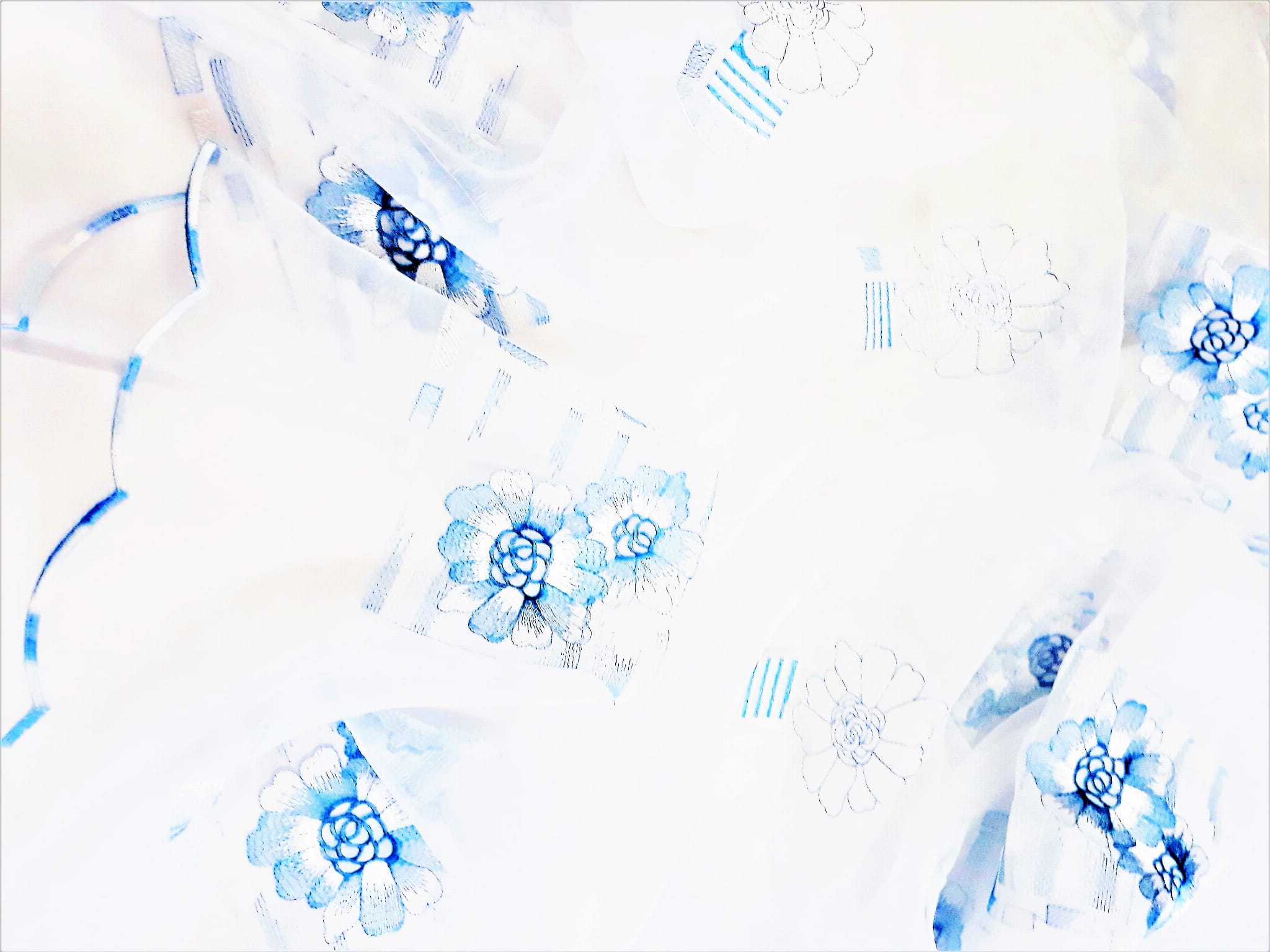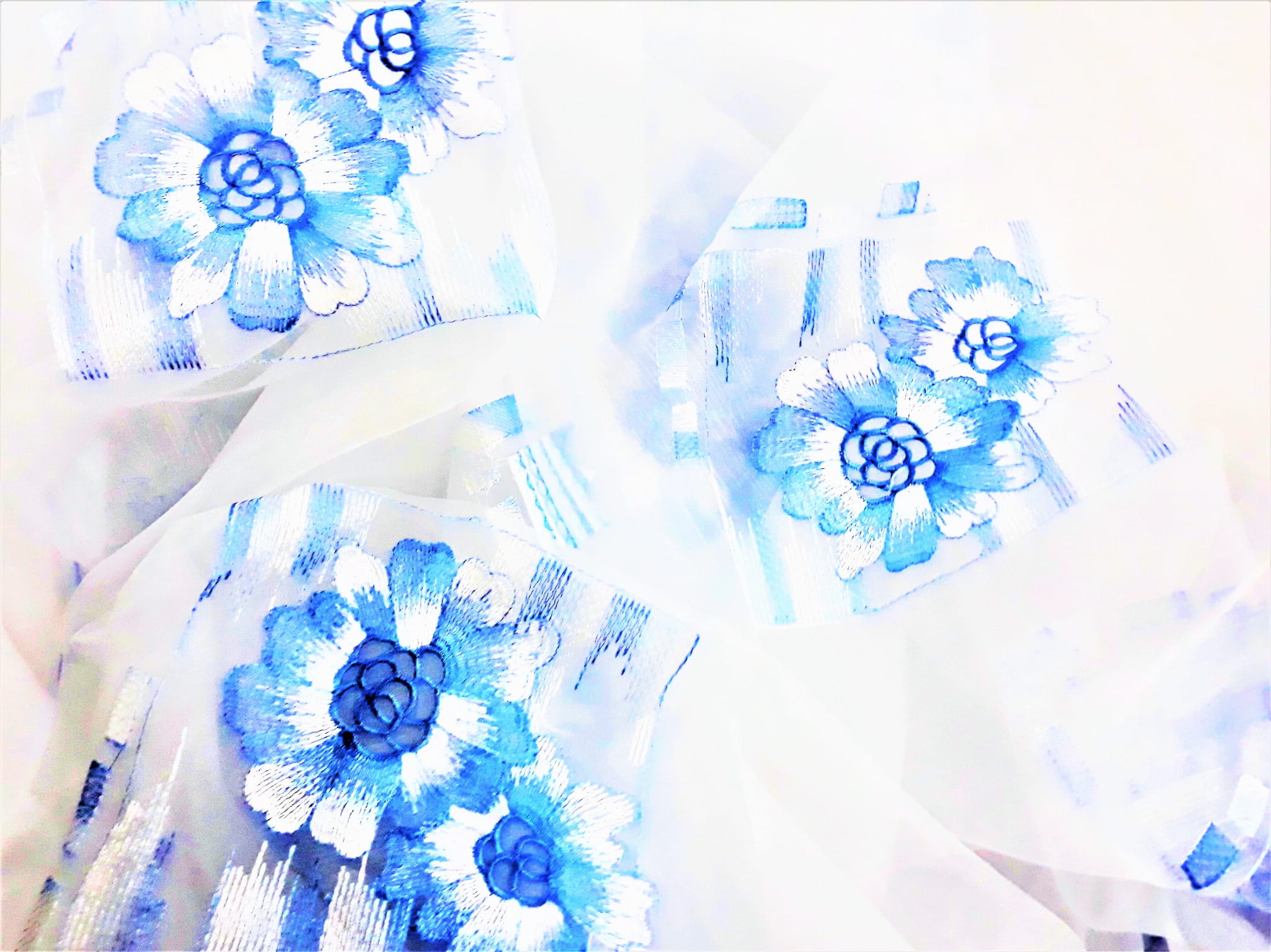 DELIKATNA ORGANTYNA Z PRZEPIĘKNYM HAFTEM W POSTACI DUŻYCH, BŁĘKITNYCH KWIATÓW NA BIAŁYM TLE TO IDEALNA PROPOZYCJA DLA MIŁOŚNIKÓW DELIKATNEJ ARANŻACJI WNĘTRZA. LEKKA I BARDZO SUBTELNA ORGANTYNA NADAJE MAGICZNEGO ROMANTYZMU, ROZŚWIETLA POMIESZCZENIE I ZDECYDOWANIE JE OCIEPLA. PRZEPIĘKNA NIEBIESKA BARWA WZORU TWORZY WYJĄTKOWO ORYGINALNY KLIMAT. ORGANTYNA FANTASTYCZNIE PREZENTUJE SIĘ W POMIESZCZENIACH URZĄDZONYCH W STYLU BOHO, ROMANTYCZNYM, ART DECO, EKLEKTYCZNYM CZY TEŻ GLAMOUR.