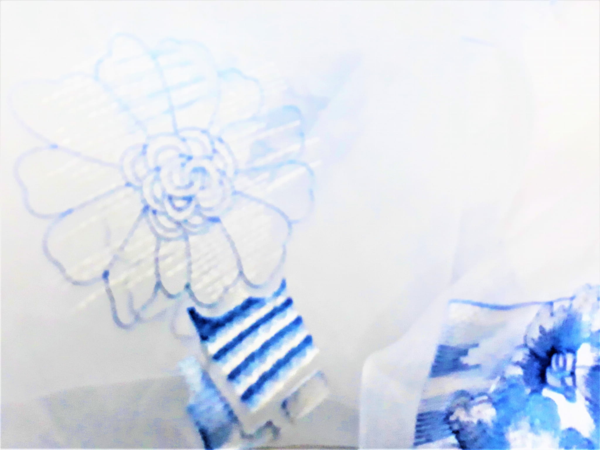 DÓŁ ORGANTYNY ZOSTAŁ WYKOŃCZONY EFEKTEM DELIKATNEJ FALI W BŁĘKITNYM KOLORZE, WZÓR ZACZYNA SIĘ NA WYSOKOŚCI 80 CM OD GÓRY.