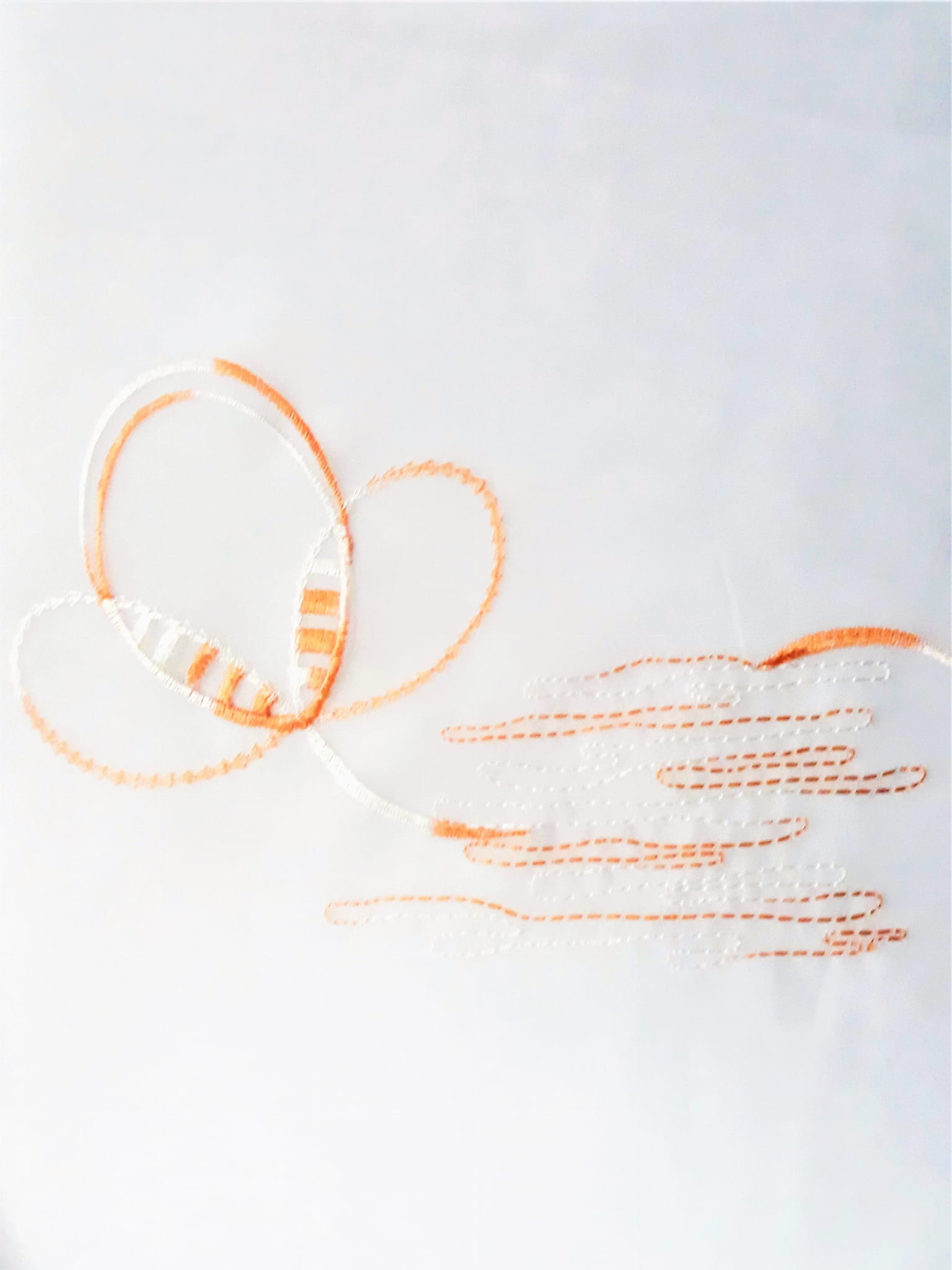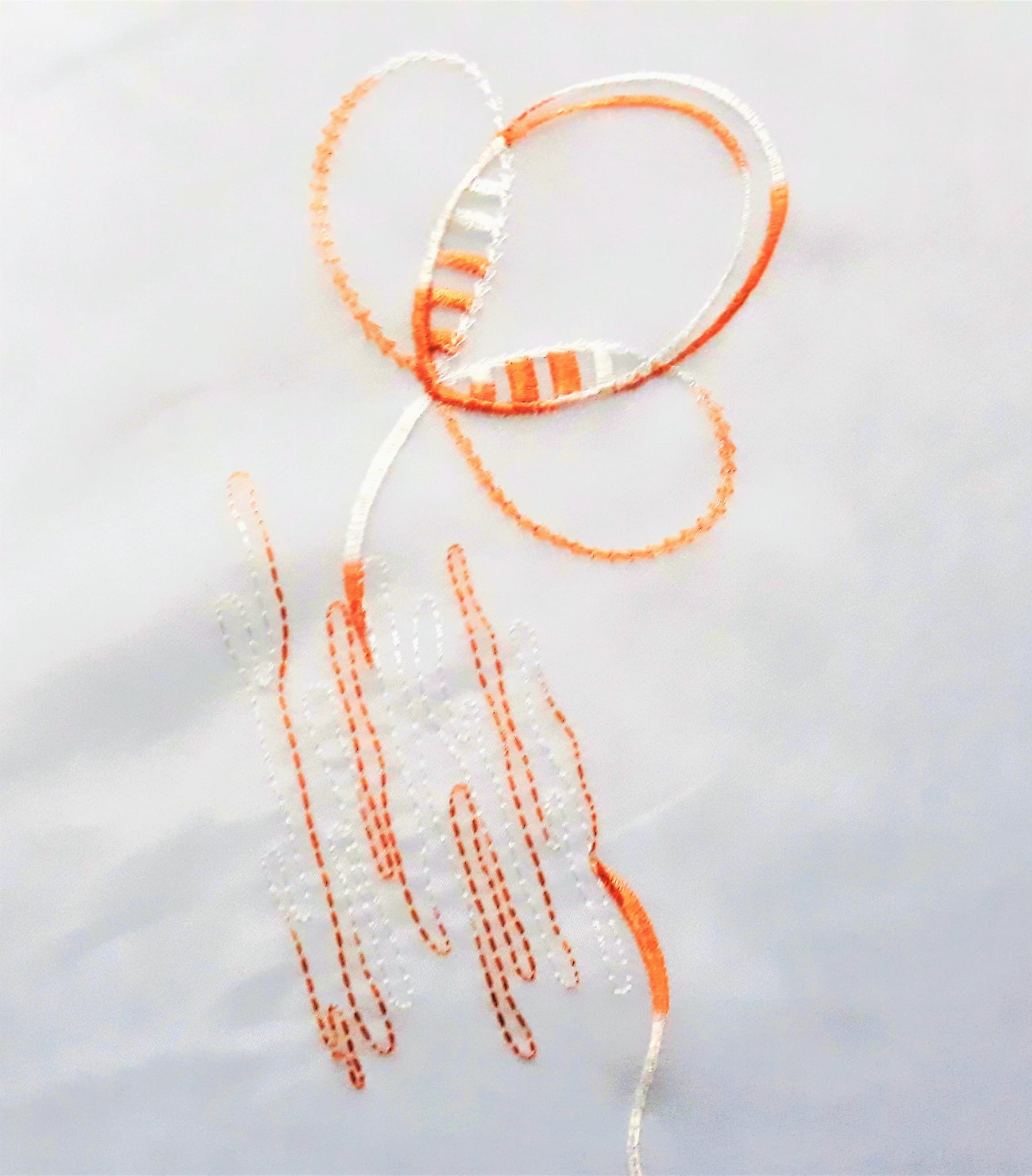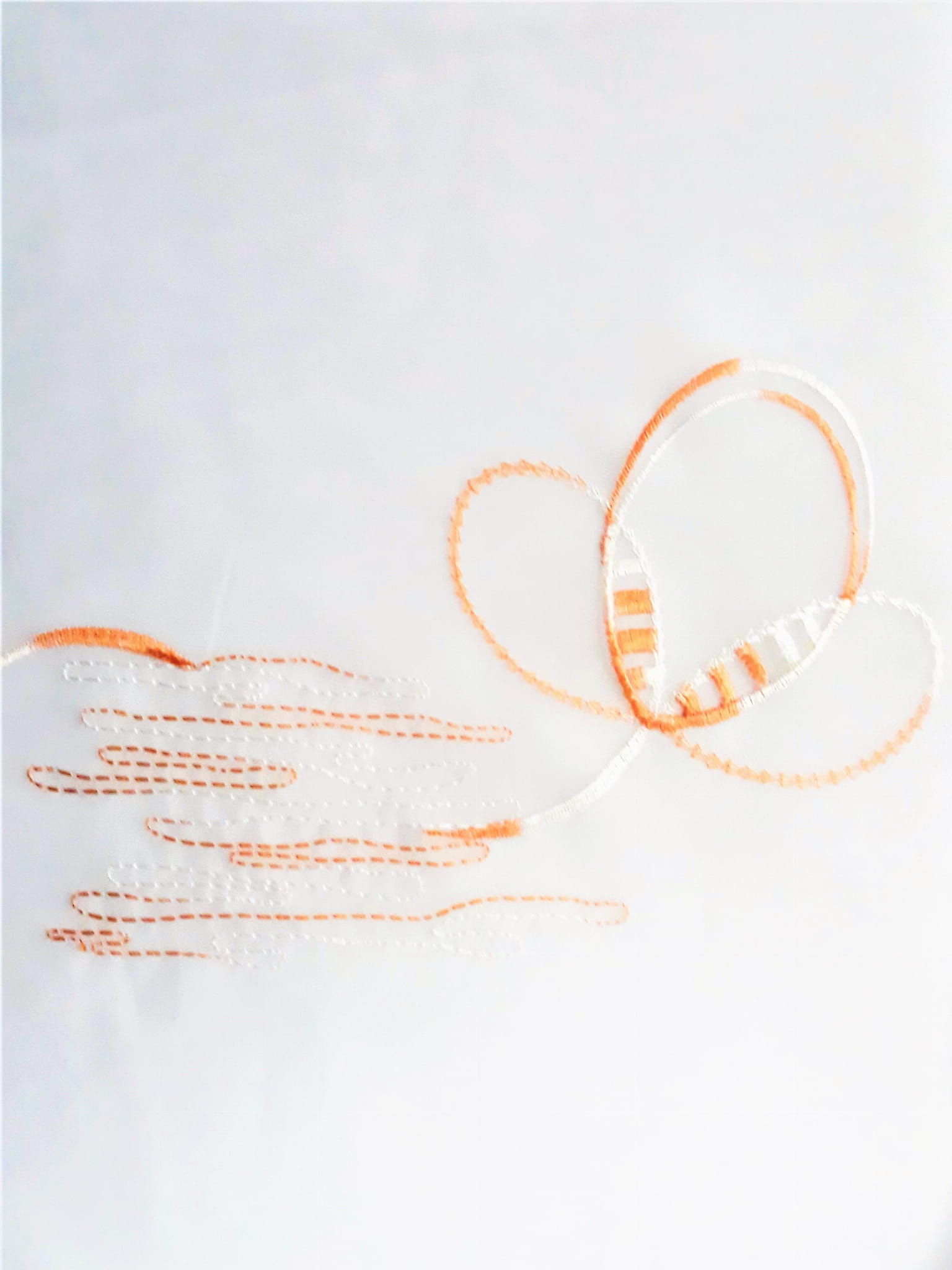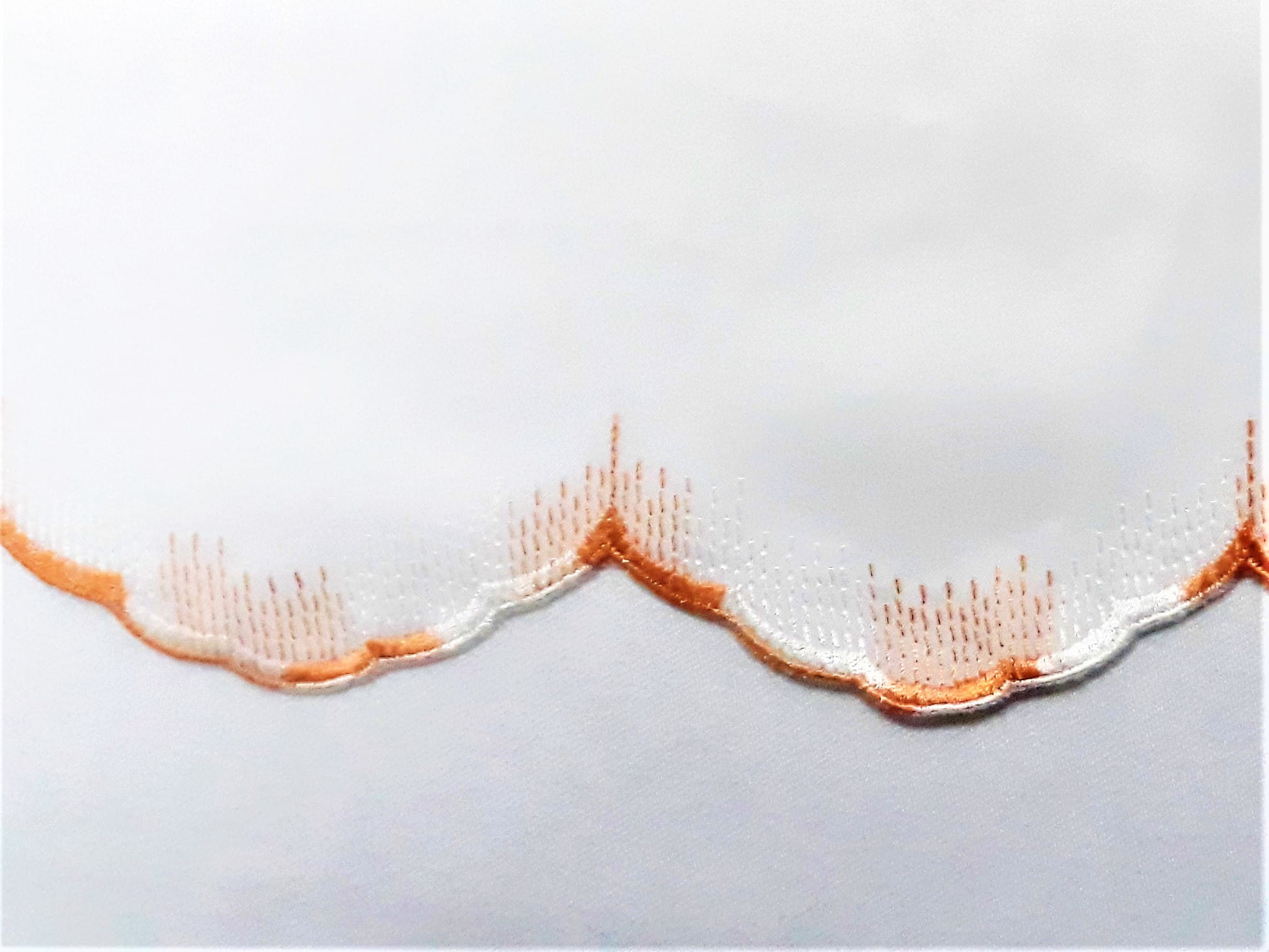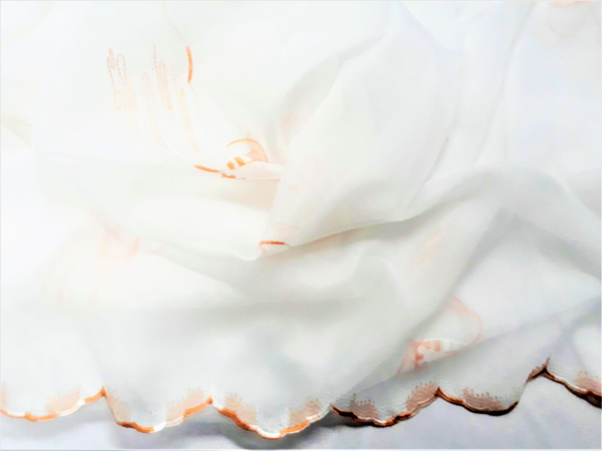 DÓŁ WOALU ZOSTAŁ WYKOŃCZONY EFEKTEM DELIKATNEJ FALI W BRĄZOWYM KOLORZE, WZÓR ZACZYNA SIĘ NA WYSOKOŚCI 70 CM OD GÓRY.