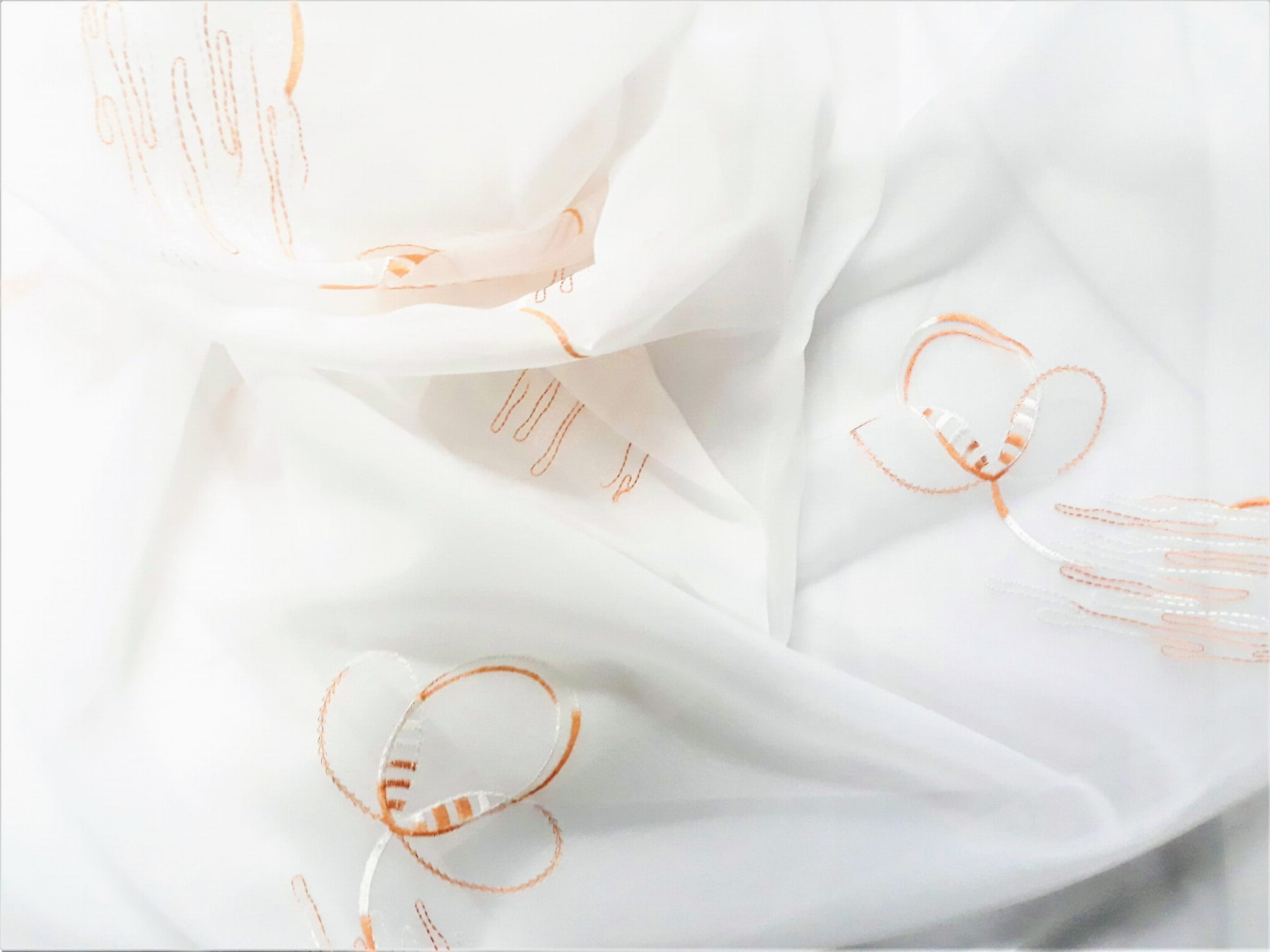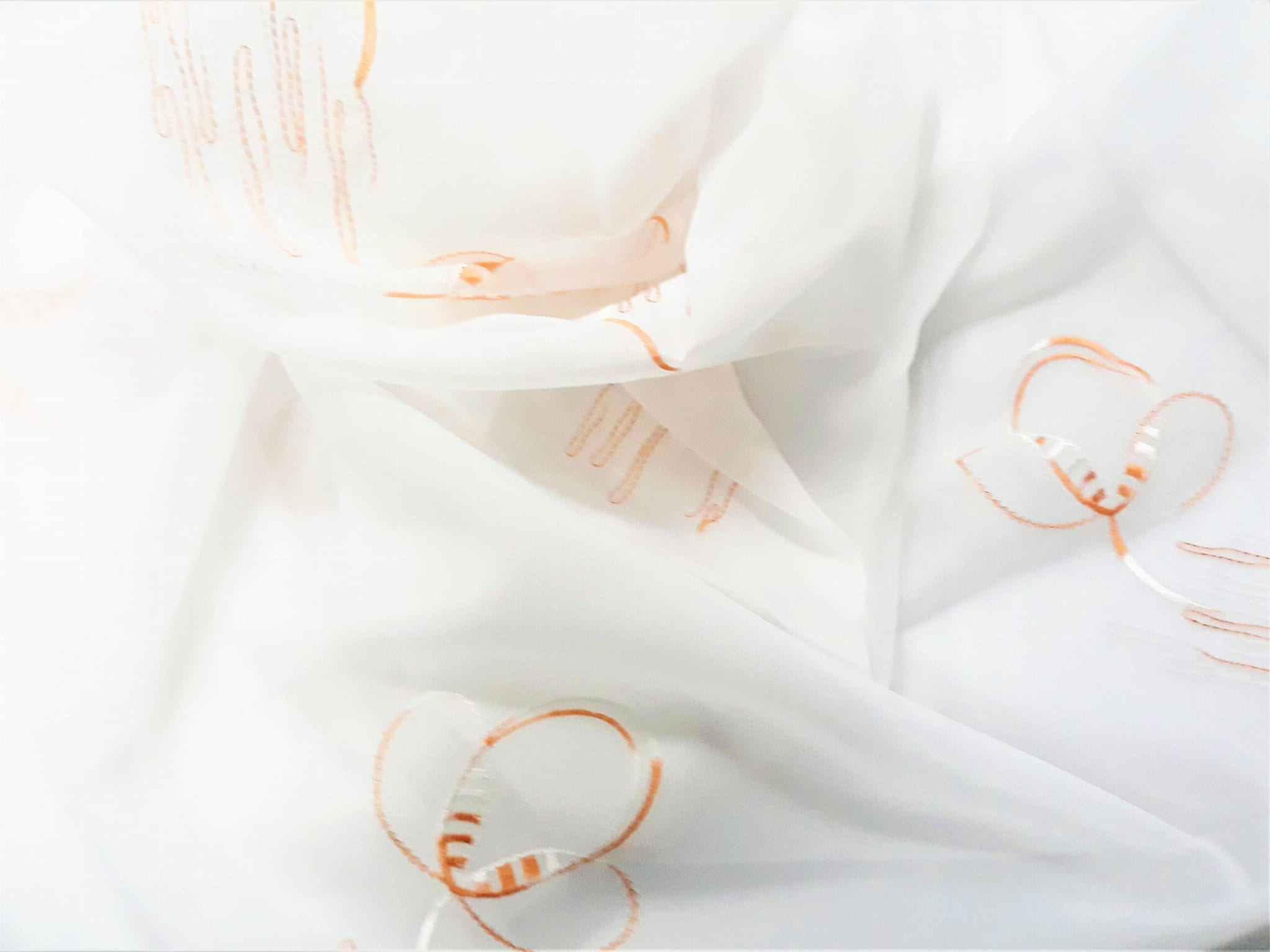 DELIKATNY WOAL Z ELEGANCKIM HAFTEM W POSTACI BIAŁO - BRĄZOWEGO ORNAMENTU NA BIAŁYM TLE TO NOWOCZESNY POMYSŁ NA NIEBANALNĄ DEKORACJĘ. WOAL CHARAKTERYZUJE SIĘ DUŻĄ ZWIEWNOŚCIĄ I LEKKOŚCIĄ, NADAJE WNĘTRZU SUBTELNOŚCI I NIE WYMAGA PRASOWANIA. NEUTRALNY KOLOR BIELI W POŁĄCZENIU Z BARDZO ORYGINALNYMI ORNAMENTAMI W TONACJI JASNEGO BRĄZU STANOWI PRZEPIĘKNĄ I PEŁNĄ FINEZYJNEGO UROKU ARANŻACJĘ OKNA. WOAL DOSKONALE SPEŁNIA ROLĘ OZDOBNEJ FIRANKI, MOŻE TEŻ BYĆ WYKORZYSTANY JAKO DEKORACYJNA, FANTAZYJNIE UPIĘTA ZASŁONA.