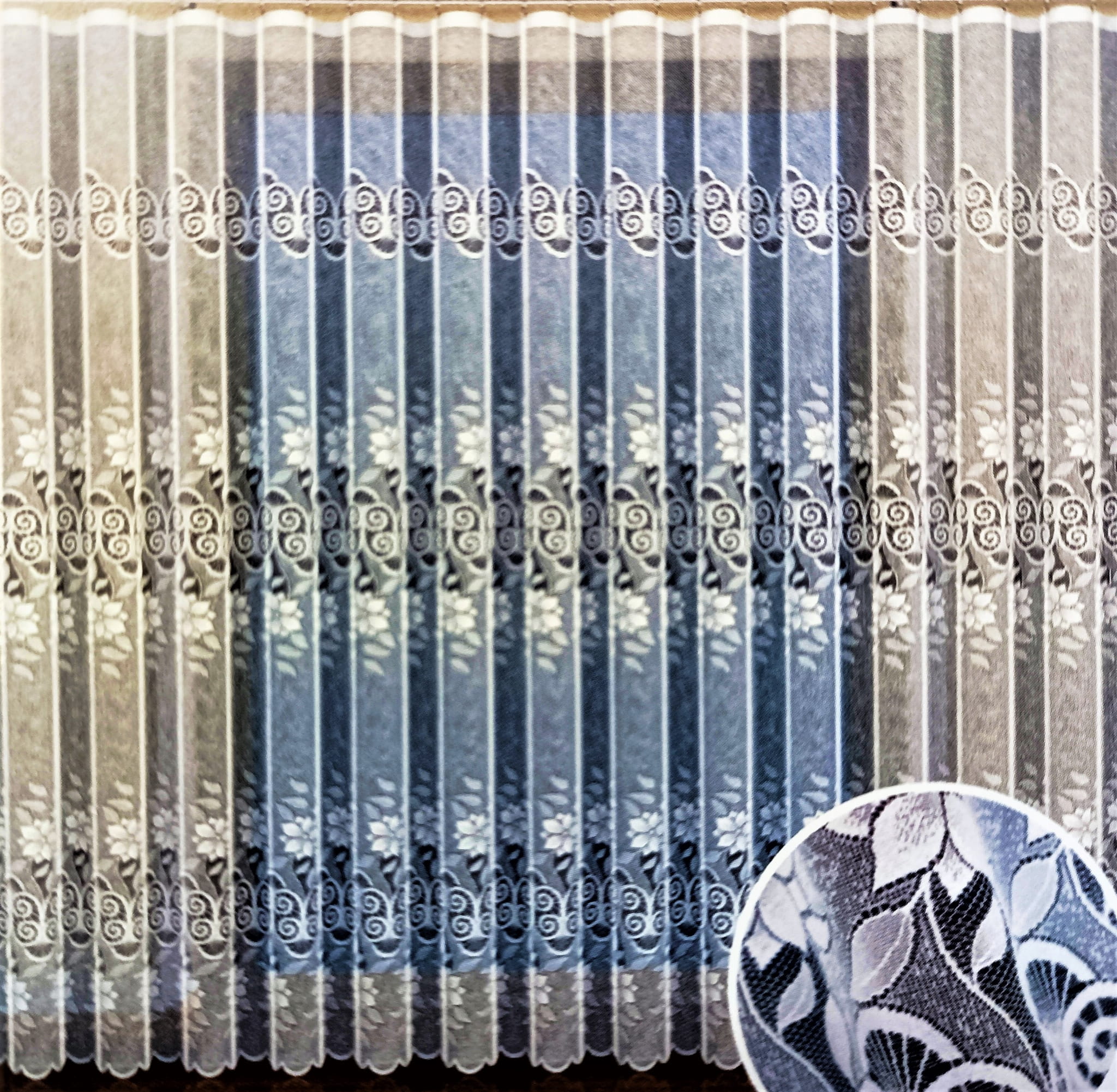 EFEKTOWNA FIRANA ŻAKARD KOLOR BIAŁY OZDOBNE SZLAKI Z PIĘKNYM MOTYWEM FLORYSTYCZNYM WYSOKOŚĆ 160 CM 250 CM PRODUCENT HAFT KALISZ