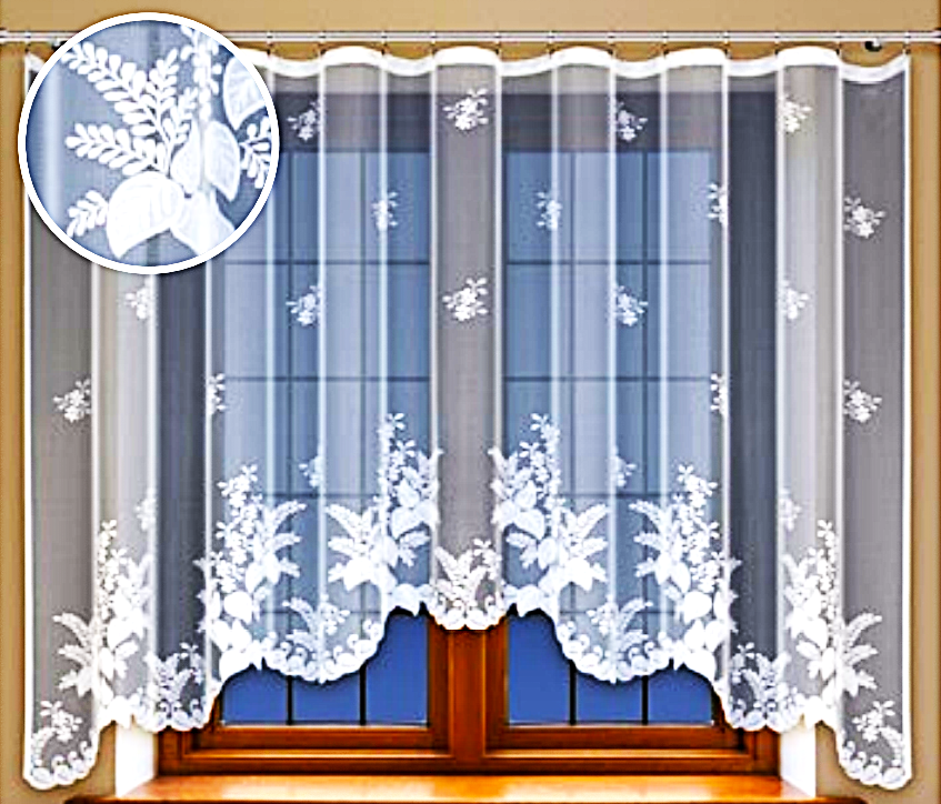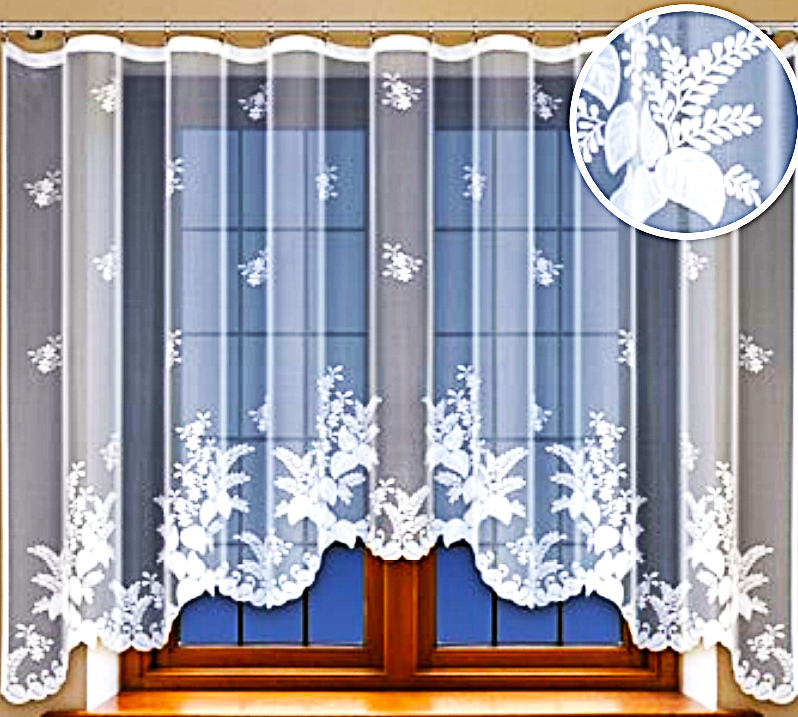 EFEKTOWNA GOTOWA FIRANKA Z BIAŁEGO ŻAKARDU TO ŚWIETNY POMYSŁ NA ORYGINALNĄ ARANŻACJĘ OKNA. PIĘKNY WZÓR Z UNIKALNYM MOTYWEM FLORYSTYCZNYM PREZENTUJE SIĘ DOSKONALE, NADAJĄC WNĘTRZU UNIKALNEGO CHARAKTERU. MODNY DESIGN W POSTACI LEKKO WYCIĘTEGO DOŁU PODKREŚLA NOWOCZESNY KLIMAT PRZESTRZENI I TWORZY PEŁEN FINEZJI NASTRÓJ.
