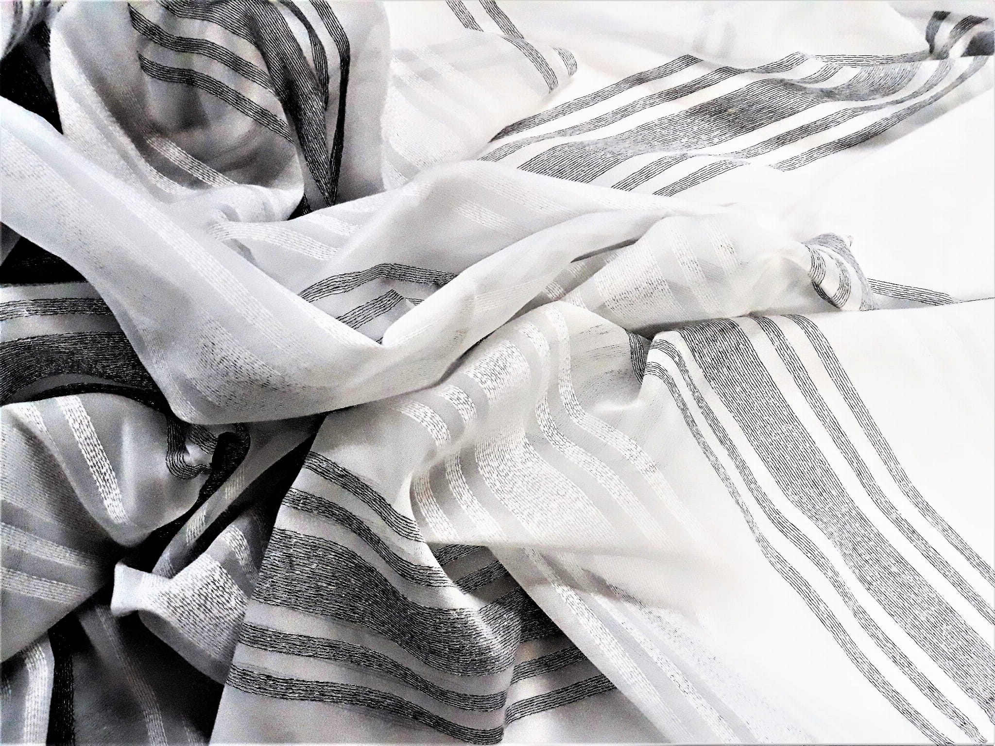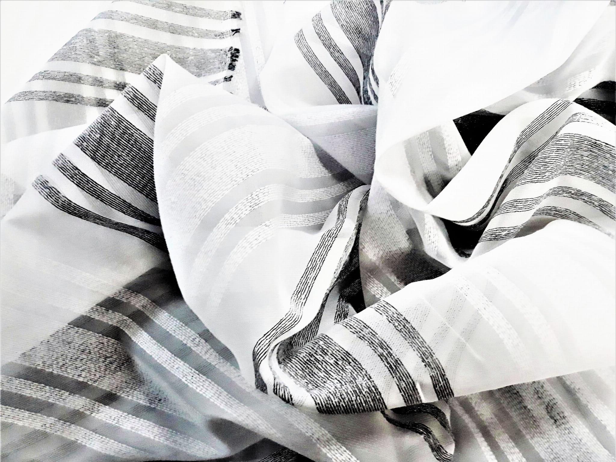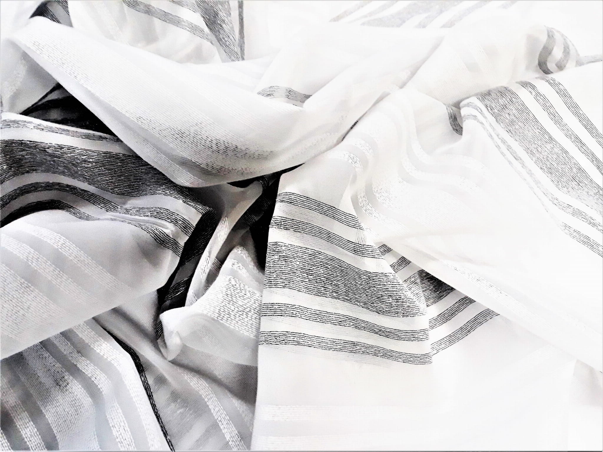 EFEKTOWNA ORGANTYNA NA BAZIE WOALU W STONOWANYCH KOLORACH BIELI ORAZ SREBRZYSTEJ SZAROŚCI TO EKSKLUZYWNA ARANŻACJA OKNA W PEREKCYJNYM WYDANIU. NIEZWYKLE ELEGANCKIE POŁĄCZENIE KOLORYSTYCZNE NADAJE WNĘTRZU LUKSUSOWEGO KLIMATU, A MODNY WZÓR, UKŁADAJĄCY SIĘ W POZIOME PASY O RÓŻNYCH SZEROKOŚCIACH OPTYCZNIE POSZERZA POMIESZCZENIE I ZDECYDOWANIE JE ROZJAŚNIA. ZESTAWIENIE PIĘKNEJ, SREBRZYSTEJ SZAROŚCI Z BIELĄ ORAZ DELIKATNA STRUKTURA POŁĄCZONEJ Z WOALEM ORGANTYNY SPRAWIAJĄ, ŻE OKNO ZYSKA NIEZWYKŁY BLASK, ŚWIEŻOŚĆ I ZUPEŁNIE NOWY WYGLĄD.