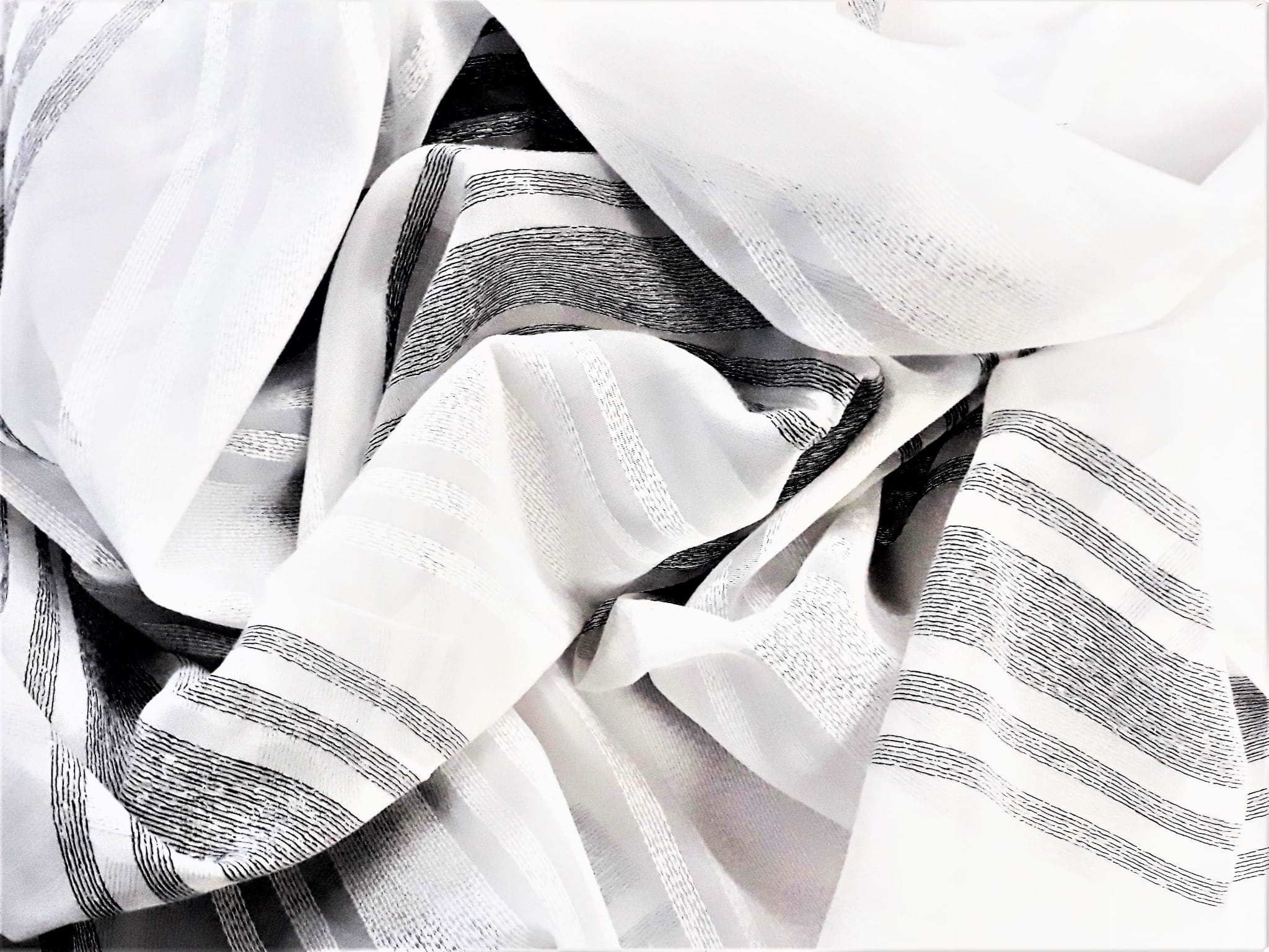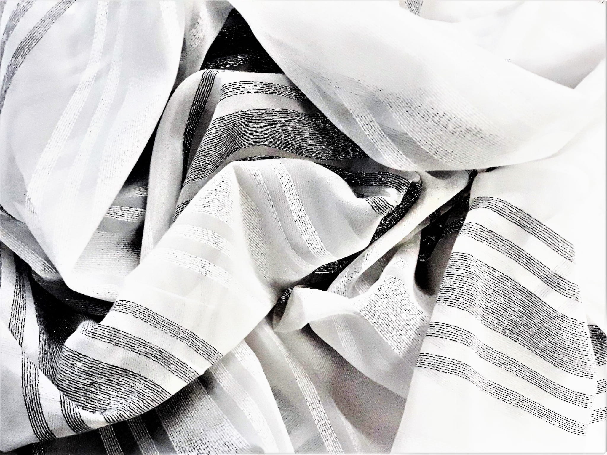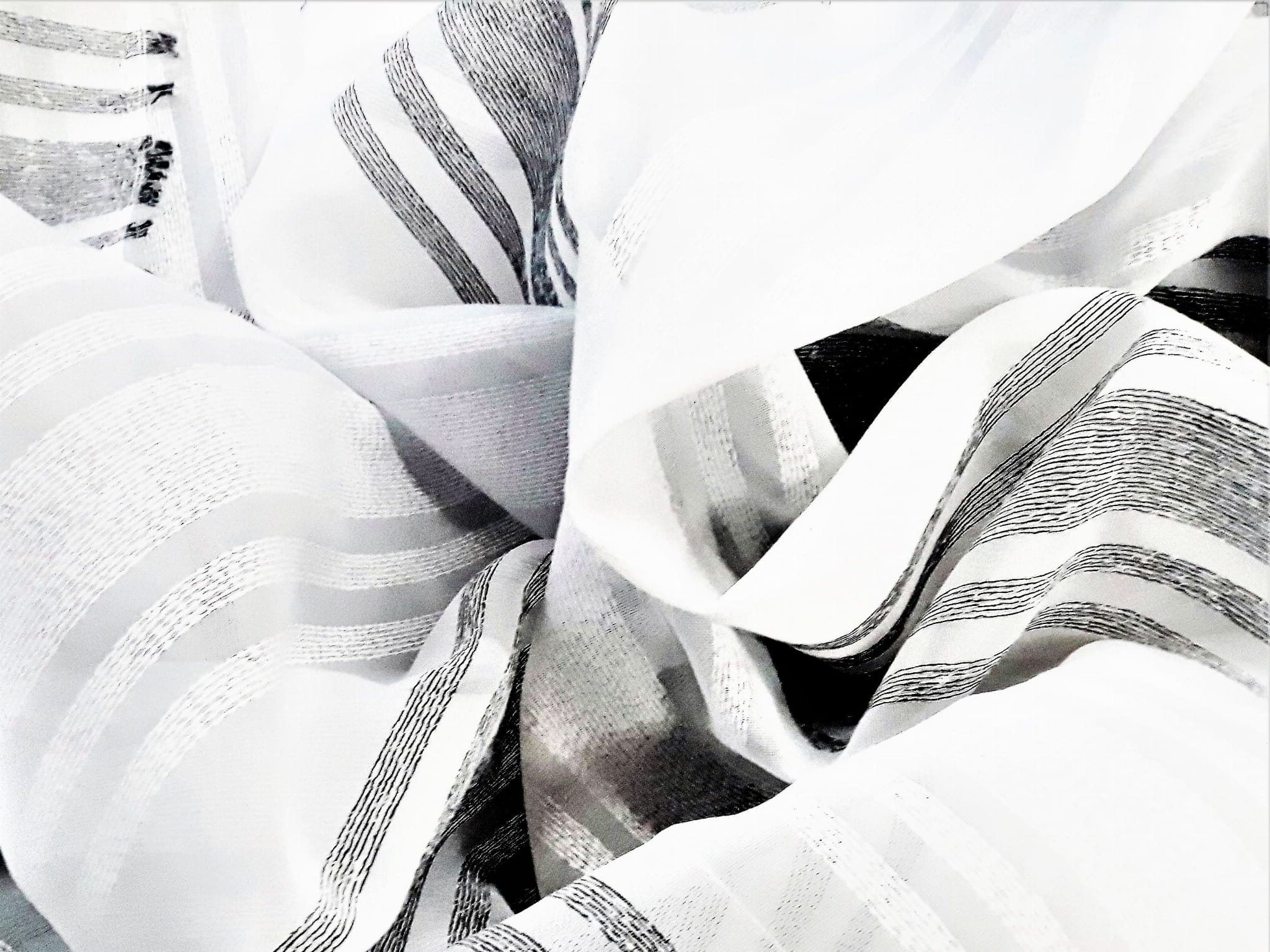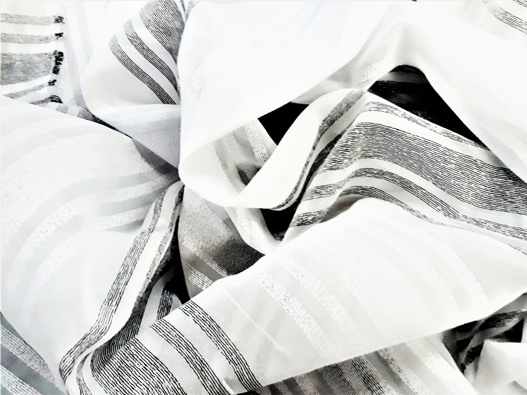 EFEKTOWNA ORGANTYNA NA BAZIE WOALU W STONOWANYCH KOLORACH BIELI ORAZ SREBRZYSTEJ SZAROŚCI TO EKSKLUZYWNA ARANŻACJA OKNA W PEREKCYJNYM WYDANIU. NIEZWYKLE ELEGANCKIE POŁĄCZENIE KOLORYSTYCZNE NADAJE WNĘTRZU LUKSUSOWEGO KLIMATU, A MODNY WZÓR, UKŁADAJĄCY SIĘ W POZIOME PASY O RÓŻNYCH SZEROKOŚCIACH OPTYCZNIE POSZERZA POMIESZCZENIE I ZDECYDOWANIE JE ROZJAŚNIA. ZESTAWIENIE PIĘKNEJ, SREBRZYSTEJ SZAROŚCI Z BIELĄ ORAZ DELIKATNA STRUKTURA POŁĄCZONEJ Z WOALEM ORGANTYNY SPRAWIAJĄ, ŻE OKNO ZYSKA NIEZWYKŁY BLASK, ŚWIEŻOŚĆ I ZUPEŁNIE NOWY WYGLĄD.
