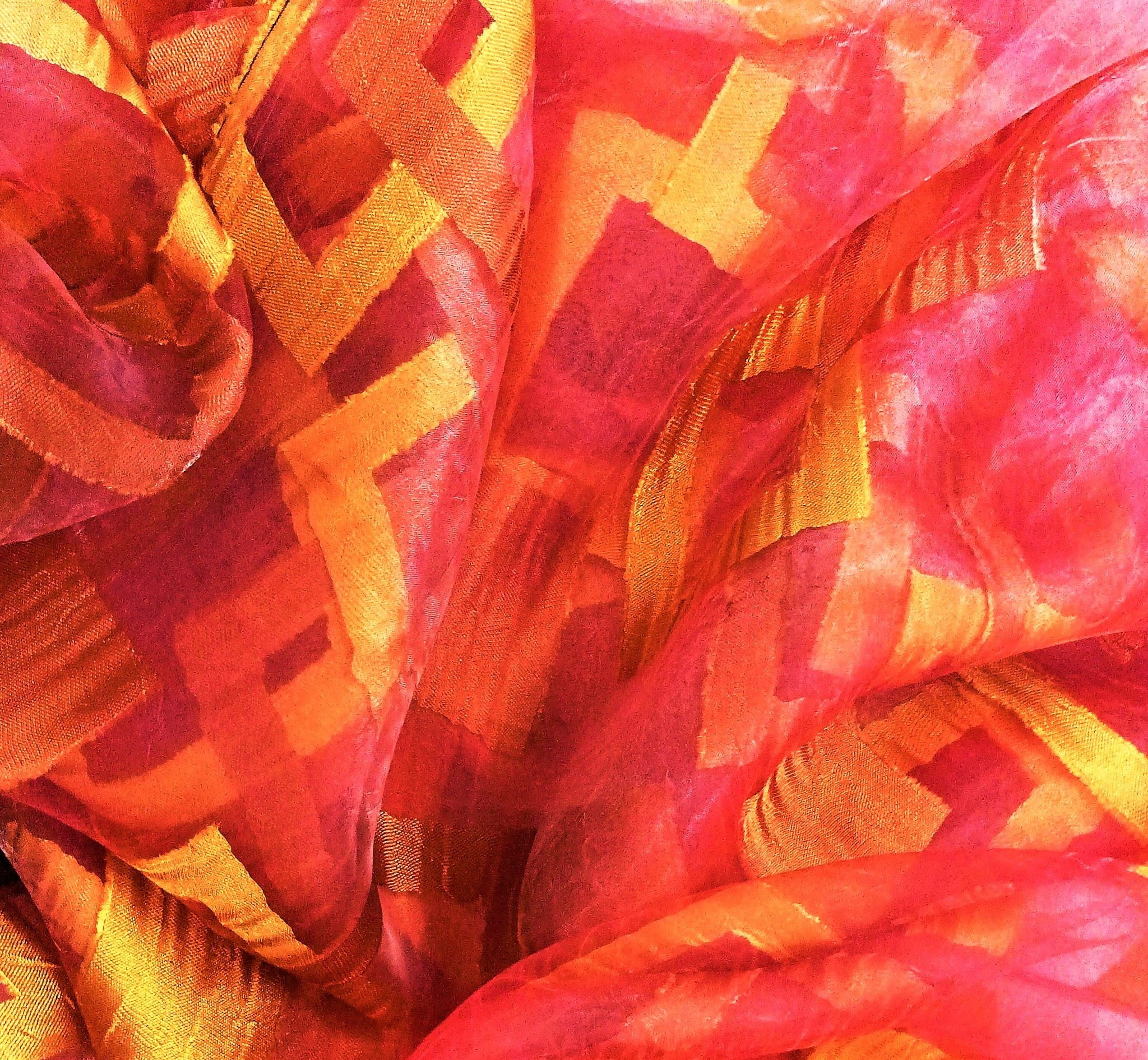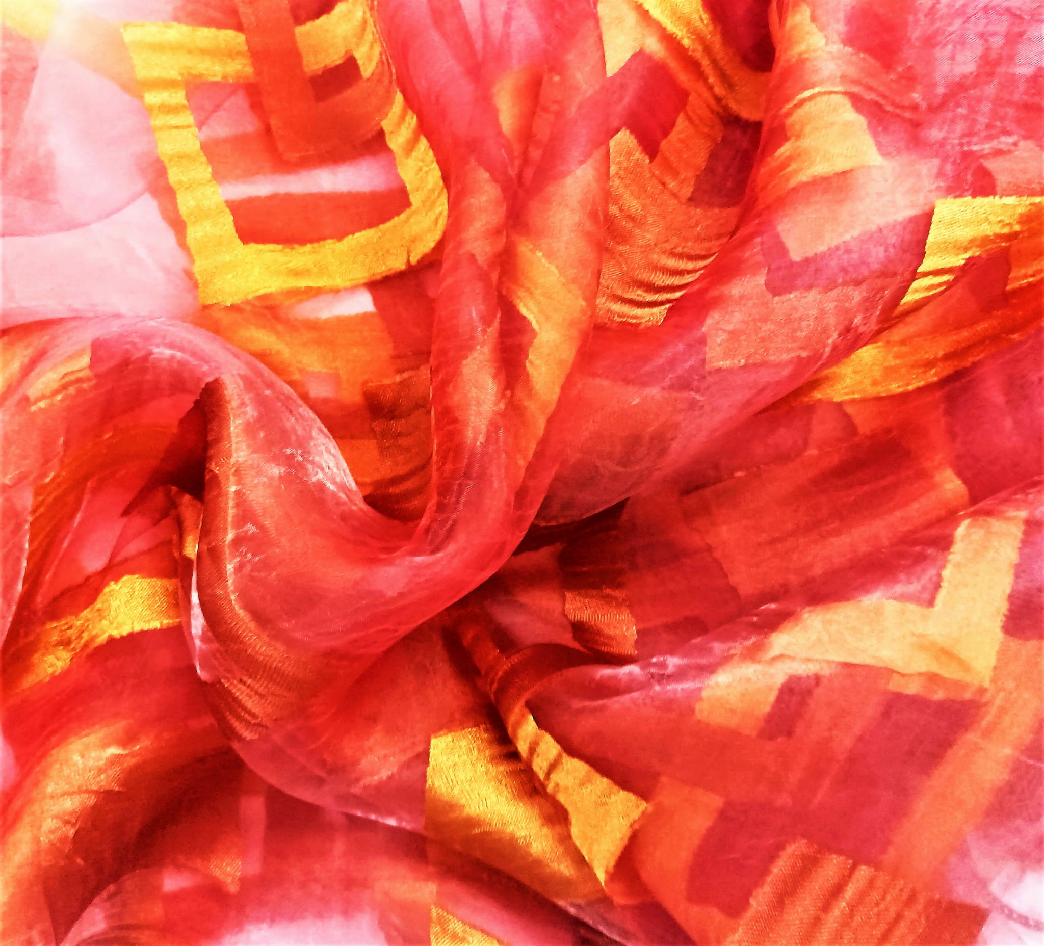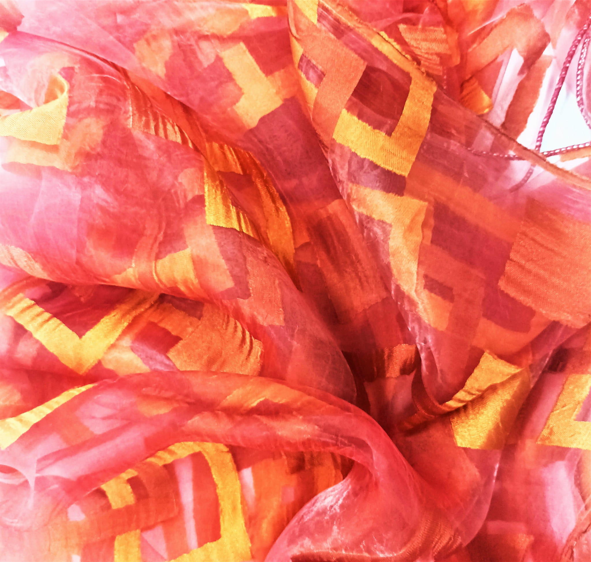 EFEKTOWNA ORGANTYNA PREMIUM W KOLORZE MALINOWEJ FUKSJI Z HAFTOWANYM, GEOMETRYCZNYM WZOREM W BARWIE ZŁOTA ORAZ MIEDZI Z POLYSKIEM GLAMOUR TO NIEZWYKLE ORYGINALNA ARANŻACJA OKNA. PREZENTUJE SIĘ BARDZO STYLOWO, OCIEPLA PRZESTRZEŃ I NADAJE BLASKU. DELIKATNA I ZWIEWNA ORGANTYNA DYSKRETNIE ROZPRASZA PROMIENIE SŁONECZNE I PODKREŚLA WYJĄTKOWY CHARAKTER WNĘTRZA, URZĄDZONEGO W KLIMACIE BOHO, EKLEKTYCZNYM, ART DECO, NOWOCZESNYM I GLAMOUR. DOSKONAŁE POŁĄCZENIE KOLORYSTYCZNE FUKSJOWEGO TŁA Z ODCIENIEM MALINOWYM I PIĘKNEGO, DUŻEGO HAFTU W KOLORZE MIEDZI ORAZ ZŁOTA TWORZY SPEKTAKULARNĄ DEKORACJĘ, NADAJĄCĄ PONADCZASOWEJ KLASY I PEŁNEGO ELEGANCJI, WYRAFINOWANEGO SZYKU.