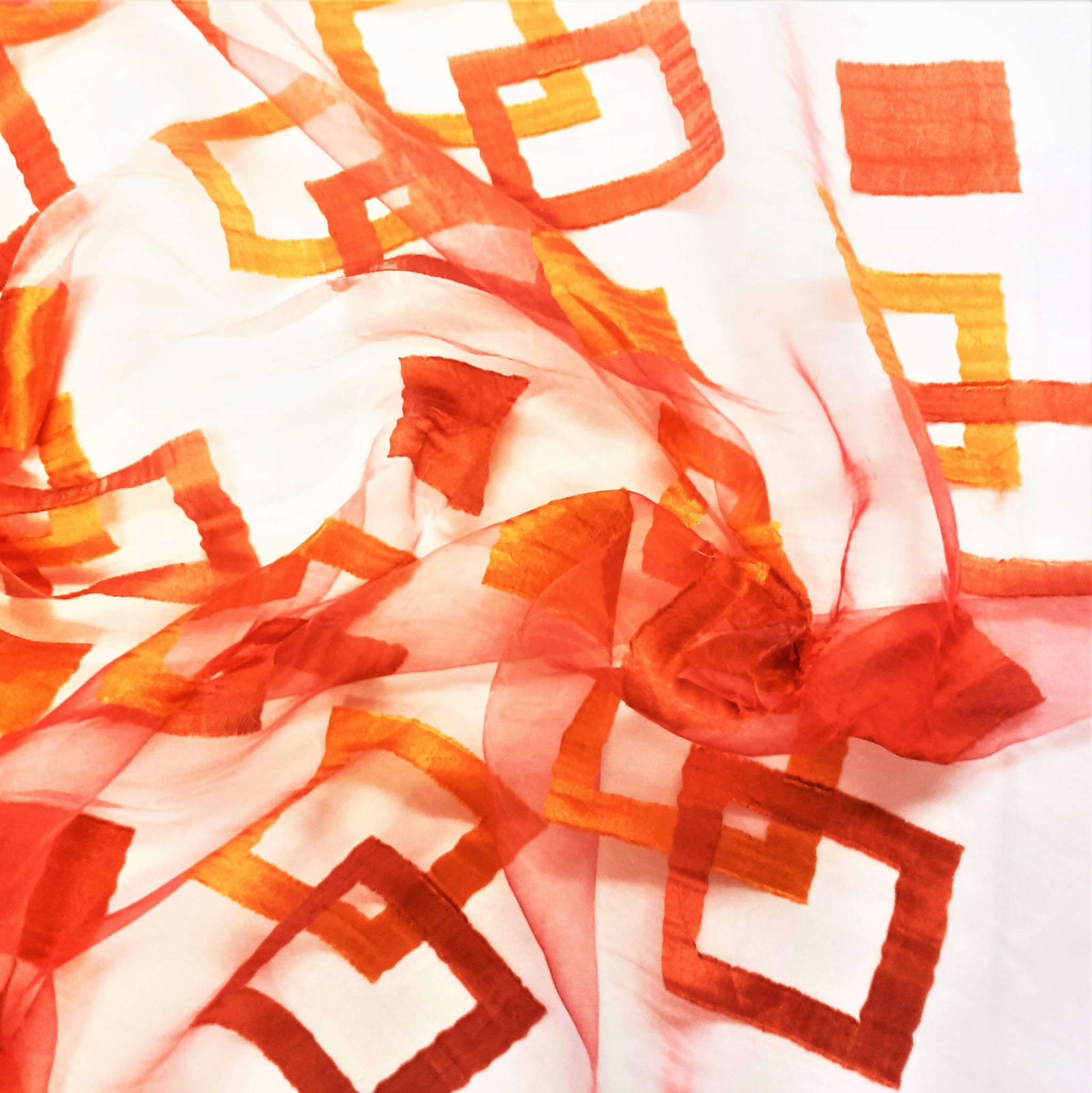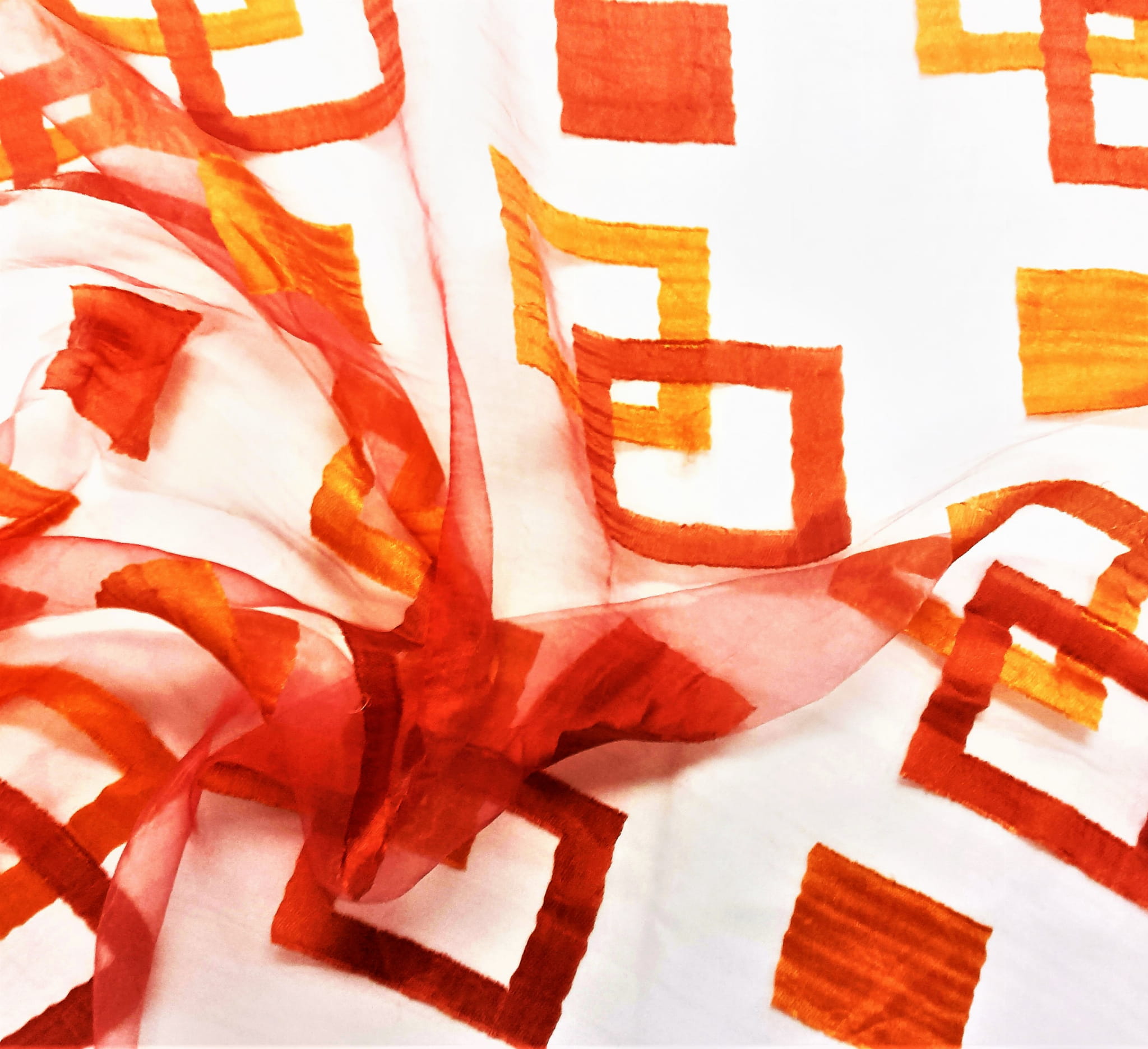 HAFTOWANY WZÓR ROZMIESZCZONY JEST NA CAŁEJ POWIERZCHNI ORGANTYNY.