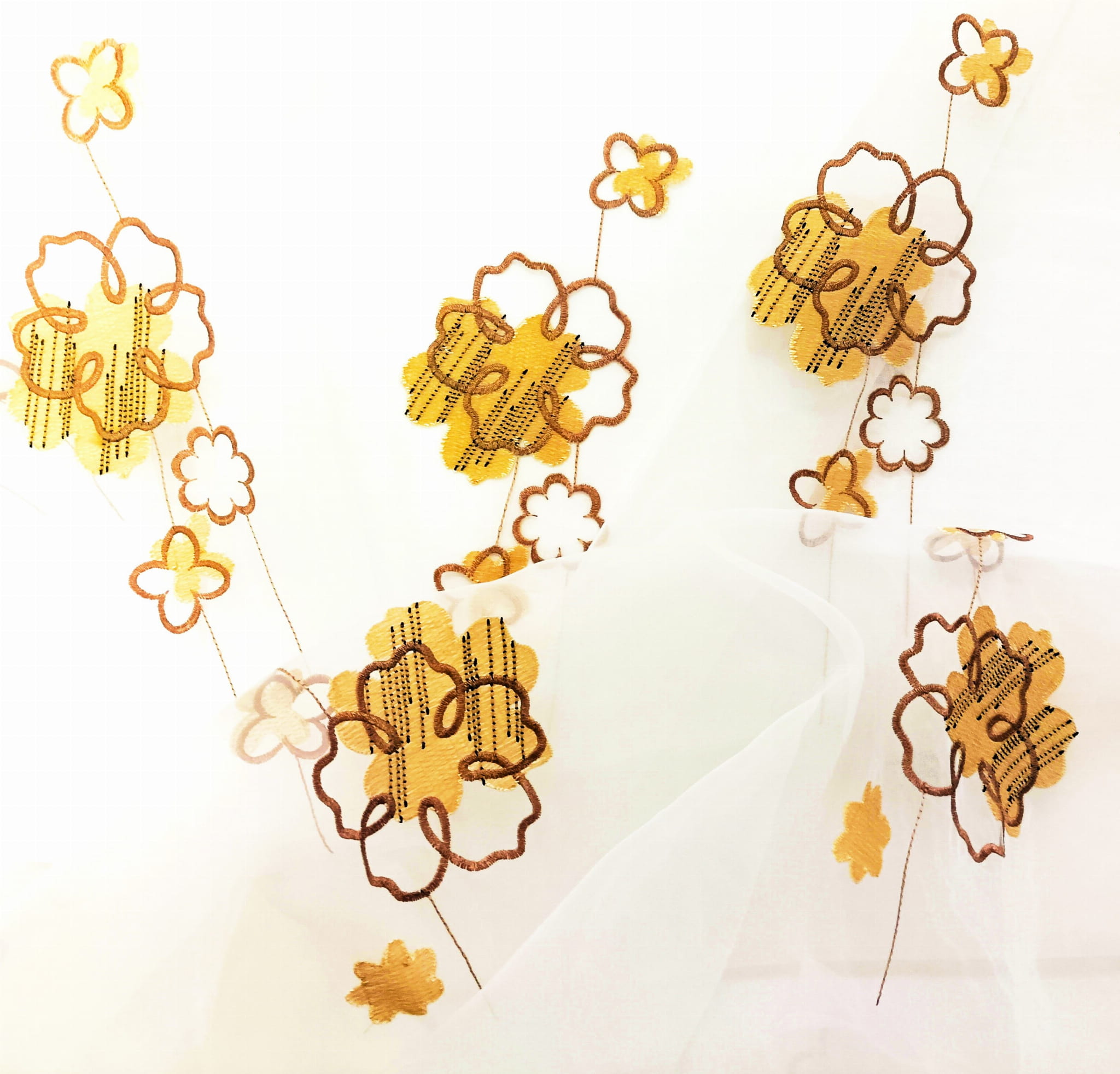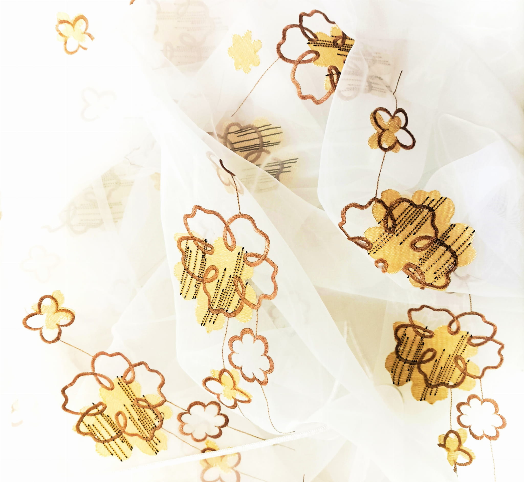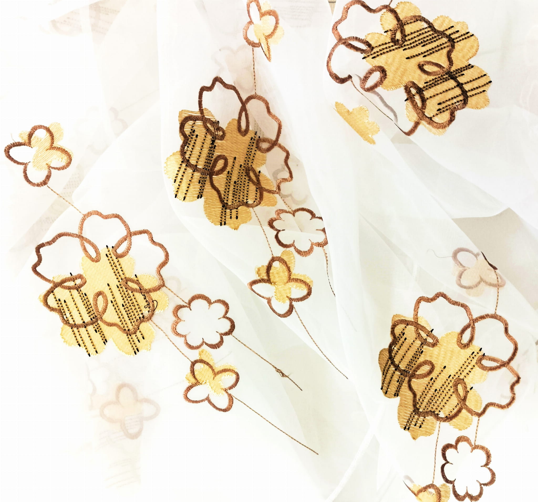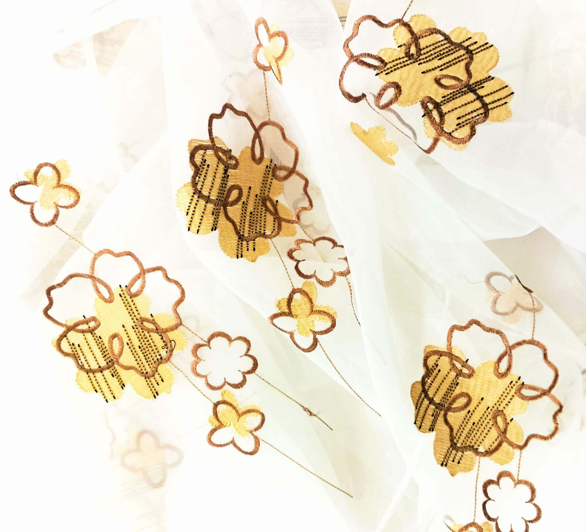 EFEKTOWNA ORGANTYNA PREMIUM ZE STYLOWYM HAFTOWANYM WZOREM FLORYSTYCZNYM W POSTACI PIĘKNYCH DUŻYCH KWIATÓW W CIEPŁYCH BARWACH BEŻU I BRĄZU NA BIAŁYM TLE Z DELIKATNYM POŁYSKIEM GLAMOUR WYSOKOŚĆ 280 CM PRODUCENT CHEMEKS PORAJ