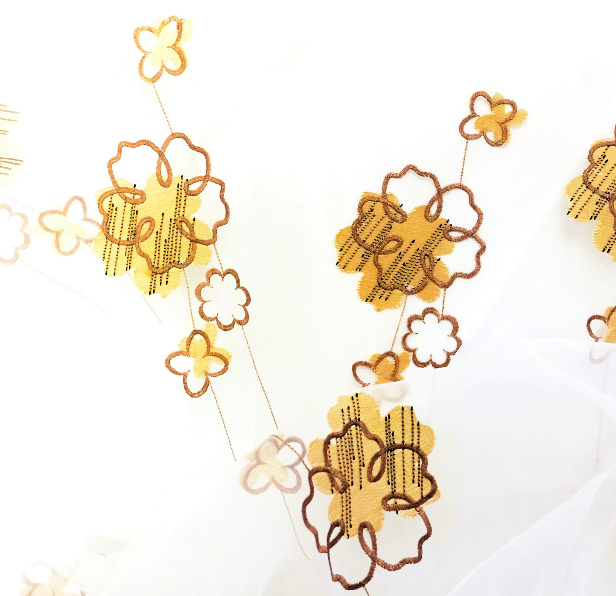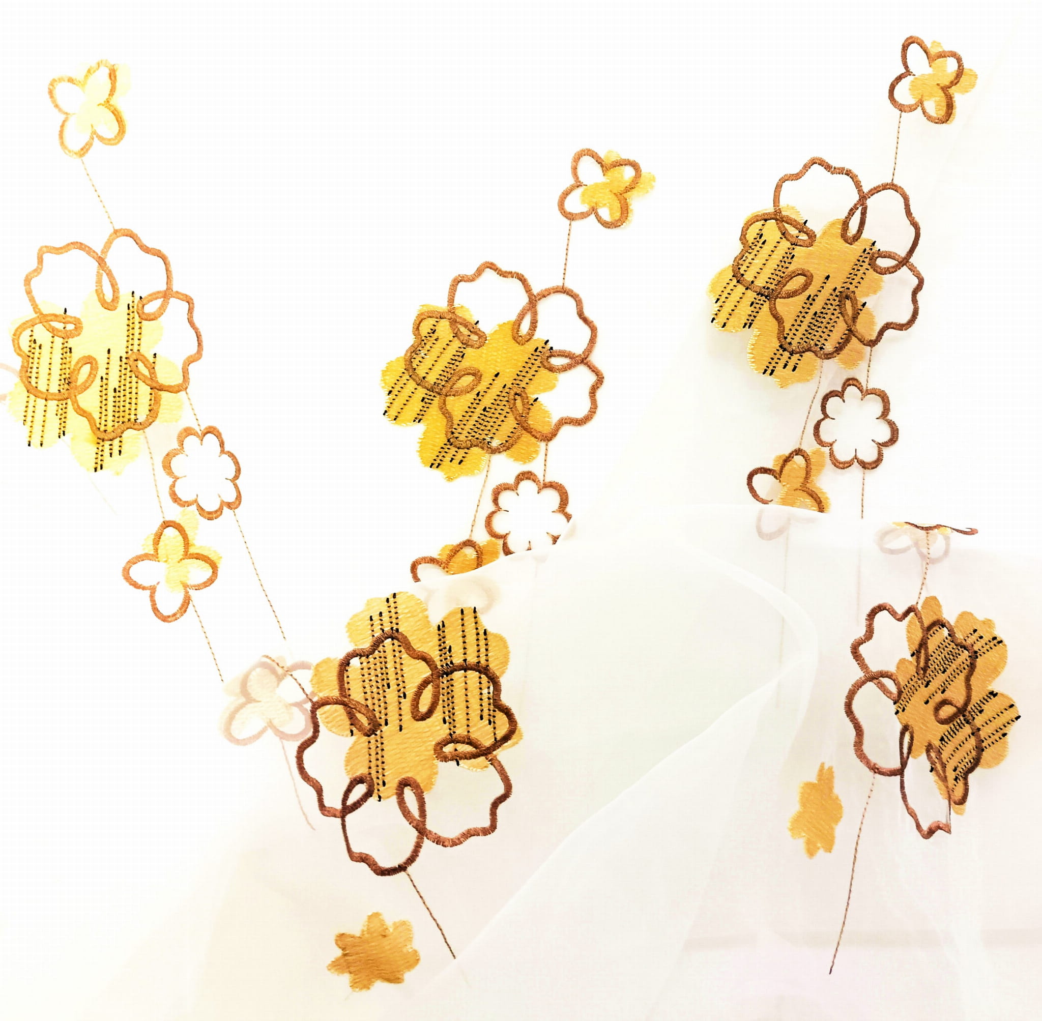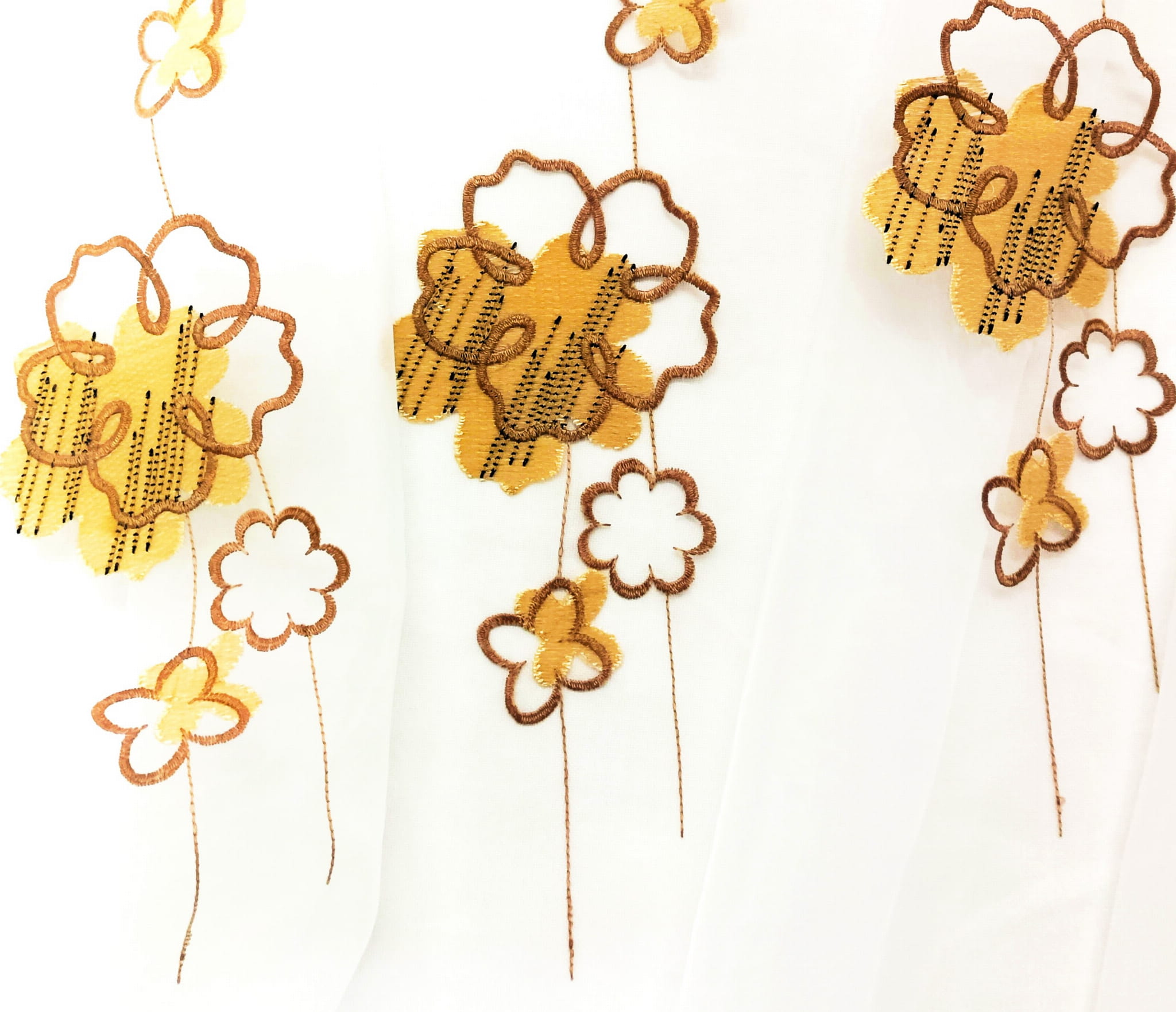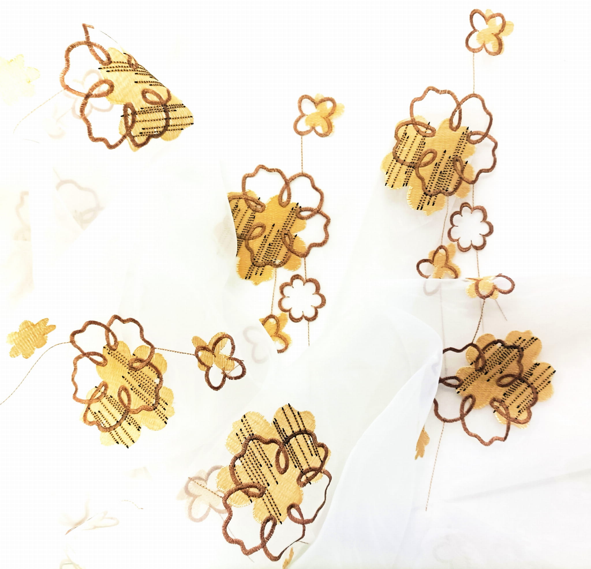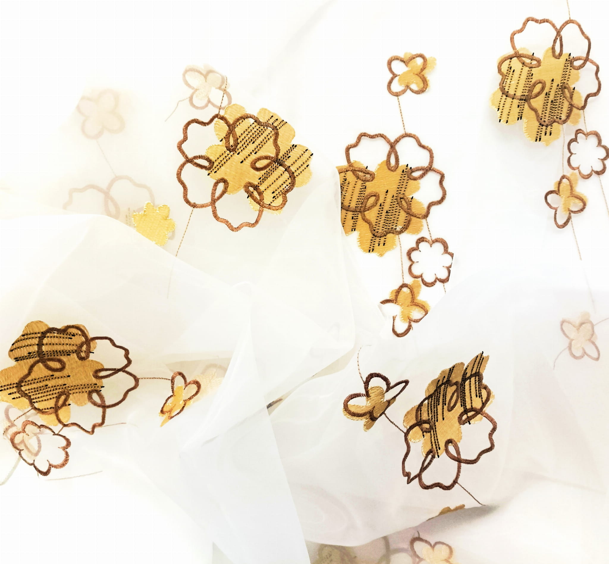 EFEKTOWNA ORGANTYNA PREMIUM ZE STYLOWYM HAFTOWANYM WZOREM FLORYSTYCZNYM W POSTACI PIĘKNYCH DUŻYCH KWIATÓW W CIEPŁYCH BARWACH BEŻU I BRĄZU NA BIAŁYM TLE Z DELIKATNYM POŁYSKIEM GLAMOUR WYSOKOŚĆ 280 CM PRODUCENT CHEMEKS PORAJ