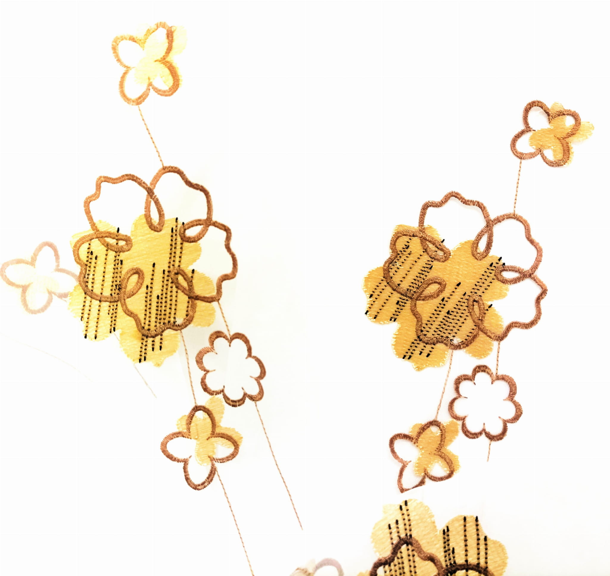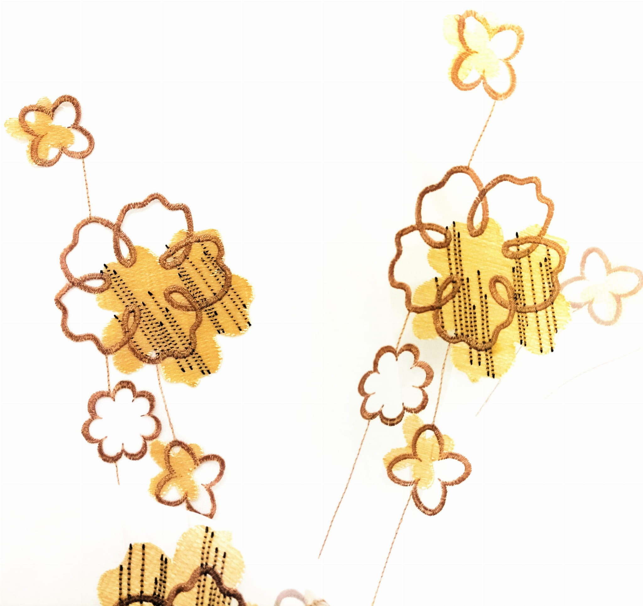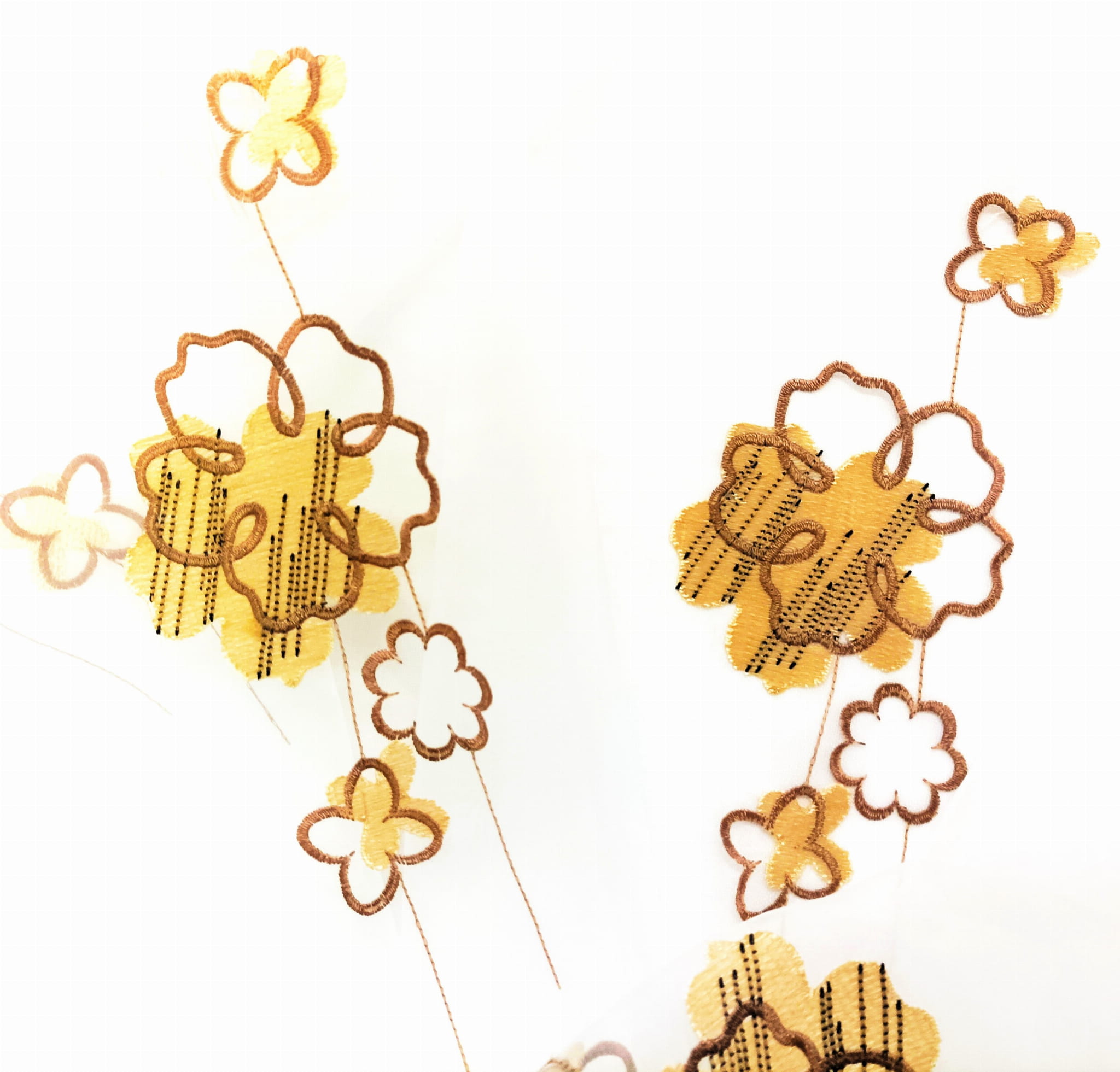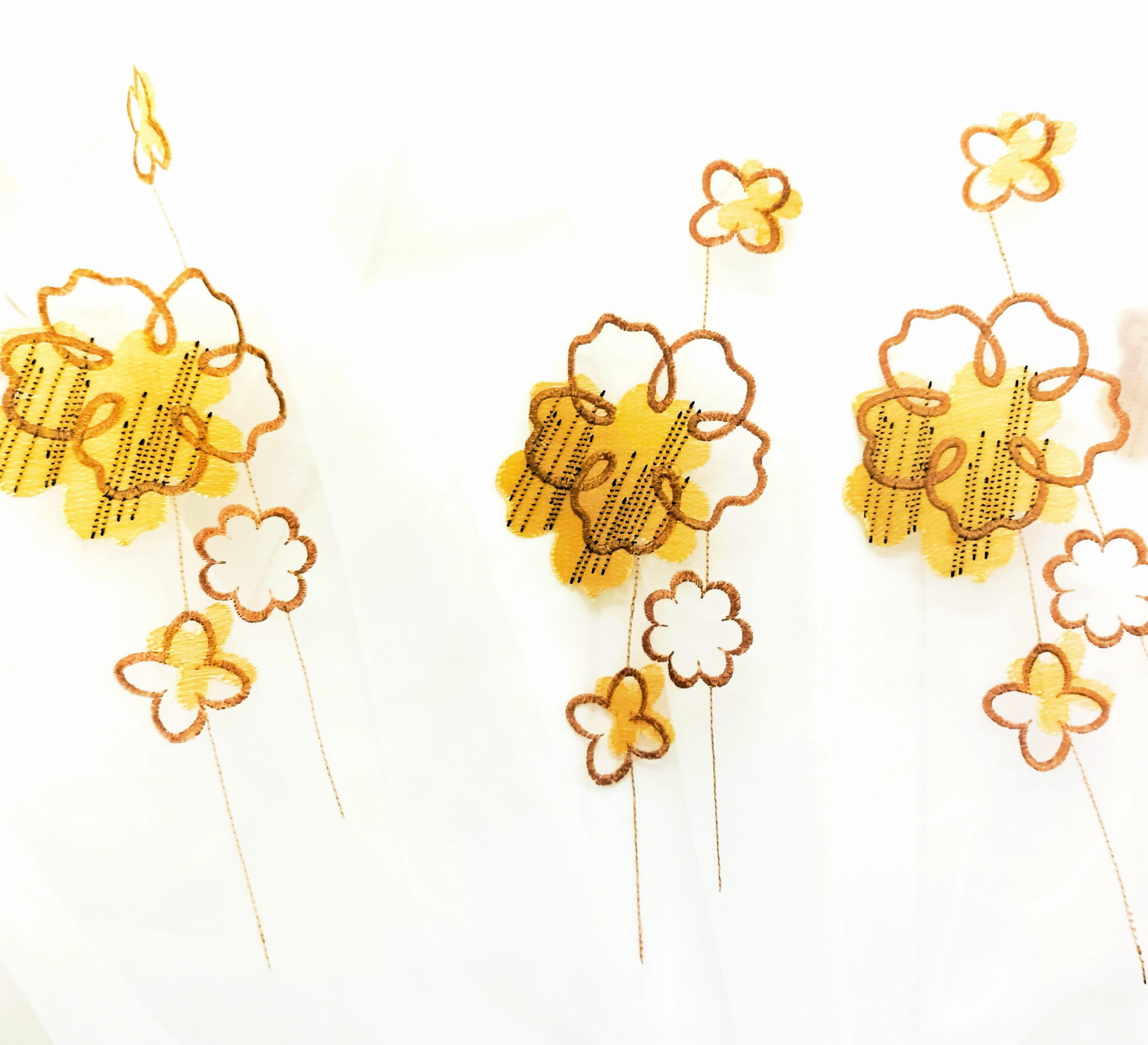 EFEKTOWNA ORGANTYNA PREMIUM ZE STYLOWYM HAFTOWANYM WZOREM FLORYSTYCZNYM W POSTACI PIĘKNYCH DUŻYCH KWIATÓW W CIEPŁYCH BARWACH BEŻU I BRĄZU NA BIAŁYM TLE Z DELIKATNYM POŁYSKIEM GLAMOUR WYSOKOŚĆ 280 CM PRODUCENT CHEMEKS PORAJ
