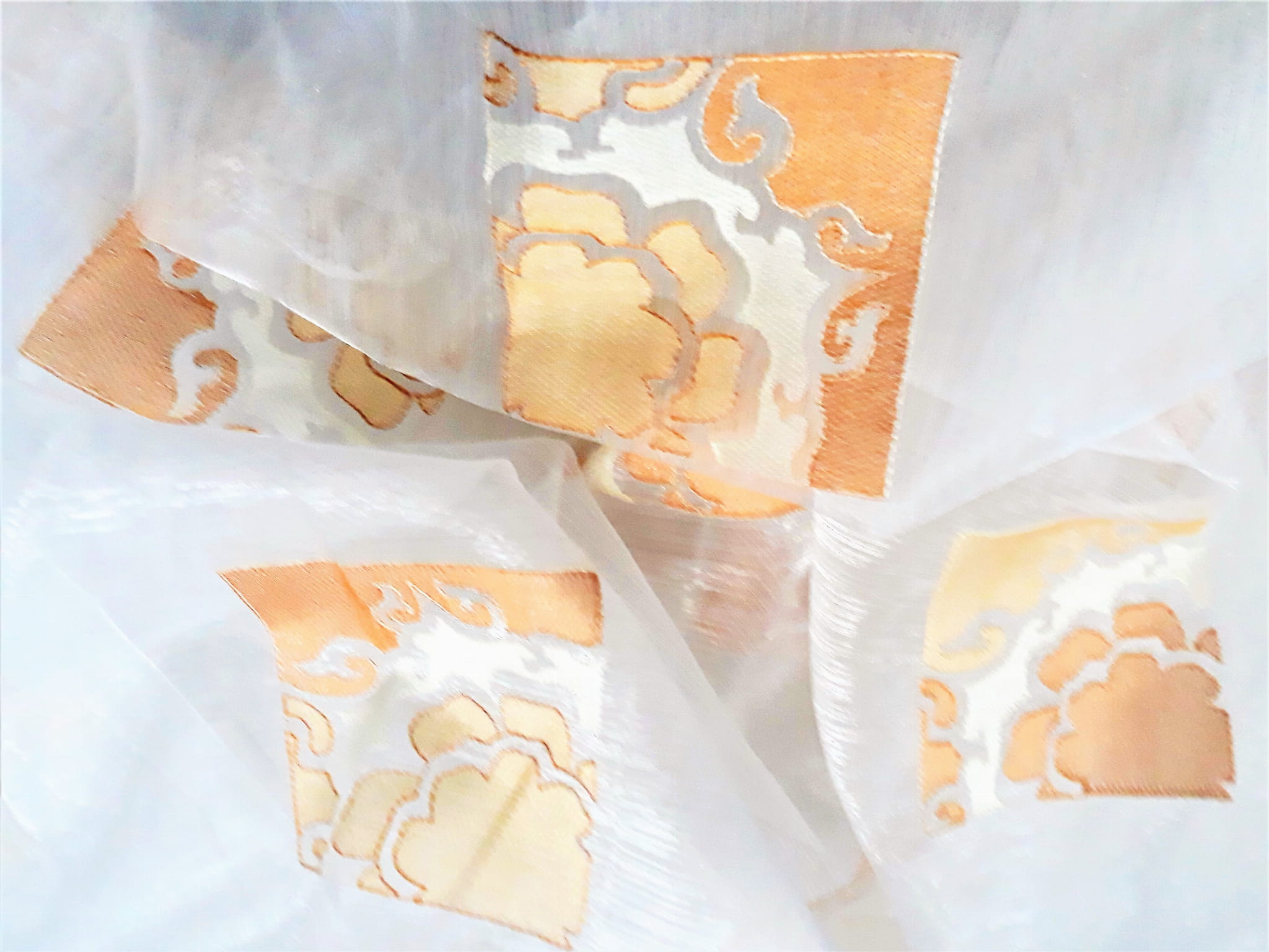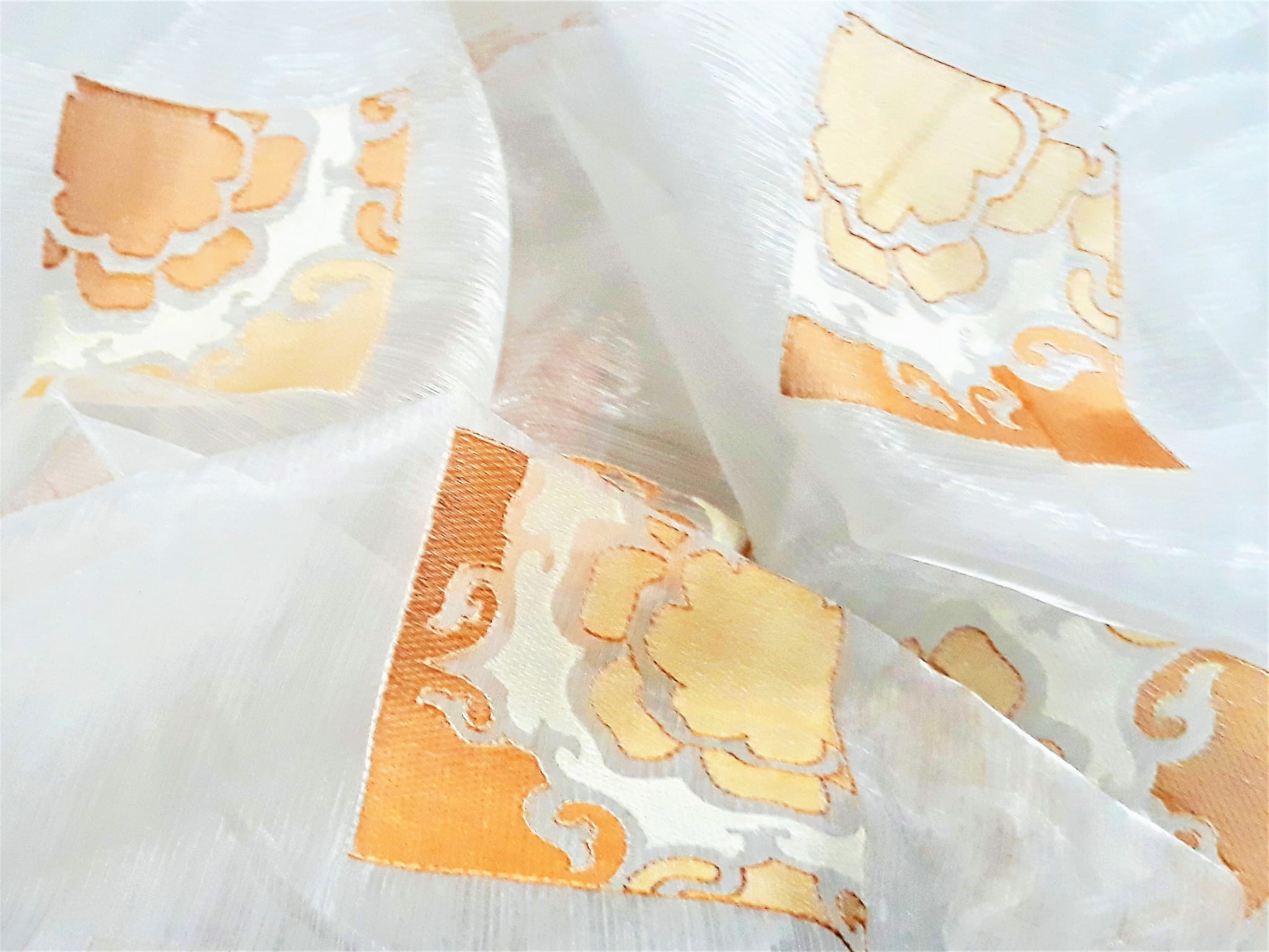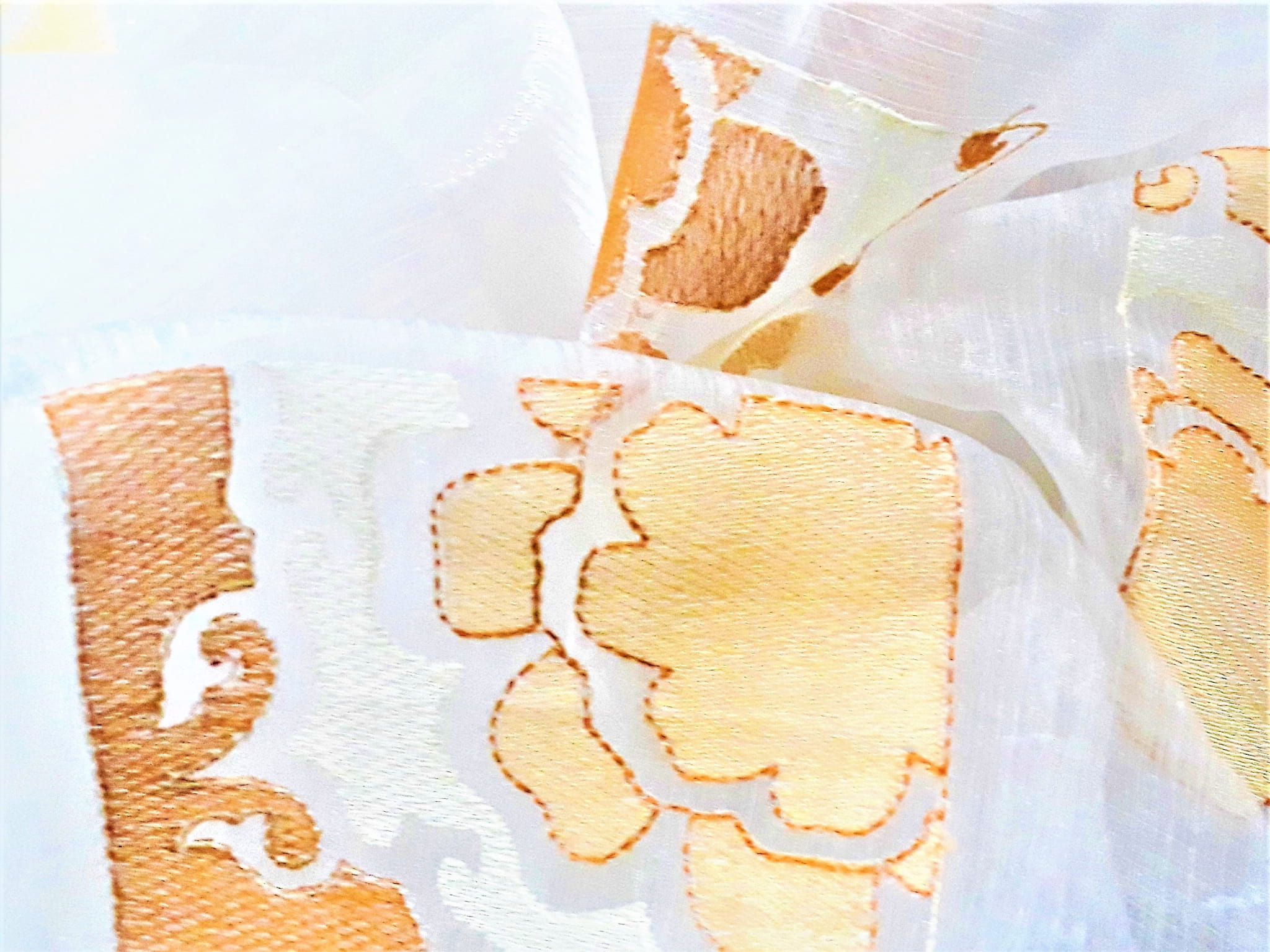 EFEKTOWNA ORGANTYNA Z ORYGINALNYM HAFTEM W KOLORZE POMARAŃCZOWYM NA BIAŁYM TLE WYSOKOŚĆ 280 CM PRODUCENT POLONTEX CZĘSTOCHOWA
