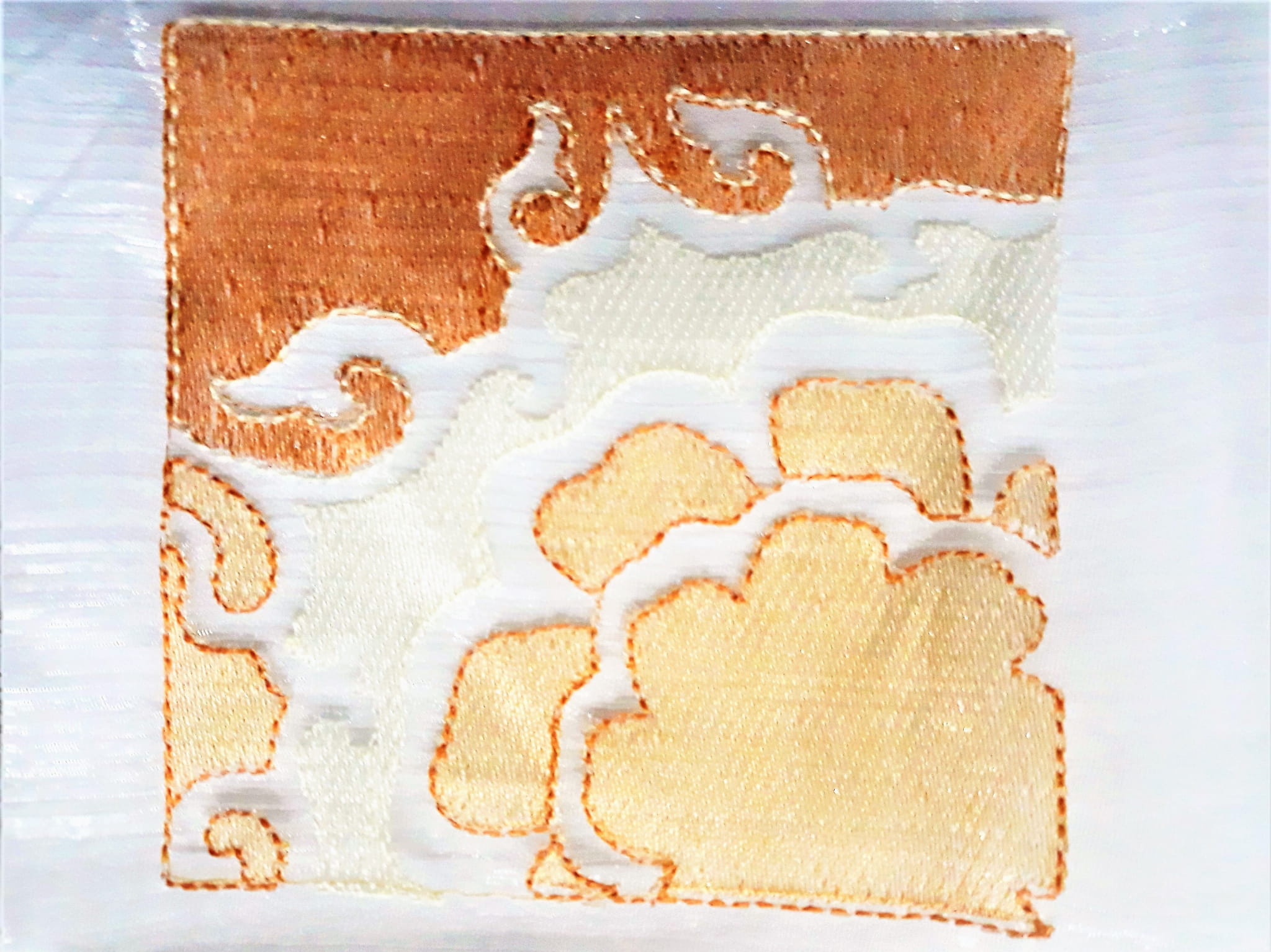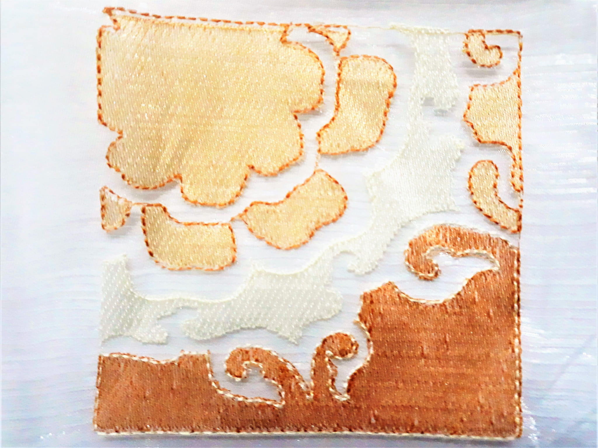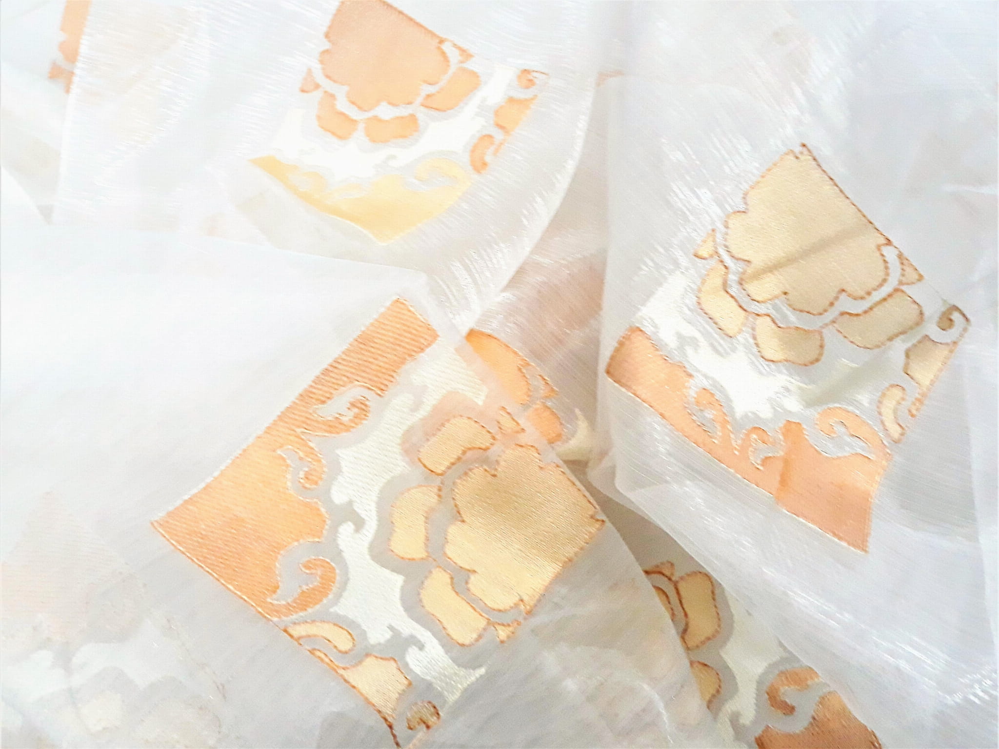 EFEKTOWNA ORGANTYNA Z ORYGINALNYM HAFTEM W KOLORZE POMARAŃCZOWYM NA BIAŁYM TLE WYSOKOŚĆ 280 CM PRODUCENT POLONTEX CZĘSTOCHOWA