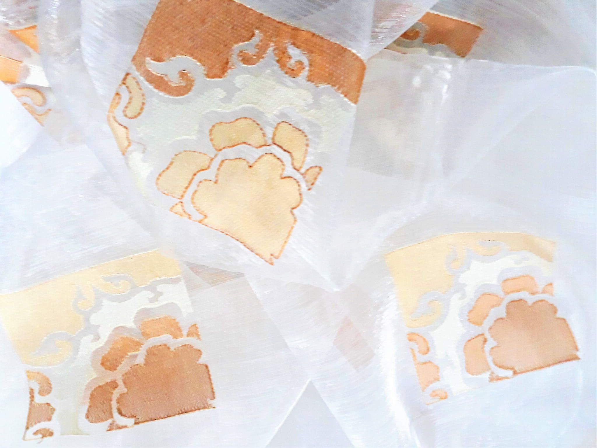 EFEKTOWNA ORGANTYNA Z ORYGINALNYM HAFTEM W KOLORZE POMARAŃCZOWYM NA BIAŁYM TLE TO PRZEPIĘKNA DEKORACJA OKNA. IDEALNIE SPRAWDZI SIĘ JAKO ORYGINALNA FIRANKA LUB OZDOBNA ZASŁONA. DOSKONALE ROZŚWIETLA I OCIEPLA WNĘTRZE. KUNSZTOWNY, PERFEKCYJNIE WYKONANY ORNAMENT W MODNEJ BARWIE SOCZYSTEJ POMARAŃCZY ZACHWYCA PEŁNYM UROKU, FINEZYJNYM DESIGNEM. ORGANTYNA PREZENTUJE SIĘ NIEZWYKLE ELEGANCKO I STANOWI BARDO REPREZENTACYJNĄ OZDOBĘ W STYLU BOHO, VINTAGE LUB GLAMOUR.