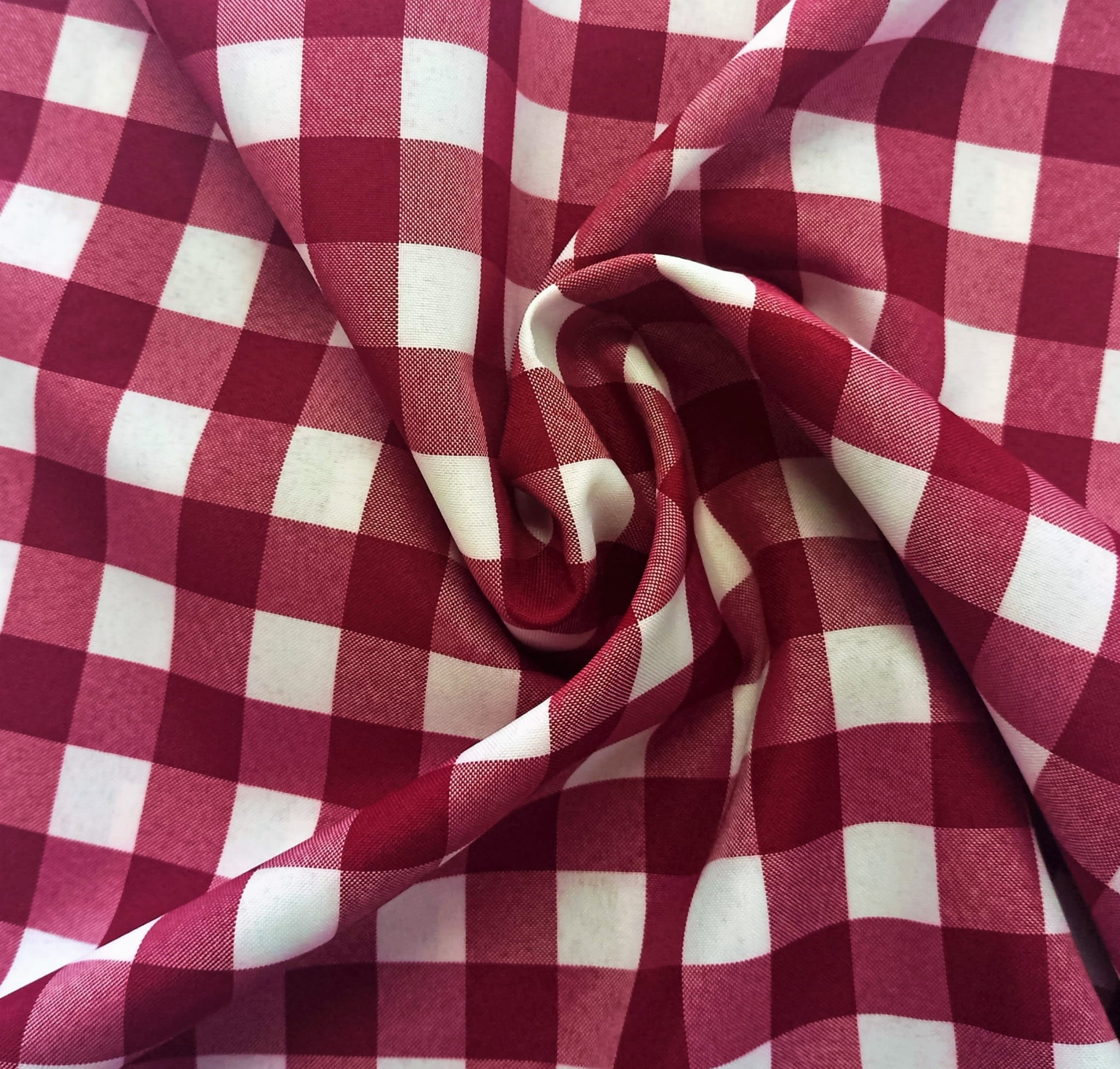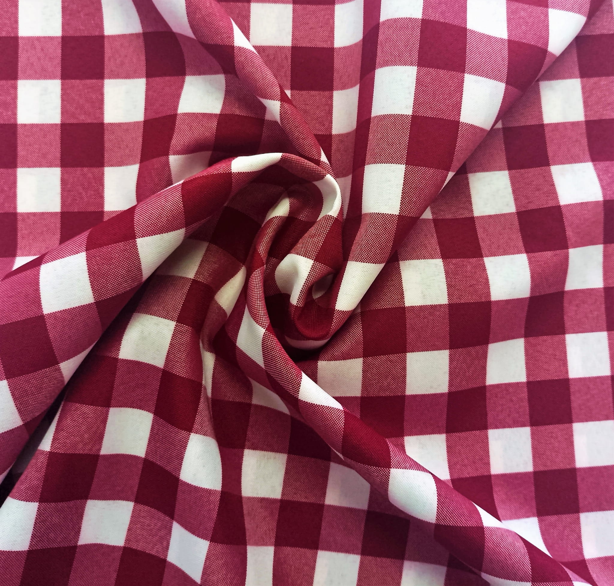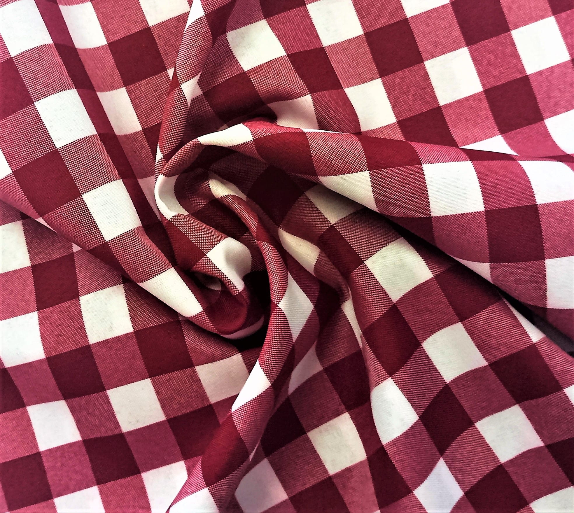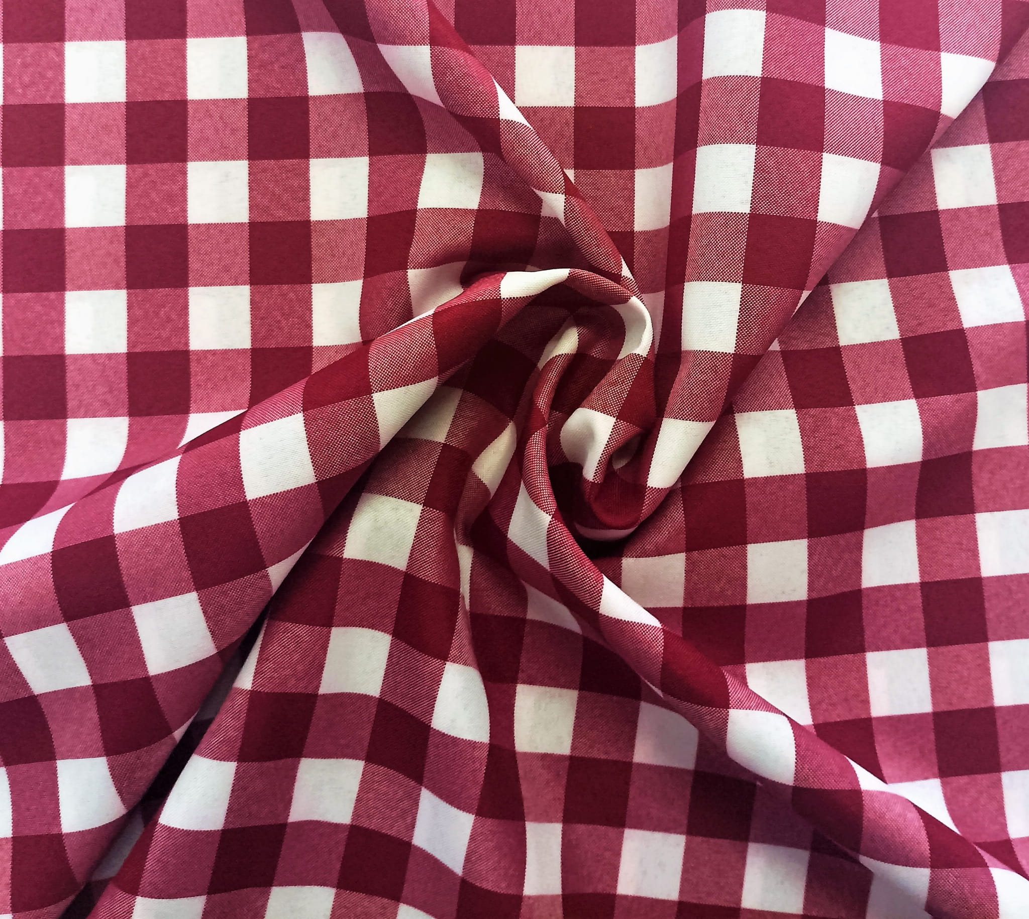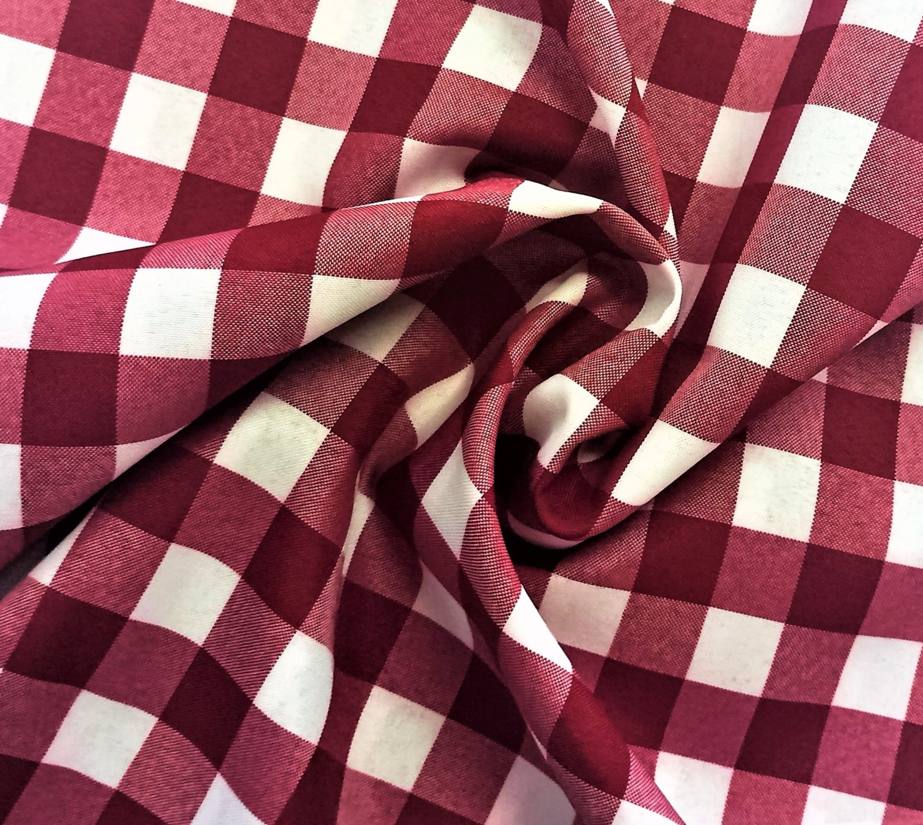 EFEKTOWNA PLAMOODPORNA TKANINA KONFEKCYJNO ZASŁONOWA WZÓR KRATKA W KOLORACH WIŚNI ORAZ BIELI DZIĘKI SWOJEJ UNIWERSALNEJ STRUKTURZE NADAJE SIĘ ZARÓWNO NA WYROBY KONFEKCYJNE LUB ARTYKUŁY DEKORACJI WNĘTRZ. PONADCZASOWY DESIGN W POŁĄCZENIU Z ORYGINALNĄ BARWĄ WIŚNIOWĄ ORAZ KLASYCZNĄ BIELĄ JEST NIEUSTANNIE MODNY W STYLIZACJACH, JAK I W ARANŻACJACH PRZESTRZENI, URZĄDZONYCH W STYLU KLASYCZNYM, RUSTYKALNYM, EKLEKTYCZNYM, RETRO ORAZ VINTAGE.