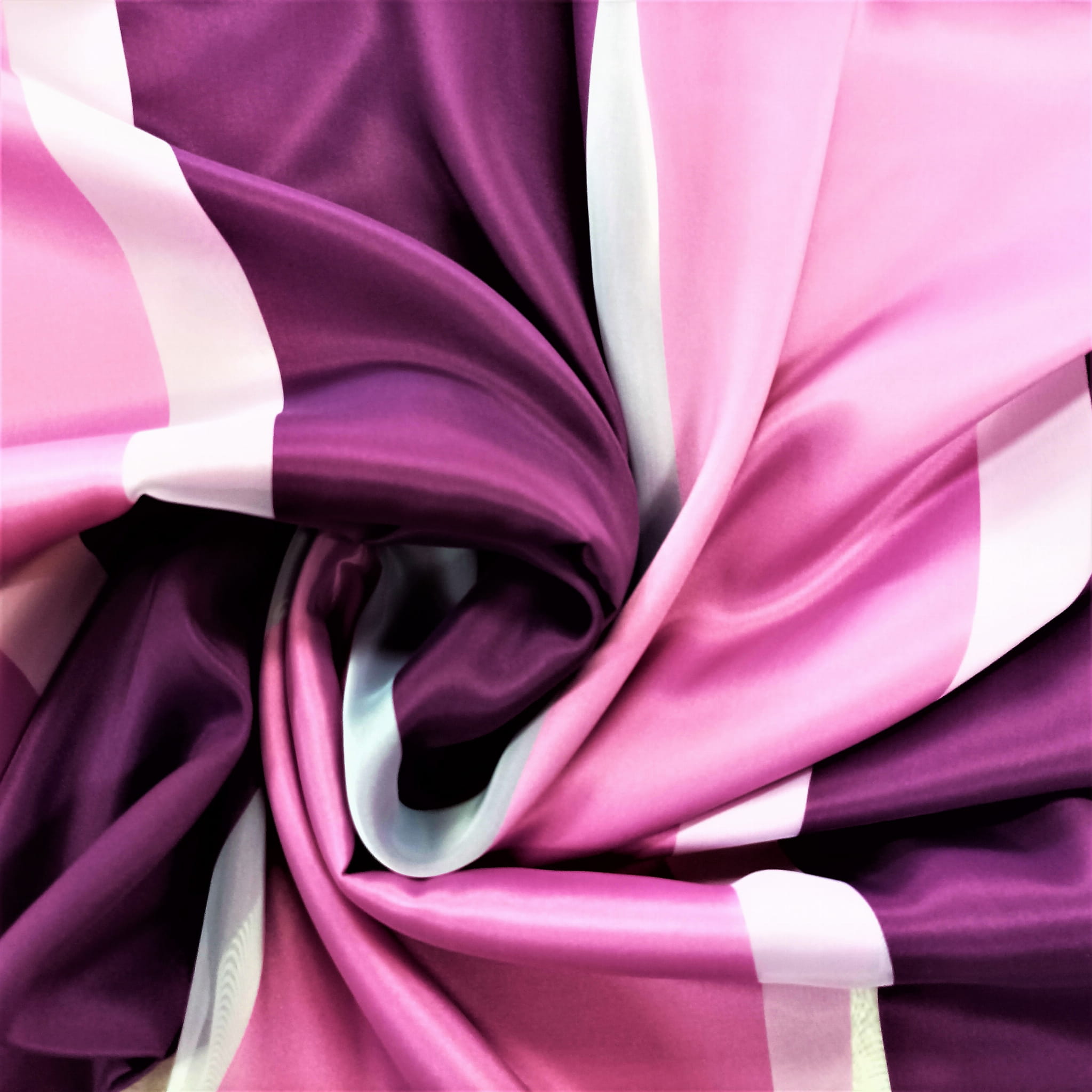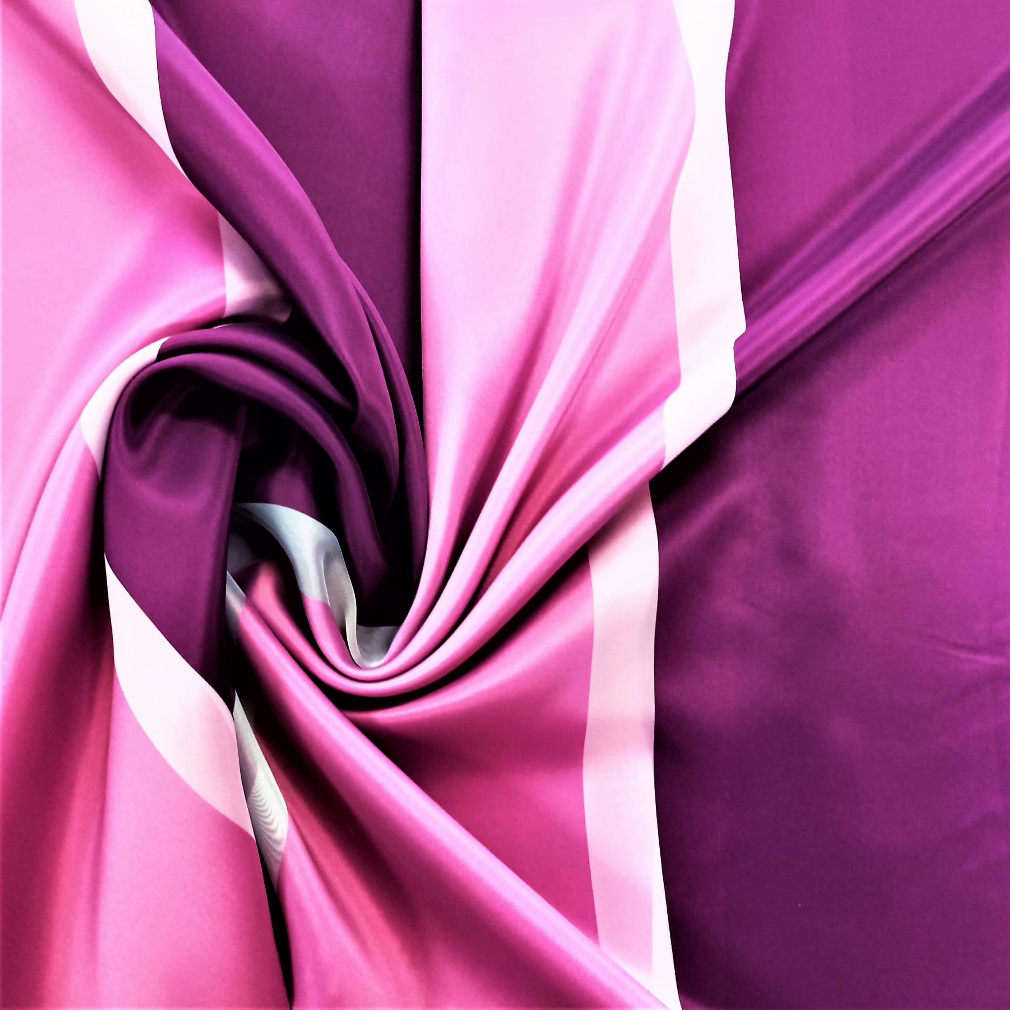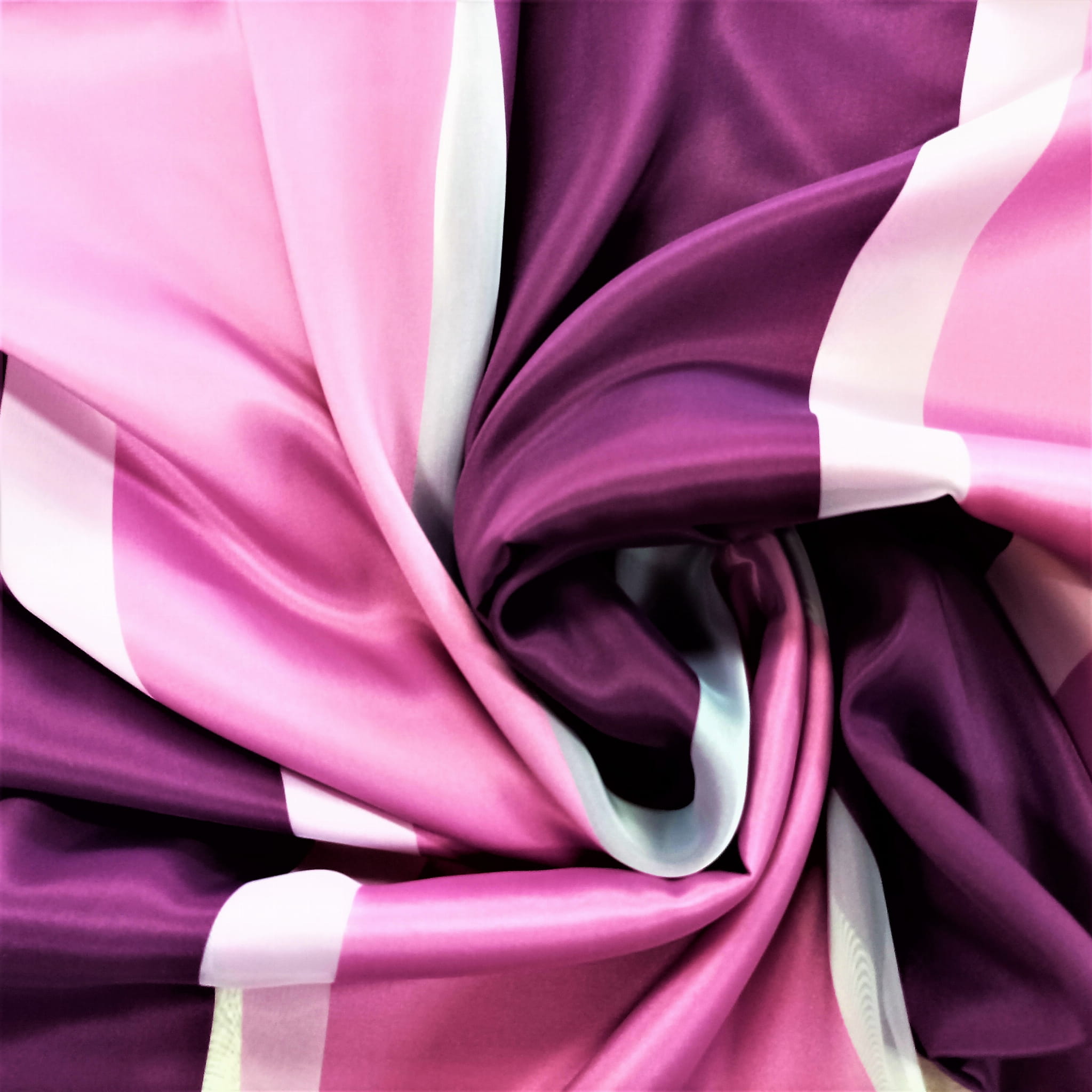 SZEROKOŚĆ PIONOWO UKŁADAJĄCYCH SIĘ PASÓW KOLOR FIOLETOWY I RÓŻOWY - 20 CM, PAS BIAŁY- 5 CM. WZÓR ROZMIESZCZONY JEST NA CAŁEJ POWIERZCHNI TKANINY.