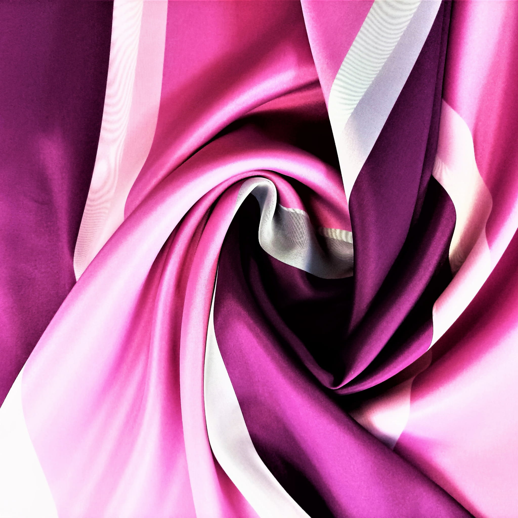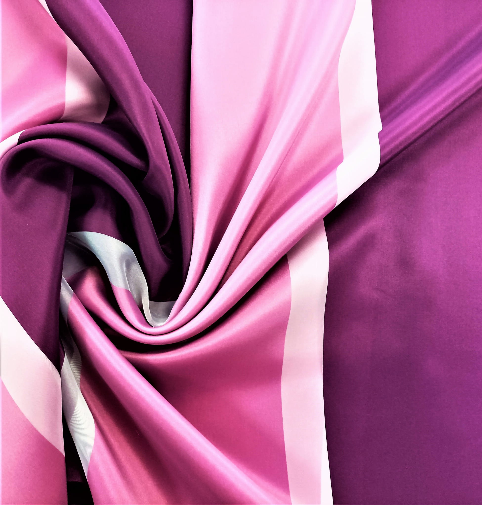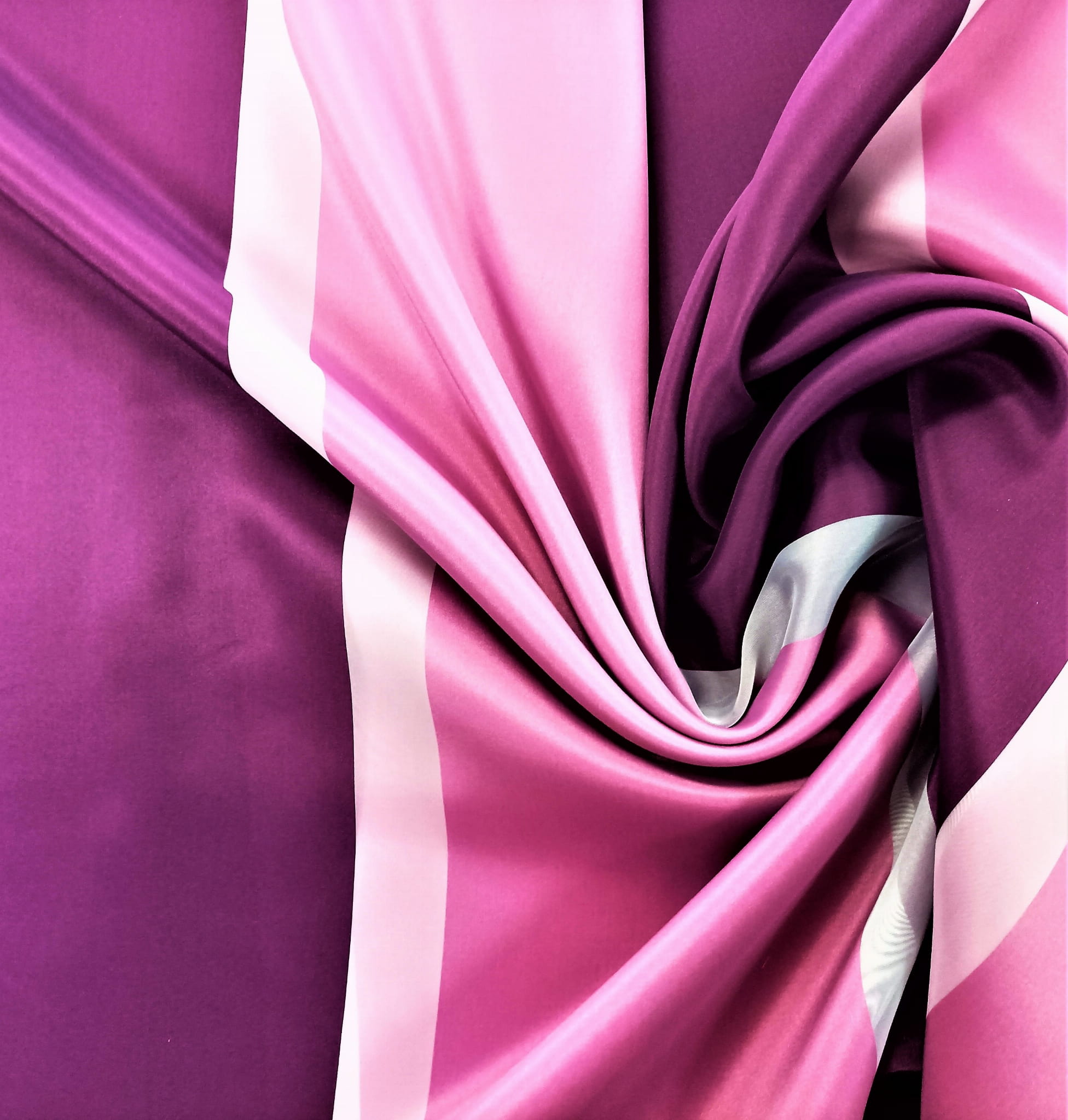 SZEROKOŚĆ PIONOWO UKŁADAJĄCYCH SIĘ PASÓW KOLOR FIOLETOWY I RÓŻOWY - 20 CM, PAS BIAŁY- 5 CM. WZÓR ROZMIESZCZONY JEST NA CAŁEJ POWIERZCHNI TKANINY.