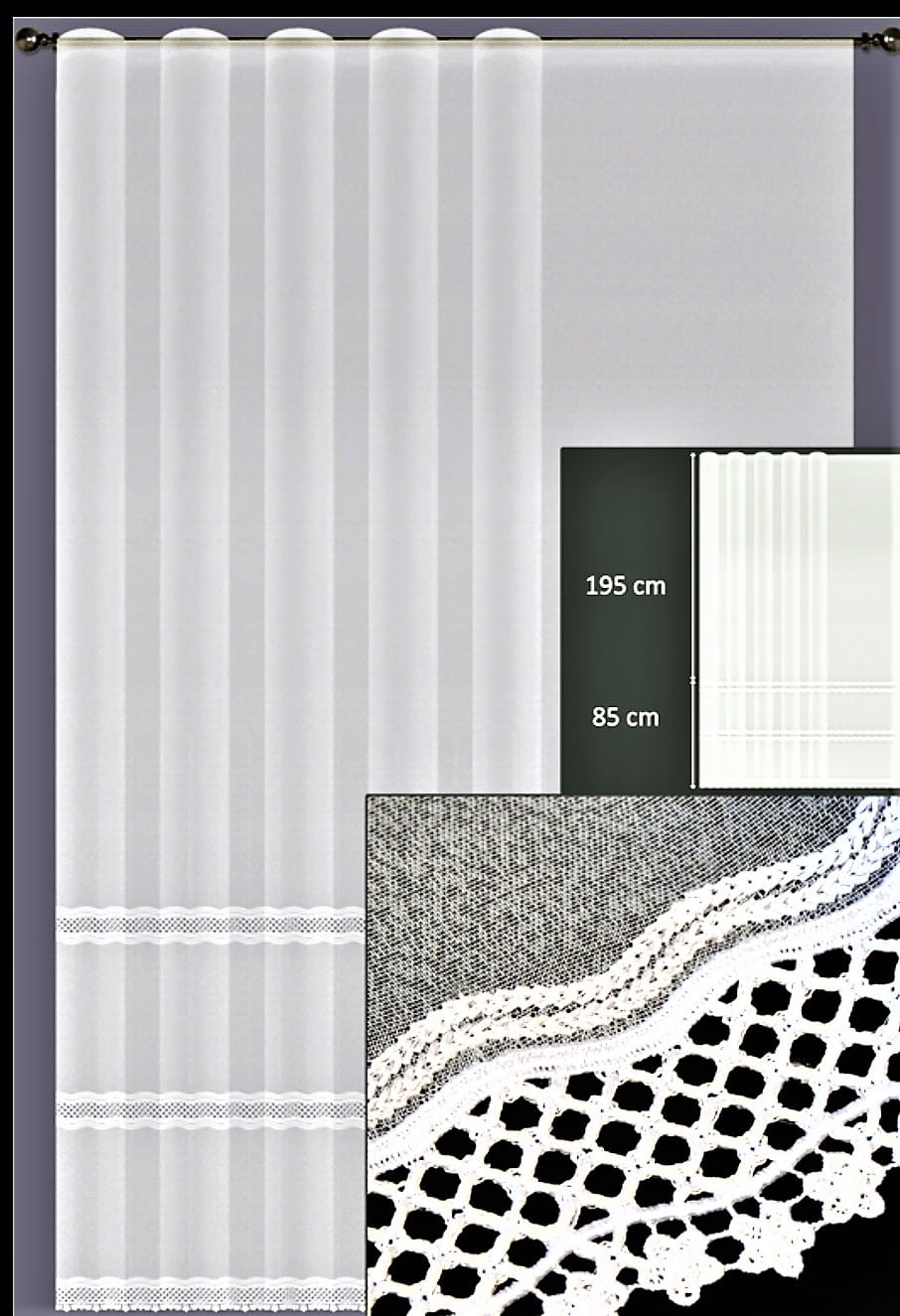 EKSKLUZYWNA FIRANKA MARKIZETA W KOLORZE BIAŁYM Z PRZEPIĘKNYMI APLIKACJAMI Z GIPIURY TO DEKORACJA OKNA NAJWYŻSZEJ KLASY. FIRANKA SPEŁNI OCZEKIWANIA NAWET NAJBARDZIEJ WYMAGAJĄCYCH KLIENTÓW, IDEALNIE SIĘ UKŁADA, JEST PEŁNA SZYKU I WYTWORNEJ, PONADCZASOWEJ ELEGANCJI. MINIMALIZM W NIEZWYKLE WYRAFINOWANYM DESIGNIE CZYNI JĄ WYSOCE EFEKTOWNĄ I PASUJĄCĄ DO KAŻDEGO WNĘTRZA. PERFEKCYJNA STRUKTURA MARKIZETY W POŁĄCZENIU Z OZDOBNYMI, GIPIUROWYMI APLIKACJAMI WPROWADZA ŚWIETLISTY BLASK I DECYDUJE O NIEZWYKLE ORYGINALNYM KLIMACIE ARANŻACJI. FIRANKA DOSKONALE PREZENTUJE SIĘ ZARÓWNO SAMA, JAK I W TOWARZYSTWIE OZDOBNYCH ZASŁON.