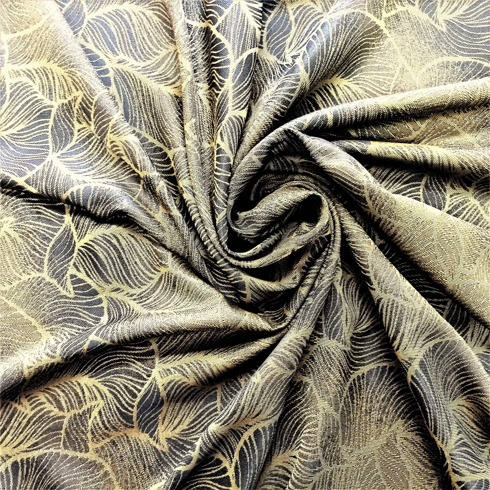 ELEGANCKA CIENIOWANA DWUSTRONNA TKANINA ZASŁONOWA W KOLORZE OLIWKOWYM WZÓR FLORYSTYCZNY LIŚCIE SZEROKOŚĆ 170 CM PRODUCENT HAFT KALISZ