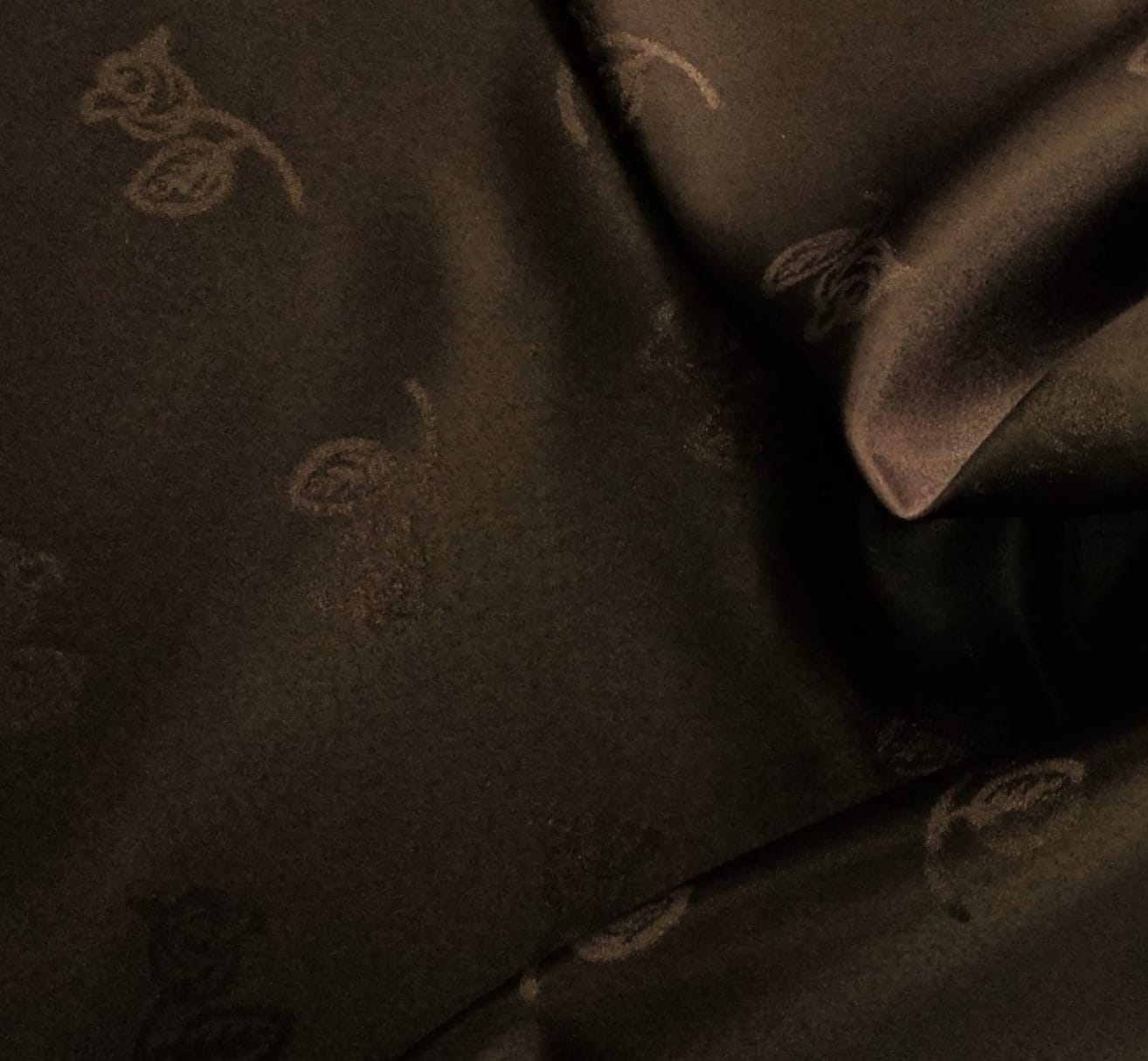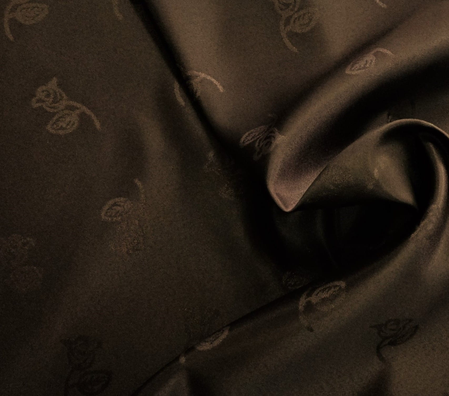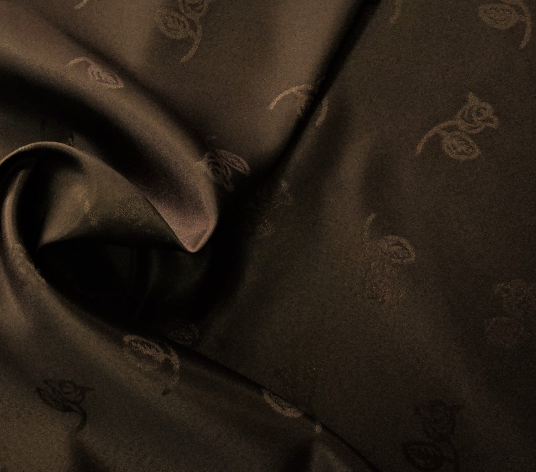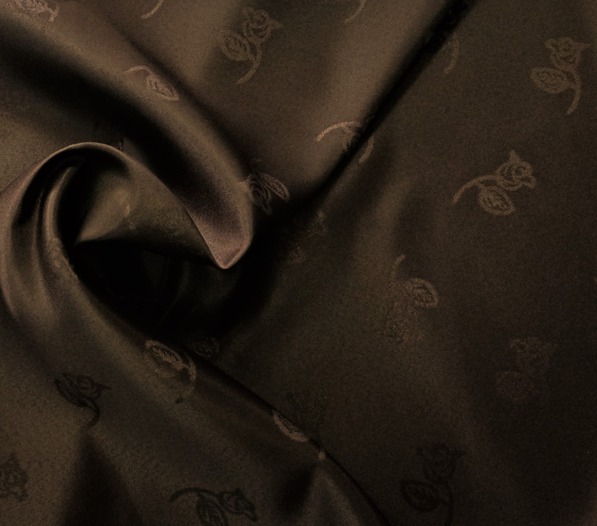 ELEGANCKA DWUSTRONNA TKANINA ZASŁONOWA W PIĘKNEJ BARWIE GORZKIEJ CZEKOLADY Z ORYGINALNYM SUBTELNIE WIDOCZNYM WZOREM W POSTACI MISTERNYCH KWIATUSZKÓW DELIKATNY POŁYSK GLAMOUR SZEROKOŚĆ 170 CM PRODUCENT POLONTEX CZĘSTOCHOWA