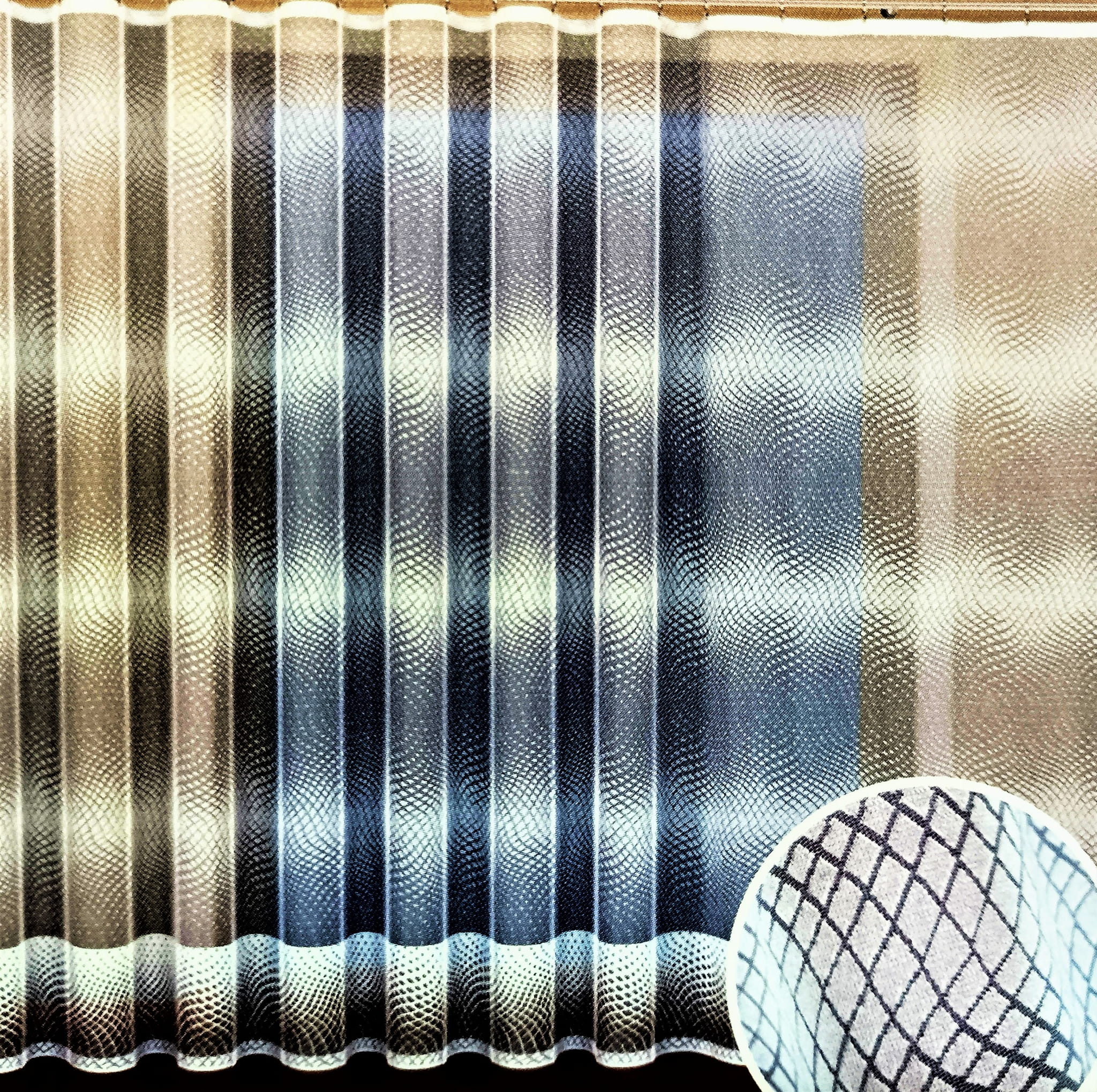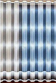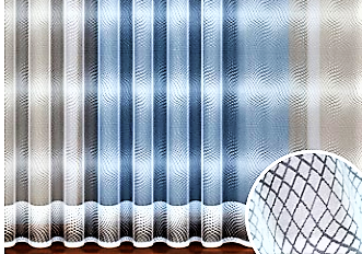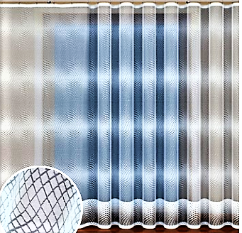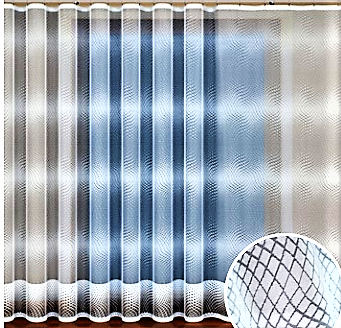 ELEGANCKA FIRANA ŻAKARDOWA W BIAŁYM KOLORZE Z PIĘKNYMI SZLAKAMI NA CAŁEJ POWIERZCHNI IMITUJĄCYMI SIATECZKOWY SPLOT ORAZ DOLNYM WYKOŃCZENIEM Z DODATKIEM PRZĘDZY W SUBTELNIE SZAREJ BARWIE WYSOKOŚĆ 250 CM PRODUCENT HAFT KALISZ