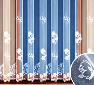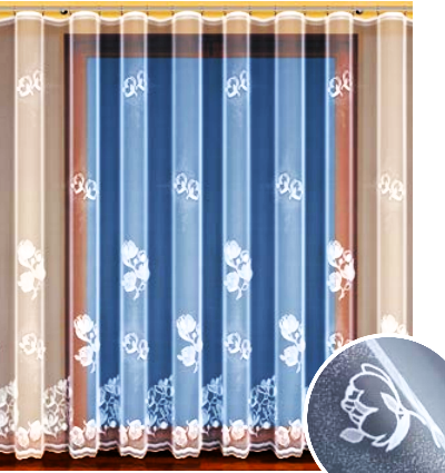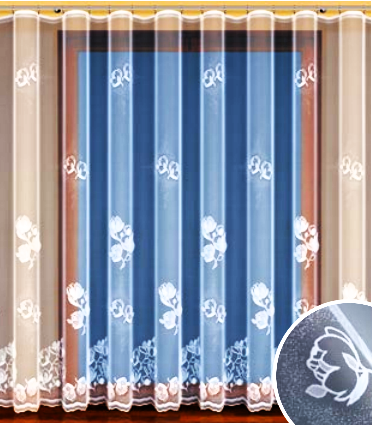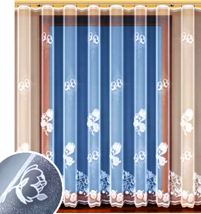 ELEGANCKA FIRANKA ŻAKARDOWA W BIAŁYM KOLORZE Z DELIKATNYM WZOREM KWIATOWYM I EFEKTOWNIE OZDOBIONYM DOŁEM 140 CM 160 CM 180 CM 220 CM 250 CM PRODUCENT HAFT KALISZ