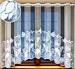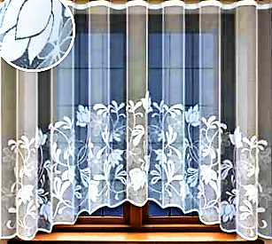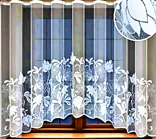 ELEGANCKA GOTOWA FIRANA ŻAKARDOWA Z BIAŁEGO ŻAKARDU BOGATO ZDOBIONY DÓŁ PRODUCENT HAFT KALISZ
