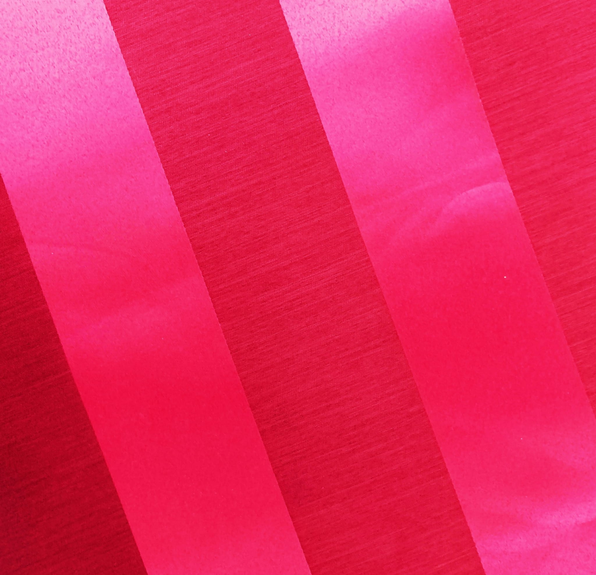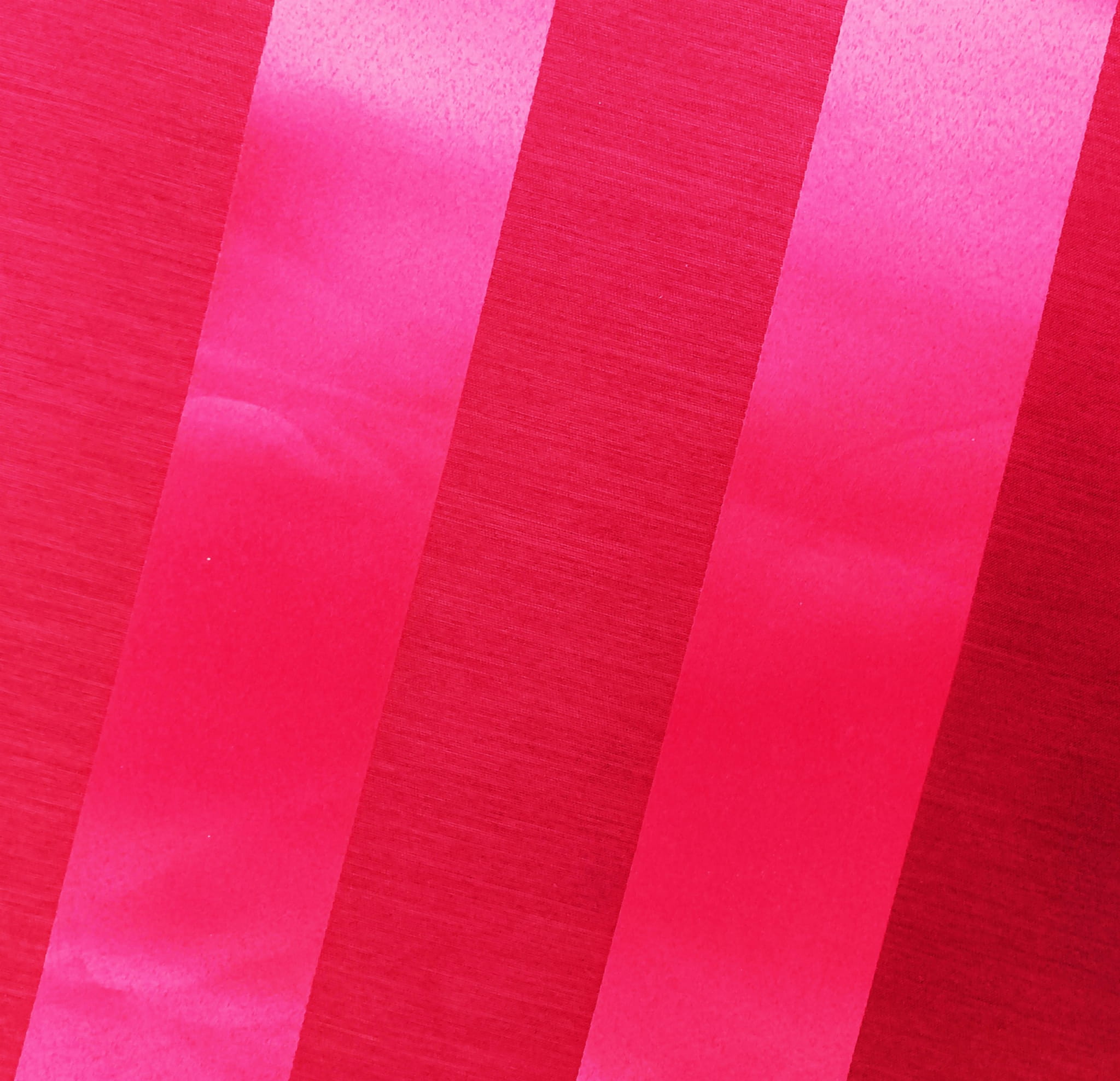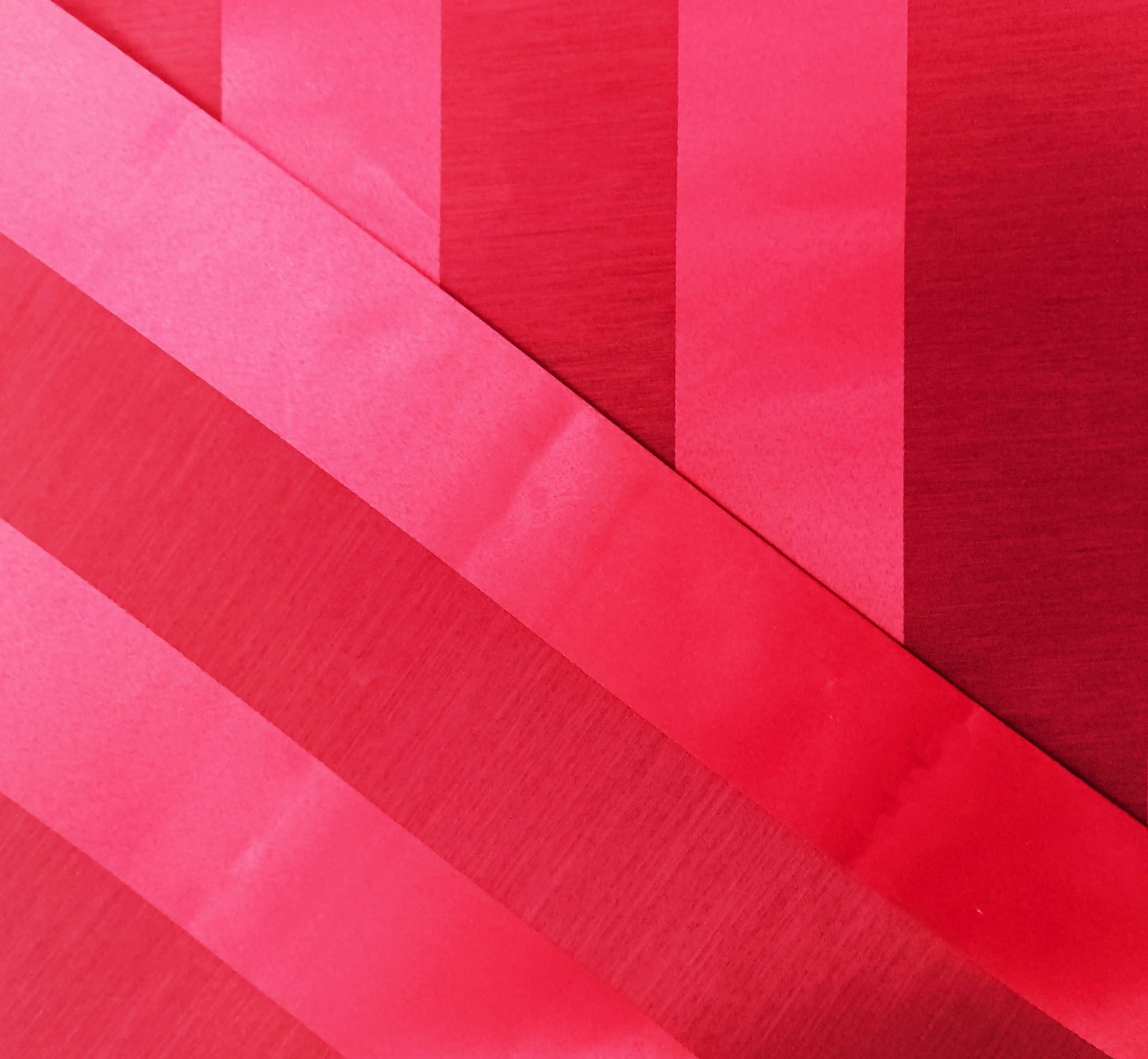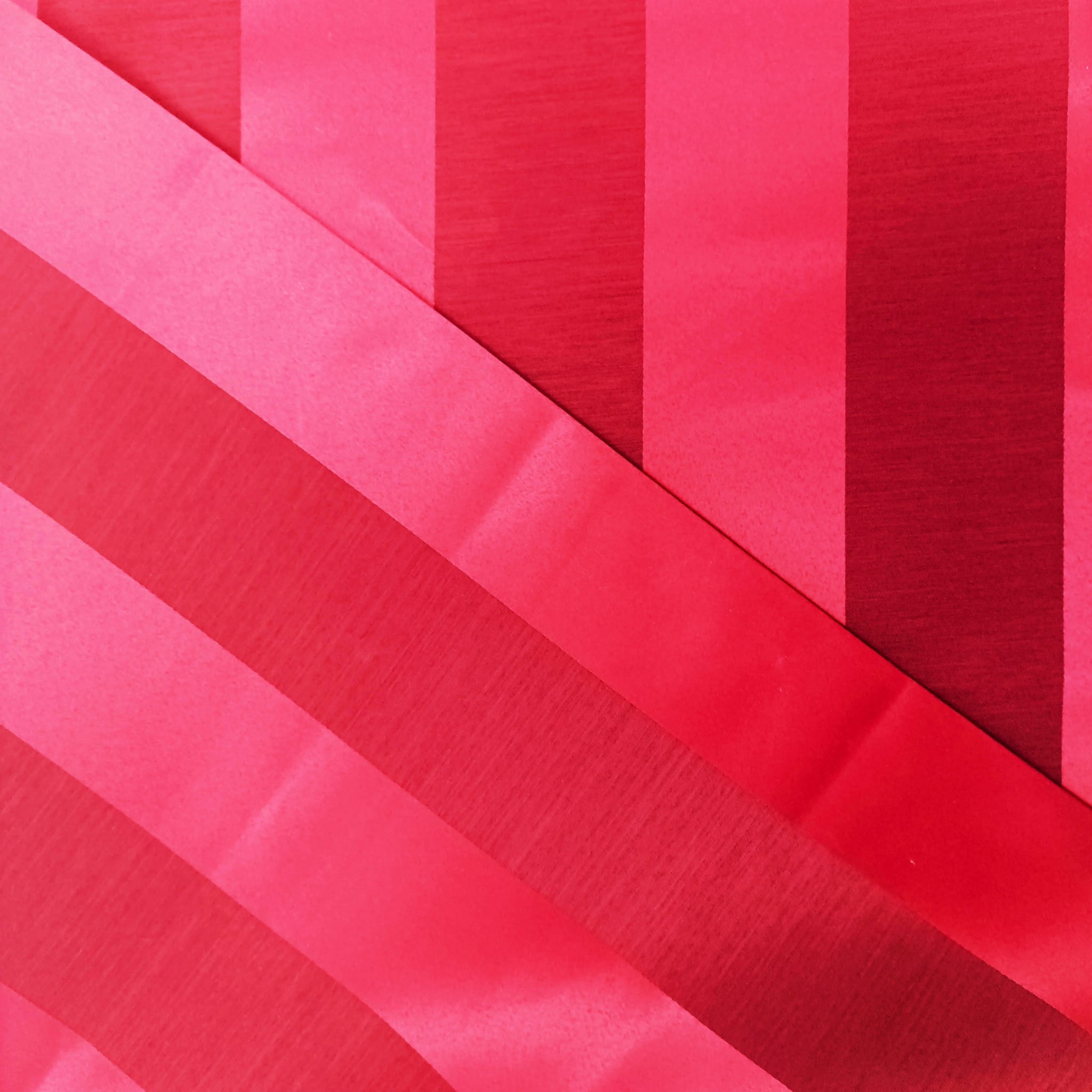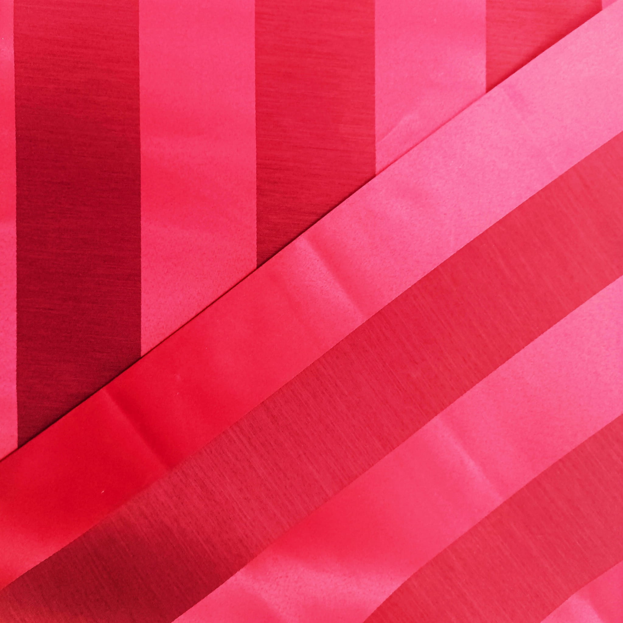 ELEGANCKA TKANINA ZASŁONOWA WZÓR SZEROKIE PIONOWO UŁOŻONE PASY W BARWIE NASYCONEGO BURGUNDU I MALINOWEJ CZERWIENI Z POŁYSKIEM GLAMOUR SZEROKOŚĆ 160 CM PRODUCENT POLONTEX CZĘSTOCHOWA