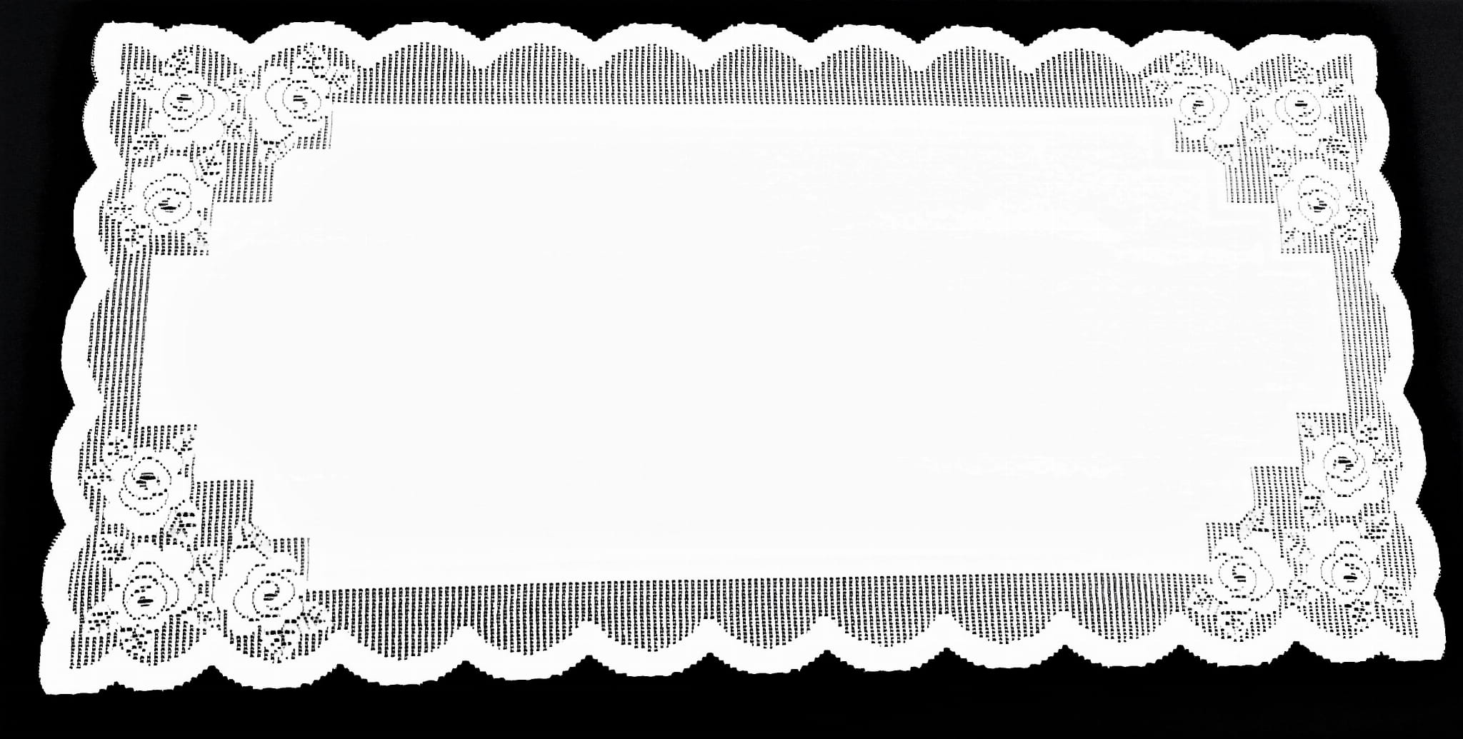 ELEGANCKI BIEŻNIK Z BIAŁEGO ŻAKARDU Z EFEKTOWNYMI ORNAMENTAMI STYL RETRO VINTAGE PRODUCENT HAFT KALISZ
