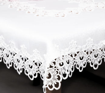 ELEGANCKI OBRUS W KOLORZE BIAŁYM, WYKONANY Z WYSOKIEJ KLASY TKANINY PLAMOODPORNEJ Z OBSZYCIAMI Z EFEKTOWNEJ GIPIURY ORAZ ZDOBIENIAMI GIPIUROWYMI NA ŚRODKU TO PRZEPIĘKNA DEKORACJA STOŁU ORAZ ŁAWY W PONADCZASOWYM STYLU. OBRUS NADAJE PRZESTRZENI ORYGINALNEGO CHARAKTERU, A KUNSZTOWNY DESIGN PODKREŚLA WYKWINTNY KLIMAT ARANŻACJI. IDEALNE POŁĄCZENIE KLASYKI Z EKLEKTYCZNĄ NOWOCZESNOŚCIĄ PREZENTUJE SIĘ DOSKONALE I ZAPEWNIA WYJĄTKOWĄ ATMOSFERĘ WNĘTRZA.