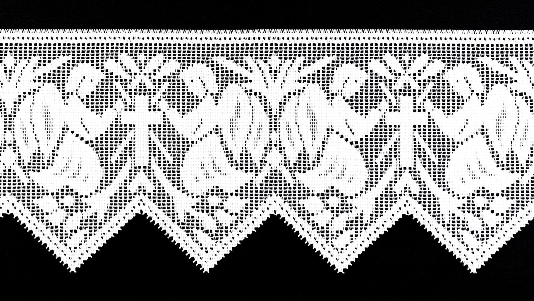 KORONKA SAKRALNA ZAZDROSTKA LITURGICZNA Z MOTYWEM ANIOŁKÓW WYKONANA Z ŻAKARDU W ORYGINALNYM ODCIENIU ŚMIETANOWEJ BIELI WYSOKOŚĆ 14 CM PRODUCENT POLONTEX CZĘSTOCHOWA