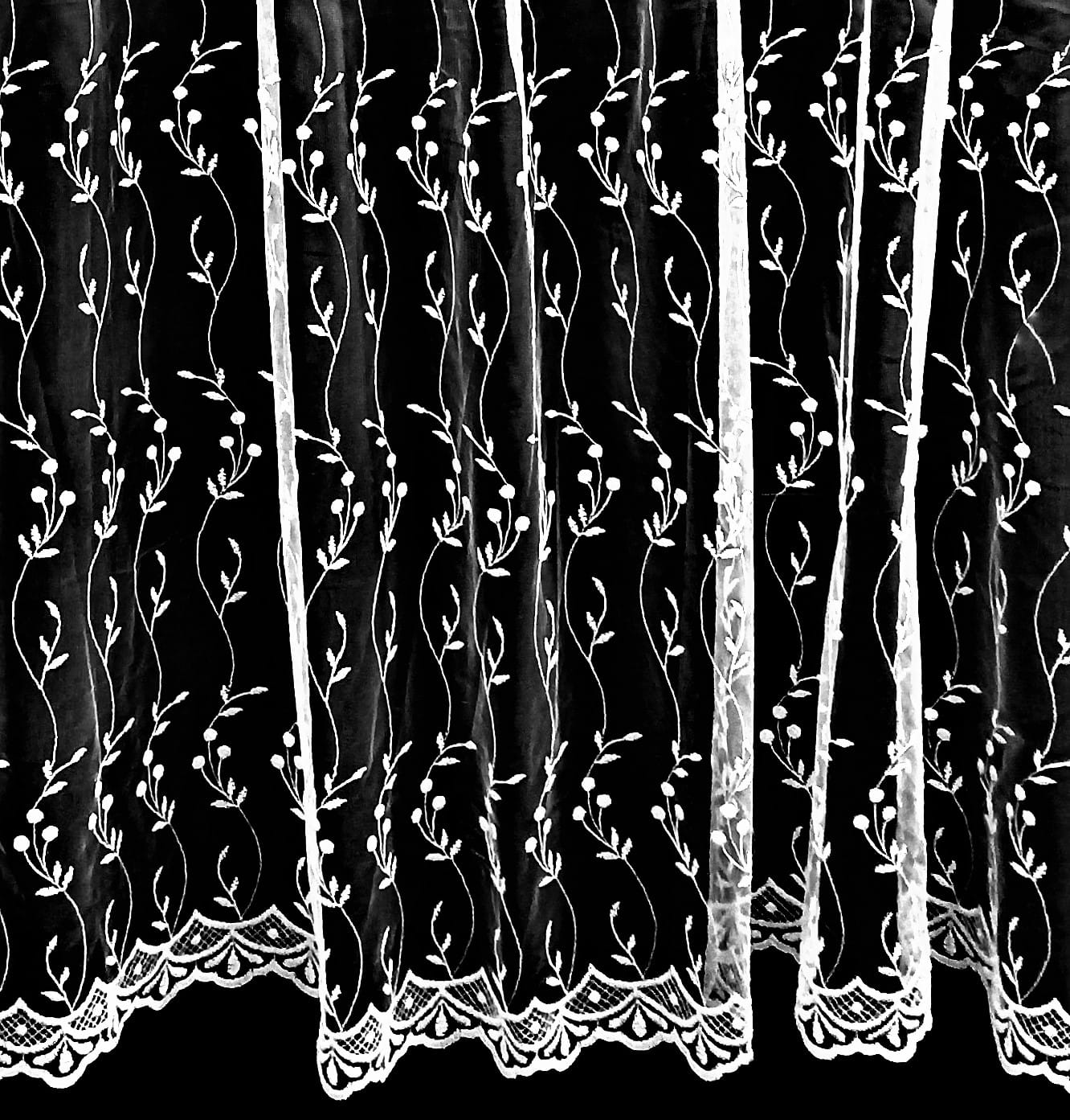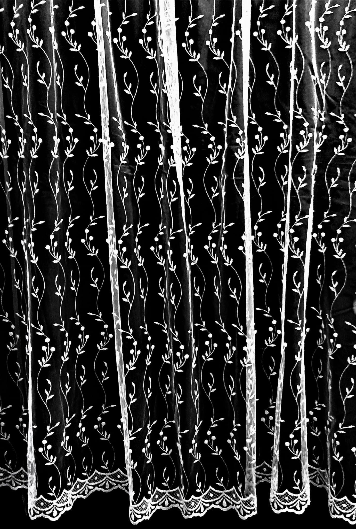 LEKKA I ZWIEWNA FIRANKA SIATECZKA KOLOR BIAŁY EFEKTOWNY WZÓR GAŁĄZKI Z KROPECZKAMI ZE SREBRNĄ NITKĄ STYL GLAMOUR WYSOKOŚĆ 280 CM PRODUCENT PAPION TURCJA
