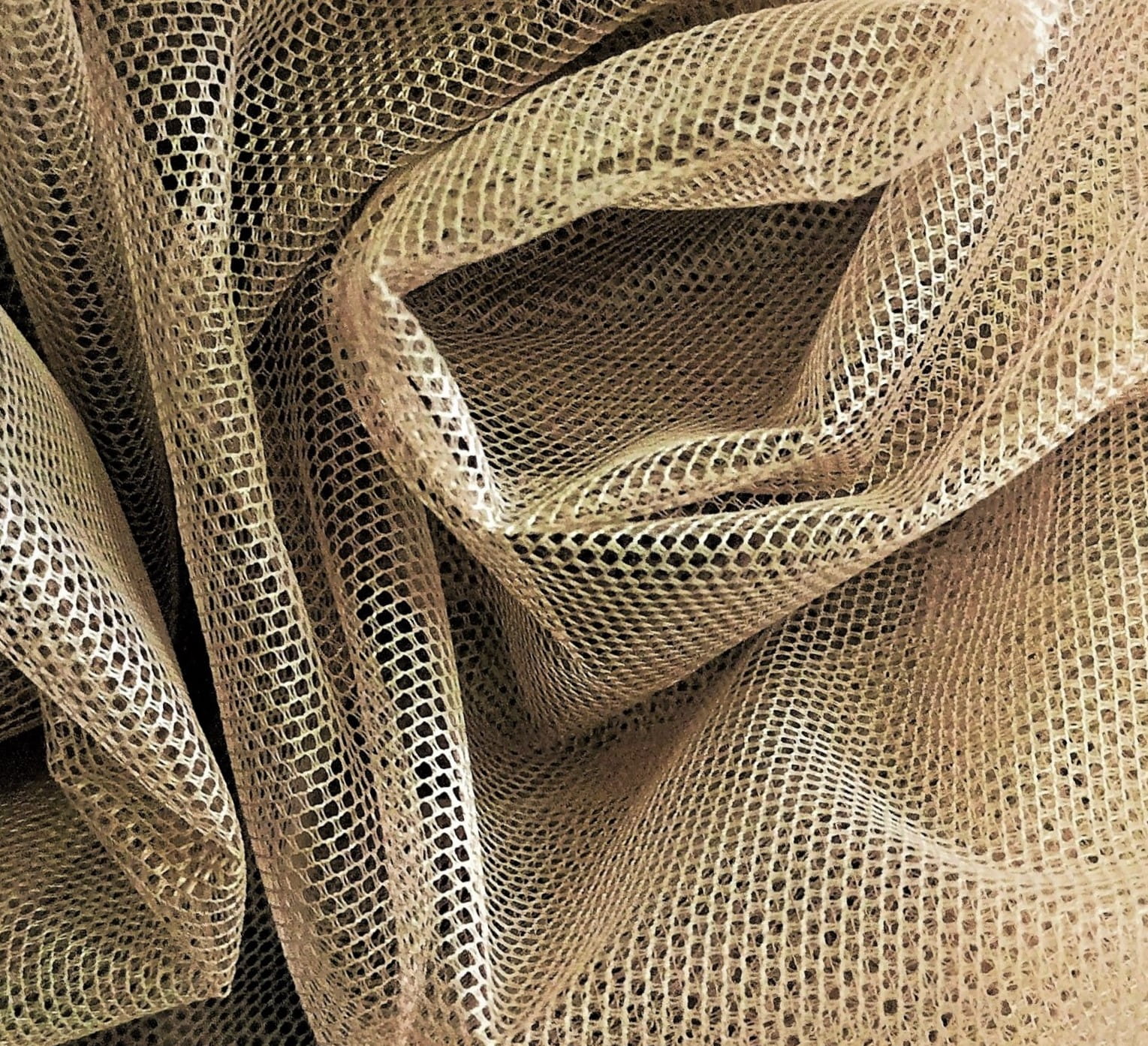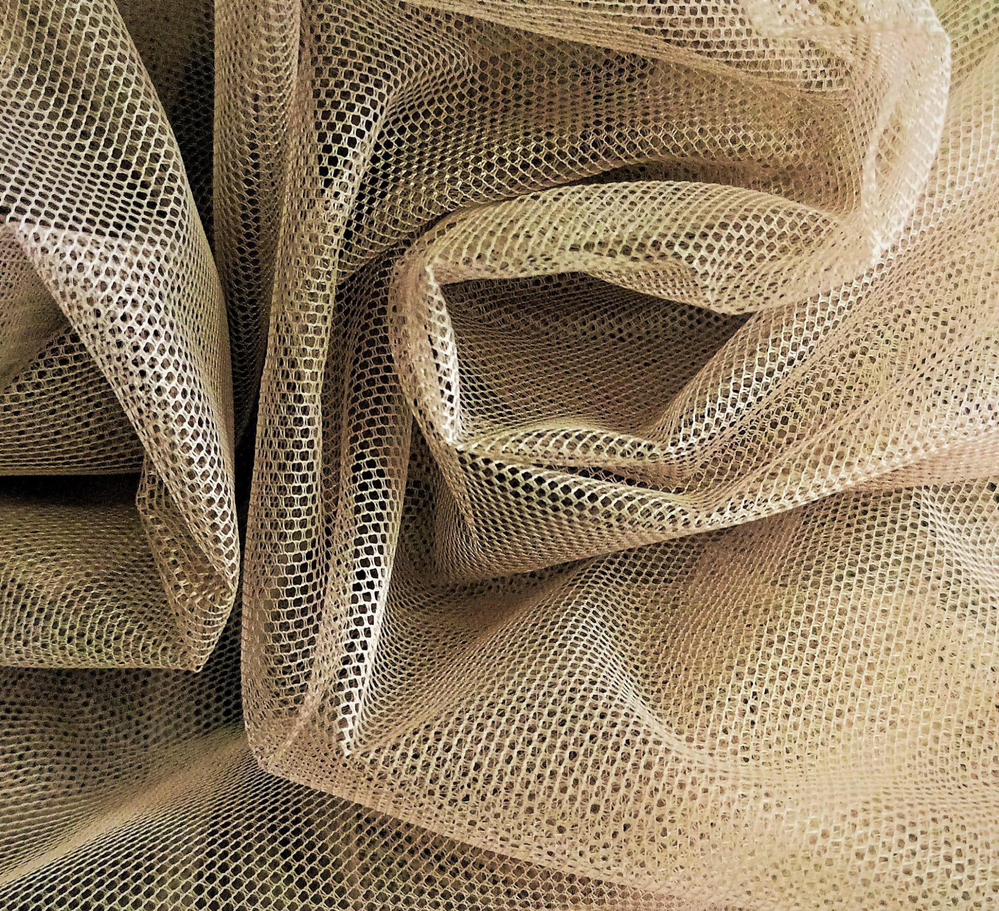 MIĘKKI TIUL W SUBTELNEJ BARWIE KAKAOWEJ O STRUKTURZE DELIKATNEJ SIATECZKI WYSOKOŚĆ 150 CM PRODUCENT HAFT KALISZ
