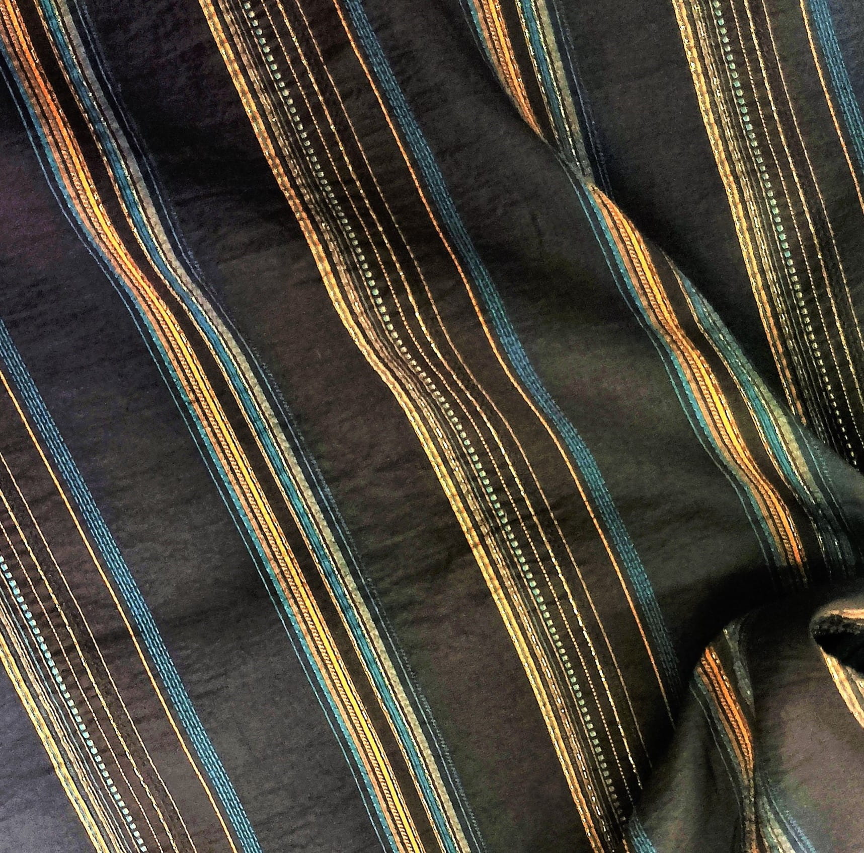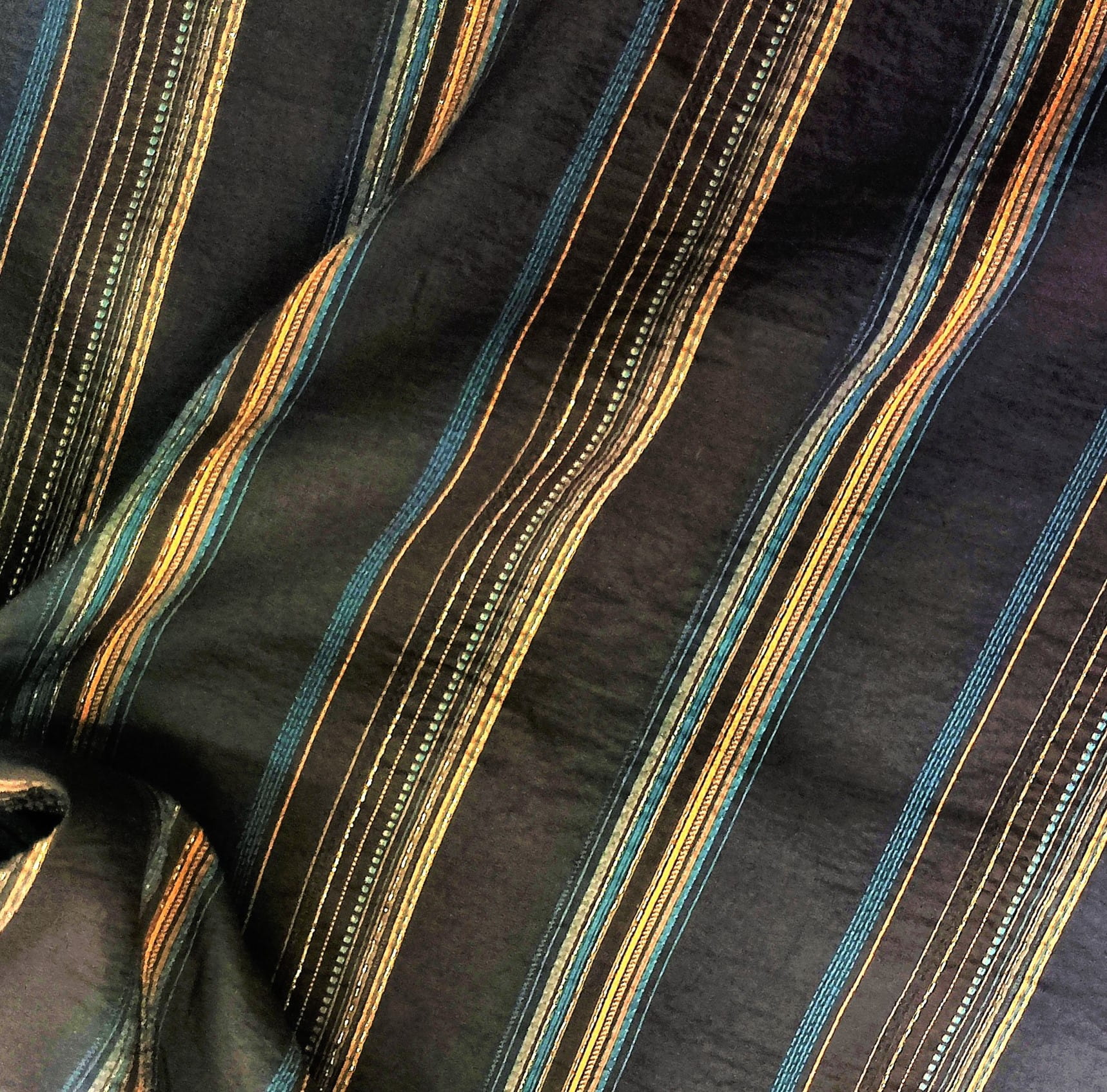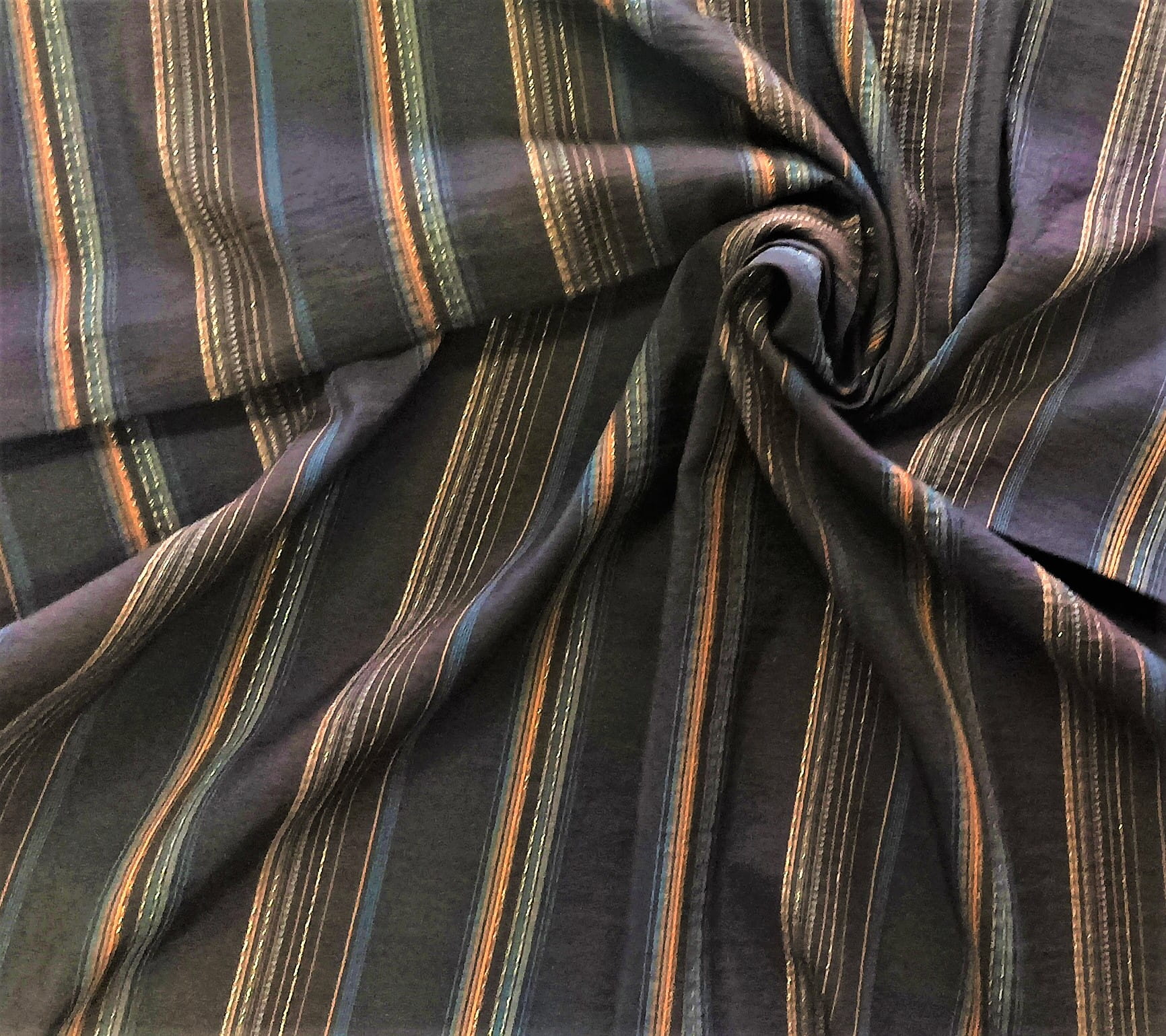 NIEZWYKLE EFEKTOWNA DWUSTRONNA TKANINA ZASŁONOWA W KOLORZE BAKŁAŻANOWEJ SZAROŚCI Z ELEGANCKIMI PIONOWO UŁOŻONYMI PASECZKAMI W PIĘKNYCH BARWACH JESIENI Z SUBTELNYM POŁYSKIEM GLAMOUR SZEROKOŚĆ 150 PRODUCENT MILANO ITALIA
