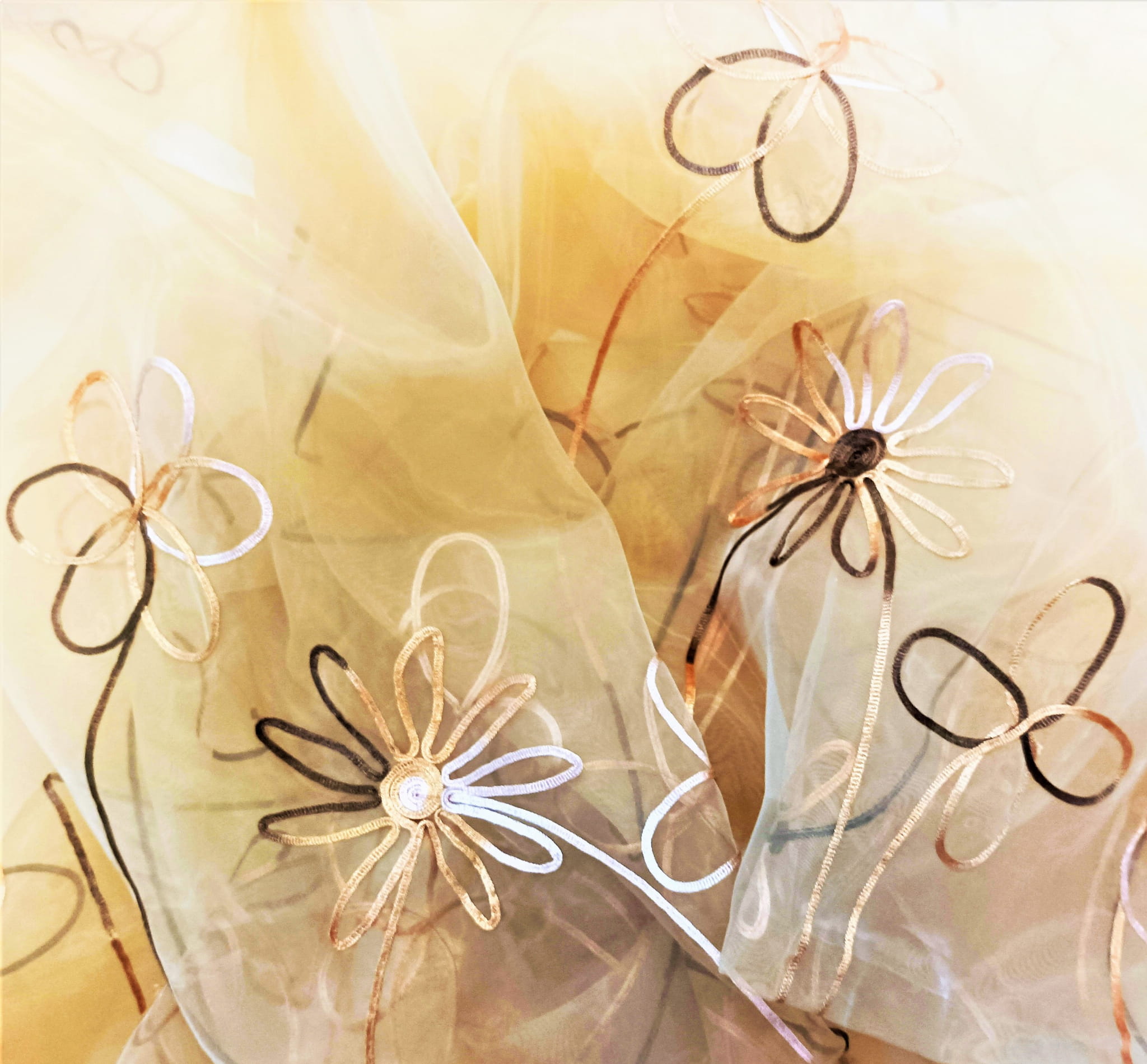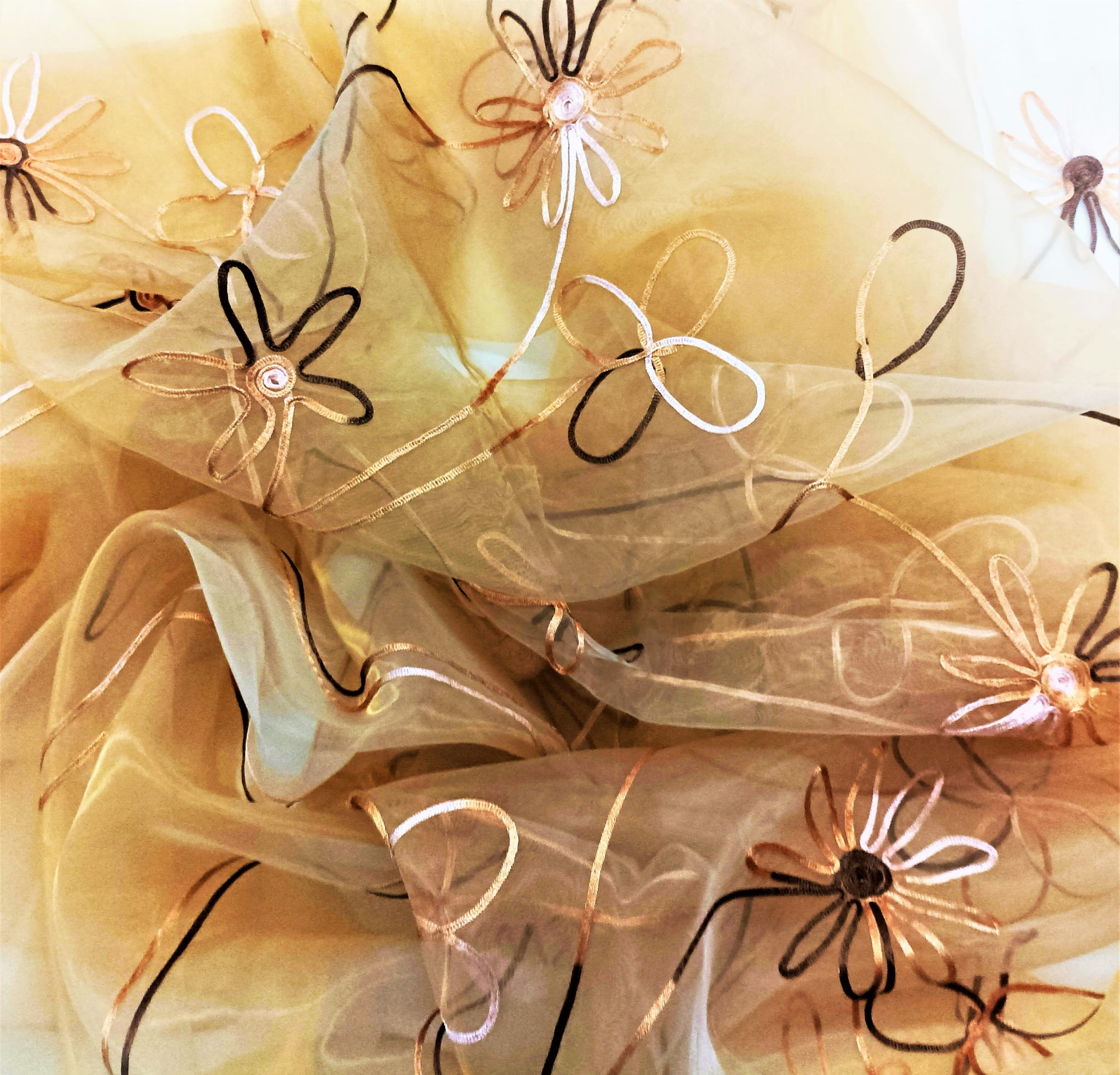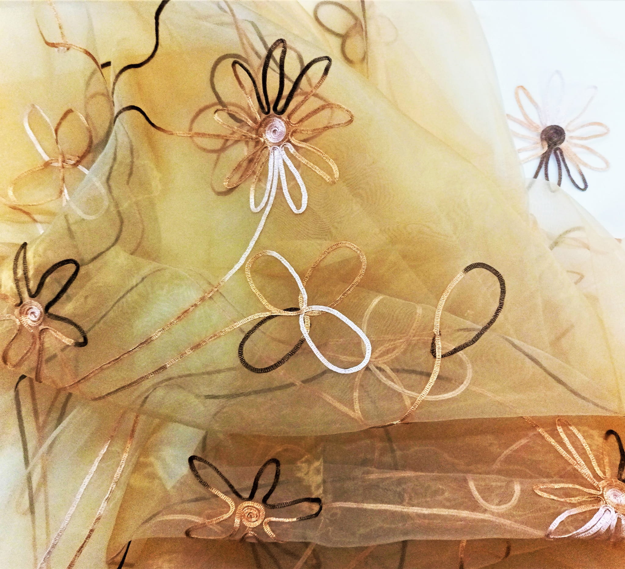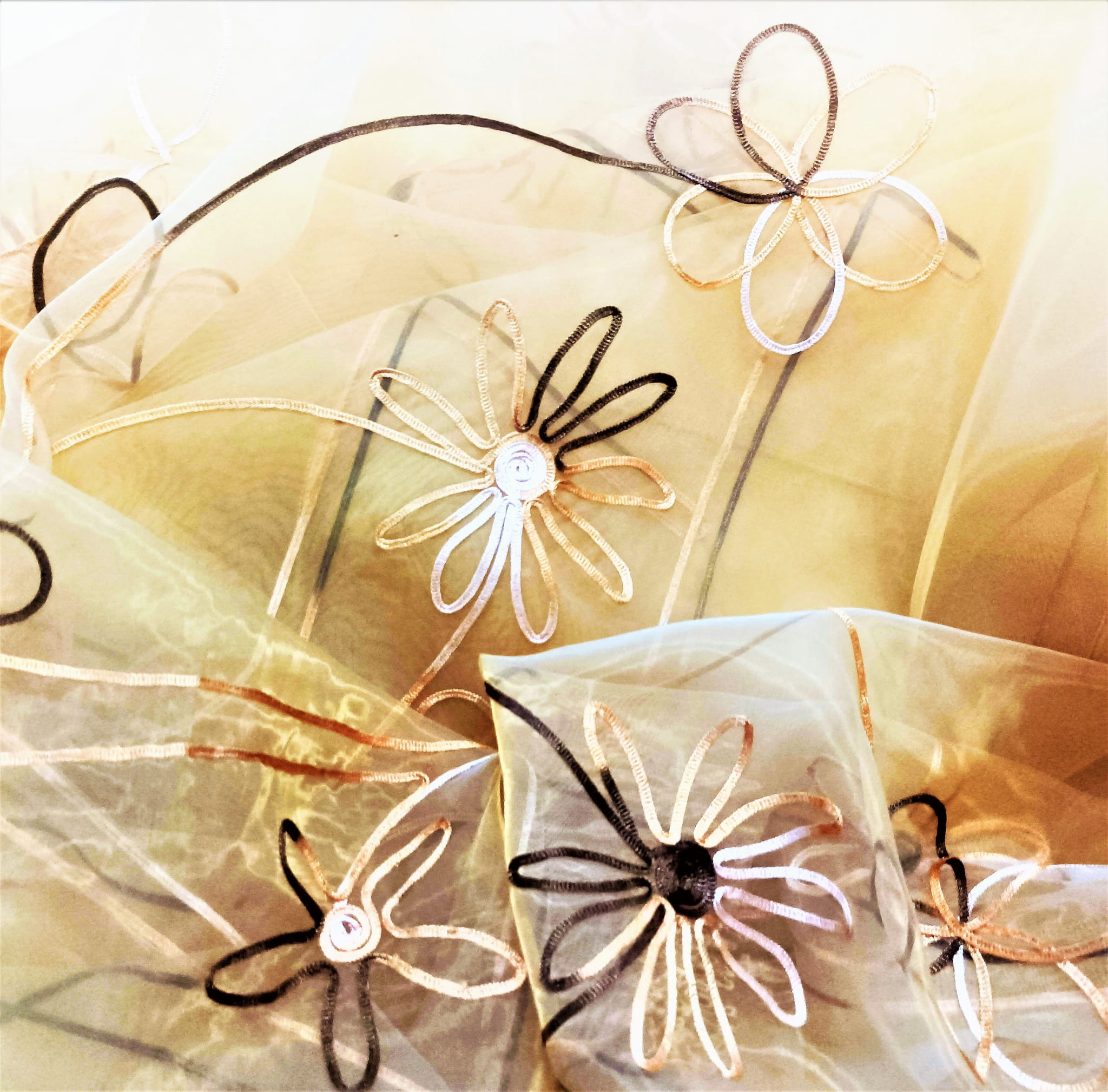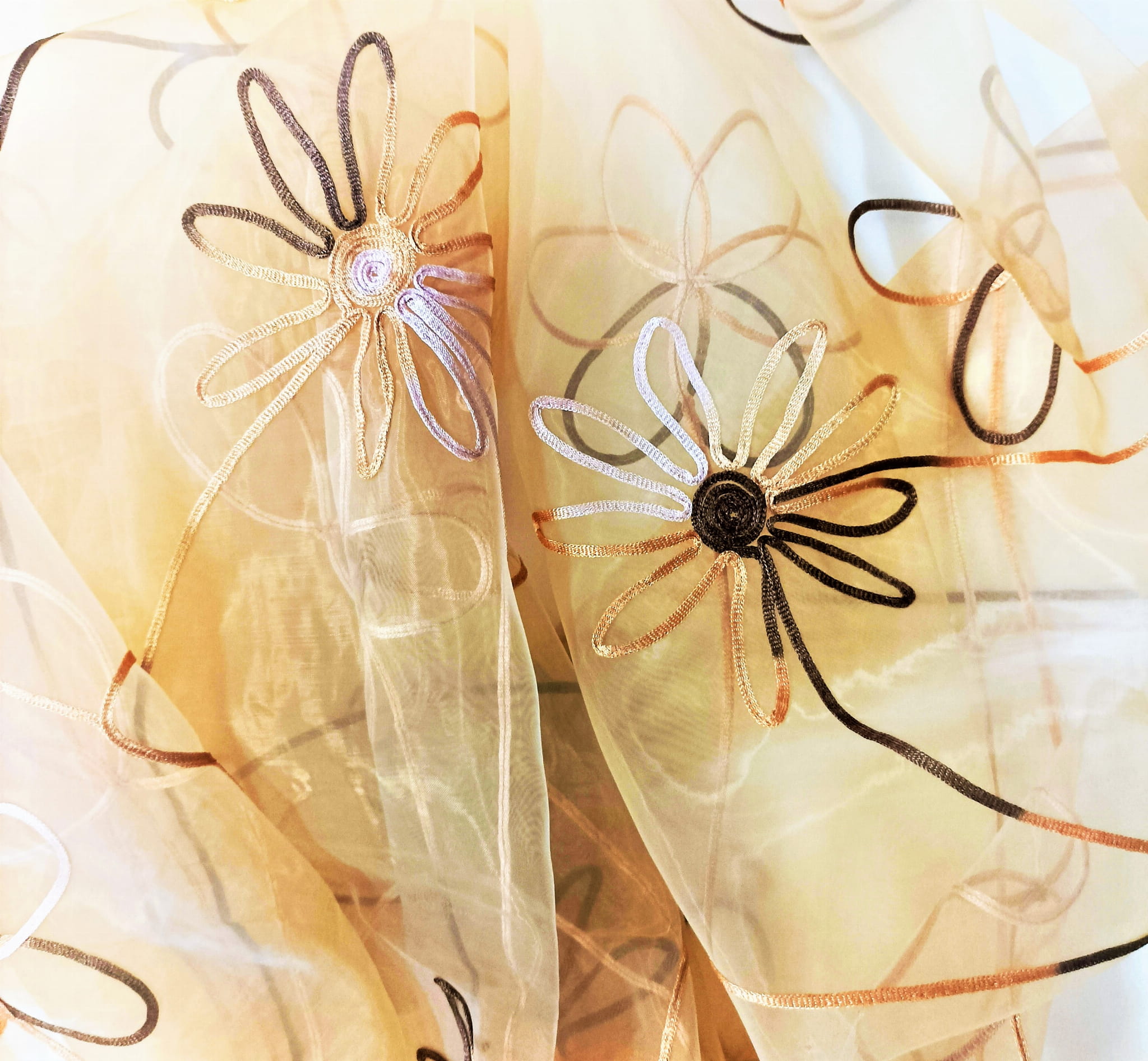 NIEZWYKLE EFEKTOWNA ORGANTYNA PREMIUM W KOLORZE CIEPŁEGO BEŻU Z DUŻYM, HAFTOWANYM WZOREM FLORYSTYCZNYM W POSTACI PIĘKNYCH, PIONOWO UŁOŻONYCH KWIATÓW W RÓŻNYCH ODCIENIACH BRĄZU TO ELEGANCKA DEKORACJA W KLIMACIE BOHO, RETRO, VINTAGE, ETNO ORAZ GLAMOUR. WYGLĄDA ŚWIETNIE ZARÓWNO JAKO ORYGINALNA FIRANA ORAZ JAKO OZDOBNA ZASŁONA. ORGANTYNA POSIADA DELIKATNĄ I ZWIEWNĄ STRUKTURĘ, BARDZO DOBRZE ROZPRASZA PROMIENIE SŁONECZNE, ROZJAŚNIA I ROZŚWIETLA WNĘTRZE. IDEALNIE DOBRANE POŁĄCZENIE KOLORYSTYCZNE W POŁĄCZENIU Z PERFEKCYJNIE HAFTOWANYM, KWIATOWYM PRINTEM TWORZY SPEKTAKULARNY EFEKT WIZUALNY ARANŻACJI OKNA.