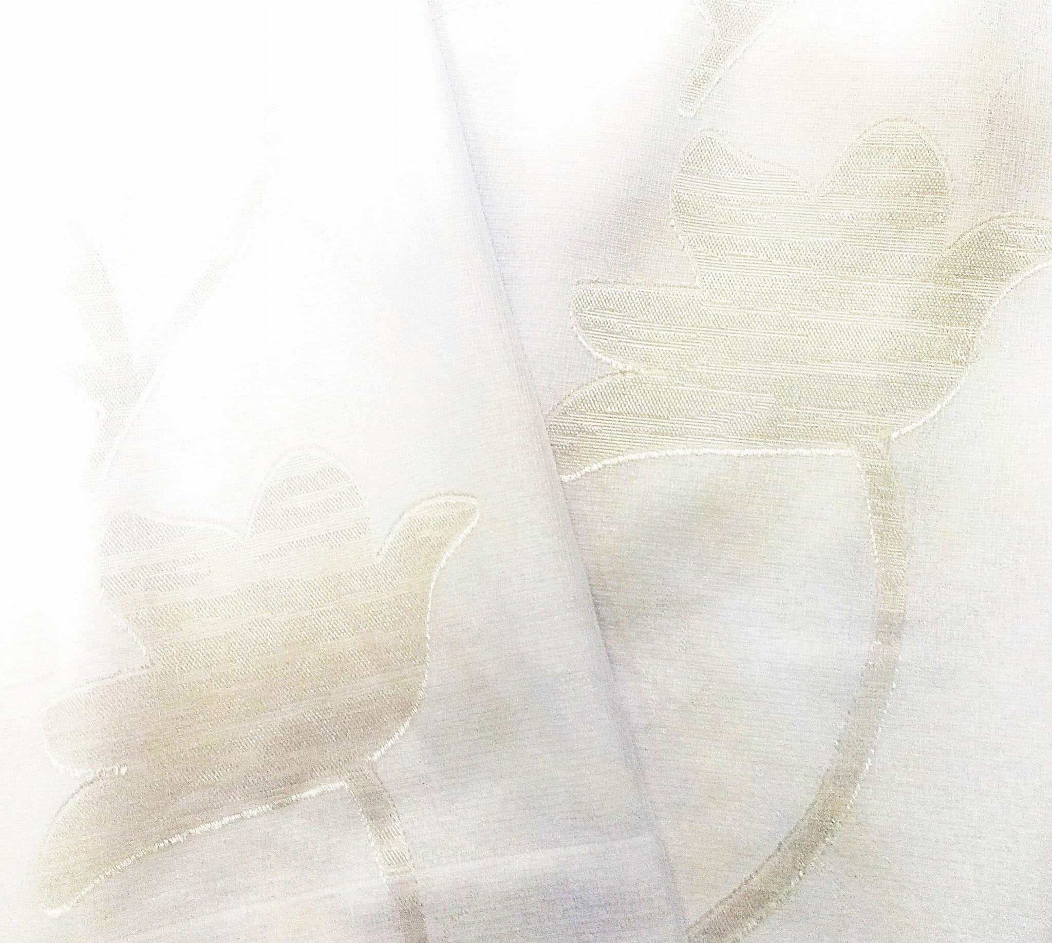 NIEZWYKLE ORYGINALNA FIRANA WOAL FRANCUSKI SABLE - Z JĘZYKA FRANCUSKIEGO "PIASEK" - W BIAŁYM KOLORZE Z PIĘKNYM WZOREM FLORYSTYCZNYM W POSTACI DUŻYCH, PIONOWO UŁOŻONYCH KWIATÓW W BIAŁEJ TONACJI POŁYSK GLAMOUR TO BARDZO ELEGANCKA ARANŻACJA OKNA. FIRANKA IDEALNIE SIĘ UKŁADA, POSIADA UNIKALNĄ, SZLACHETNĄ STRUKTURĘ W POSTACI WIELU GĘSTO TKANYCH NITEK, PRZYPOMINAJĄCYCH DROBINY PIASKU. DOSKONALE PREZENTUJE SIĘ JAKO EFEKTOWNA FIRANA LUB OZDOBNA, PEŁNA KLASY ZASŁONA. SPEKTAKULARNY PRINT W BIAŁEJ BARWIE NA BIAŁYM TLE DELIKATNIE ROZŚWIETLA WNĘTRZE, NADAJĄC PONADCZASOWEJ KLASY I WYSZUKANEGO, FRANCUSKIEGO STYLU.