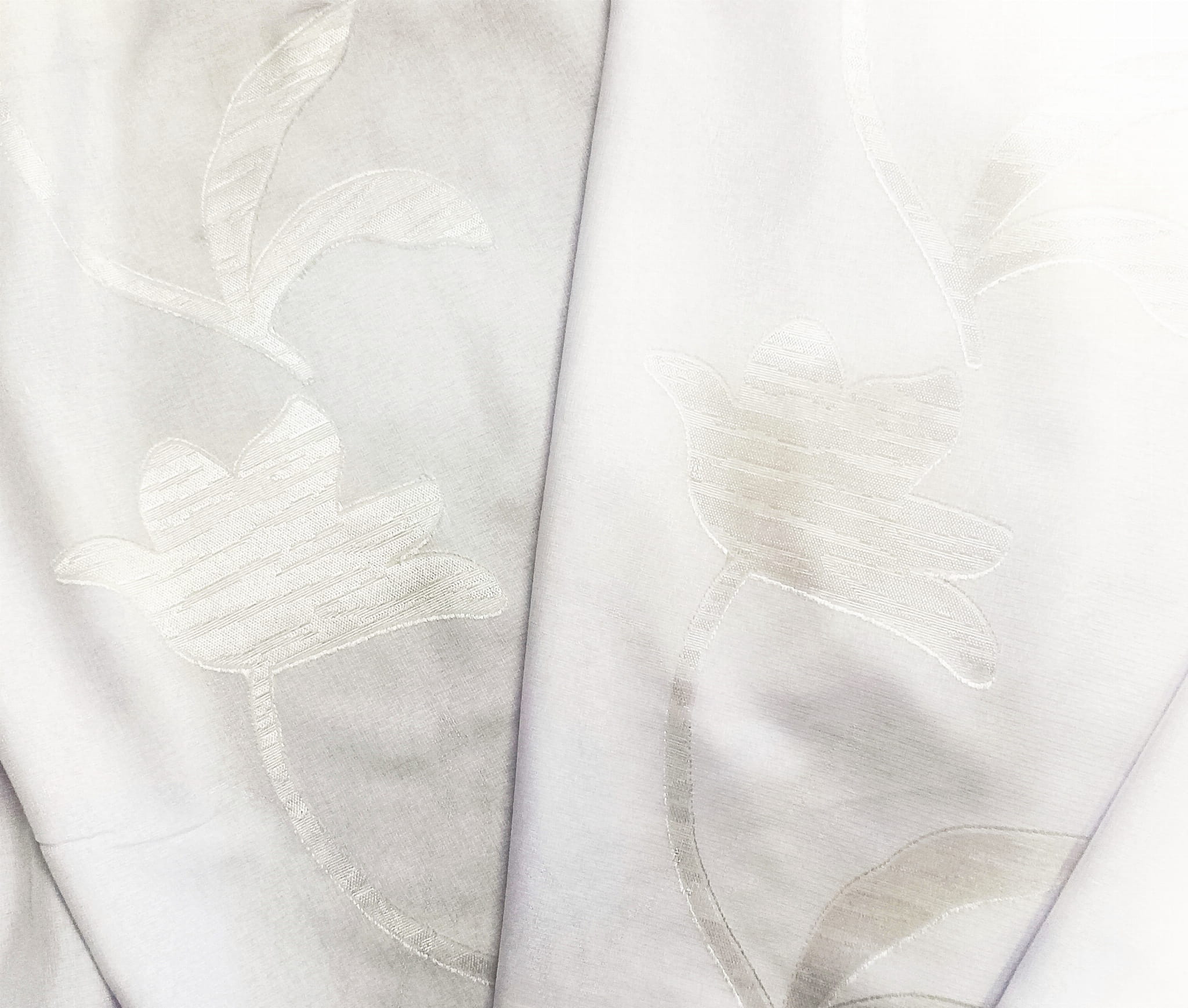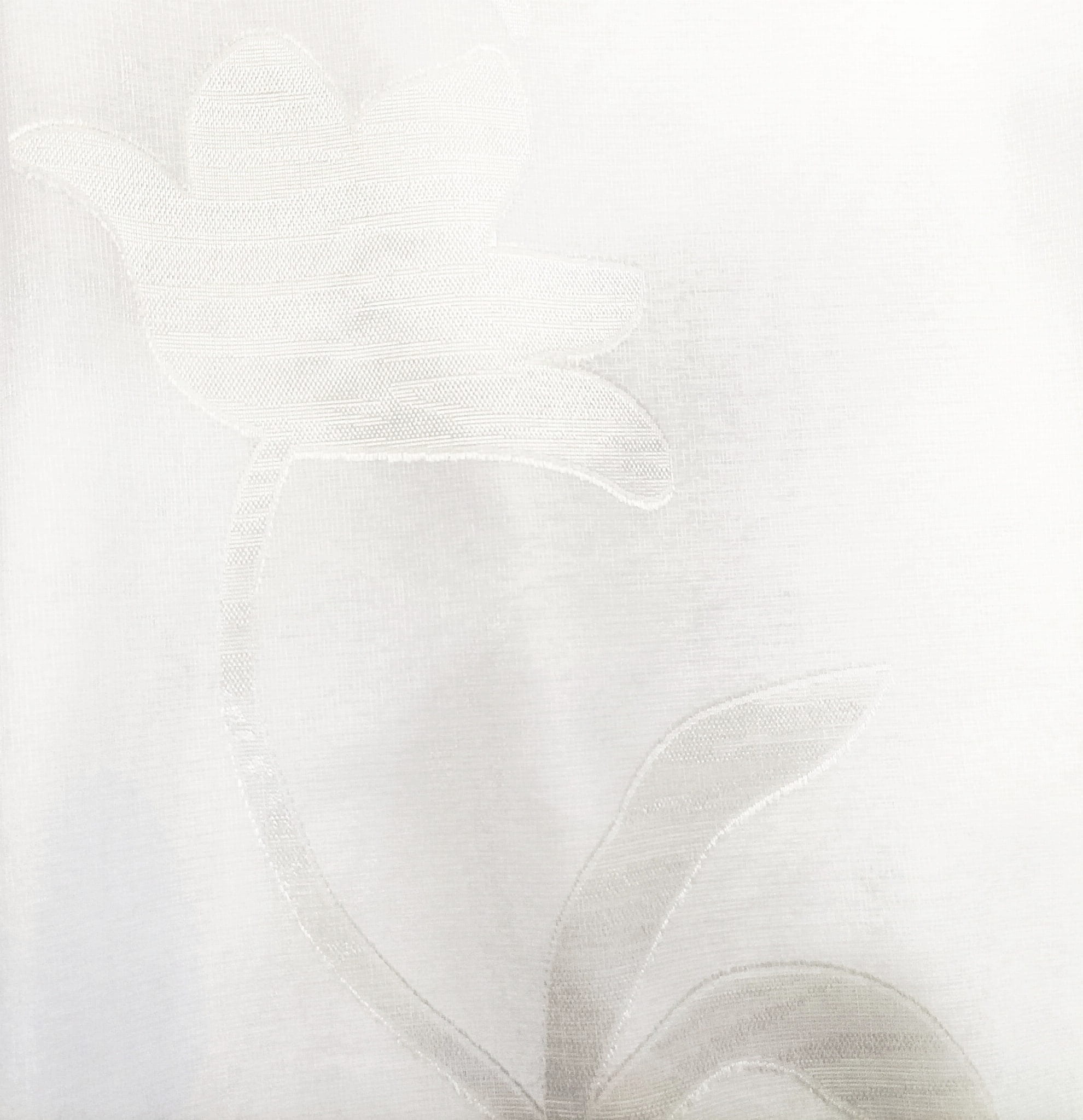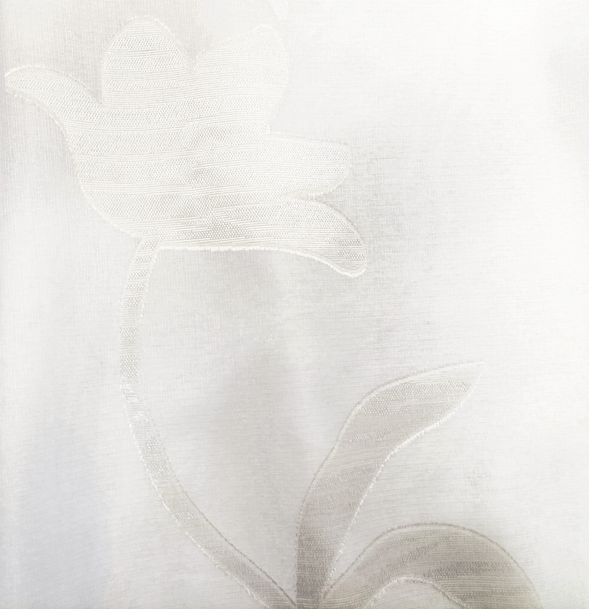 NIEZWYKLE ORYGINALNA FIRANA WOAL FRANCUSKI SABLE W BIAŁYM KOLORZE Z PIĘKNYM WZOREM FLORYSTYCZNYM W POSTACI DUŻYCH PIONOWO UŁOŻONYCH KWIATÓW W BIAŁEJ TONACJI POŁYSK GLAMOUR WYSOKOŚĆ 290 CM