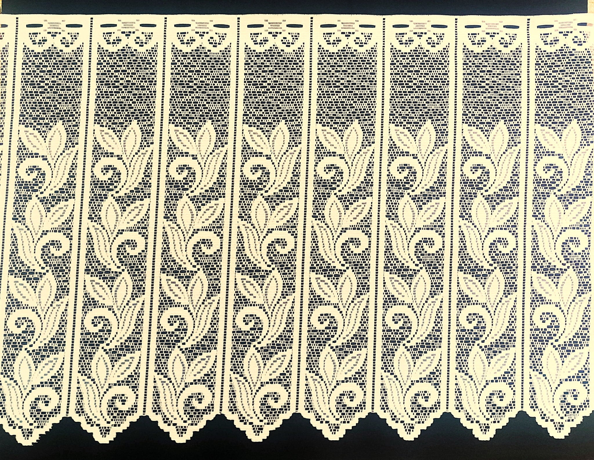 NIEZWYKLE OZDOBNA ŻAKARDOWA ZAZDROSTKA RETRO W ORYGINALNEJ BARWIE ECRU Z MISTERNYMI ORNAMENTAMI STYL VINTAGE WYSOKOŚC 60 CM PRODUCENT POLONTEX CZĘSTOCHOWA
