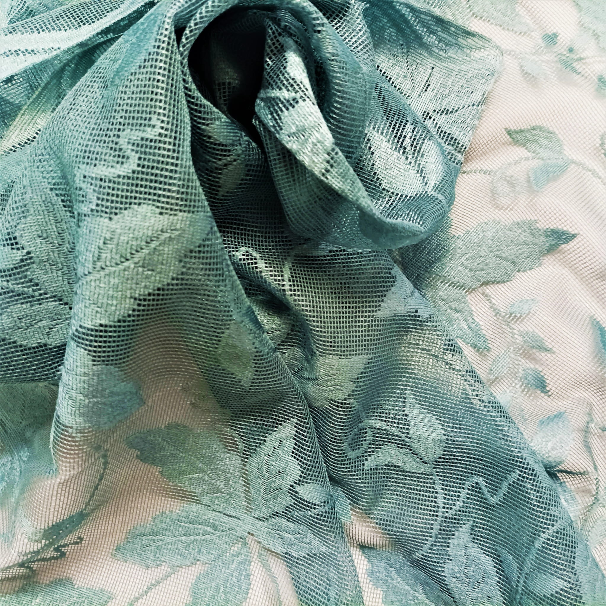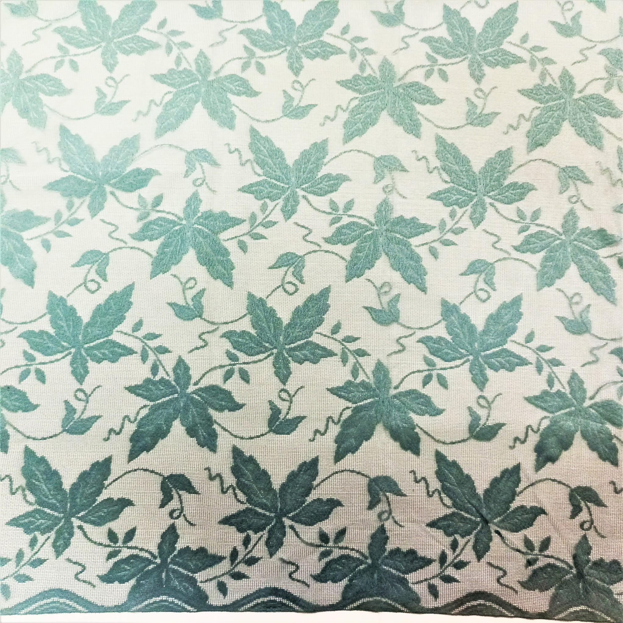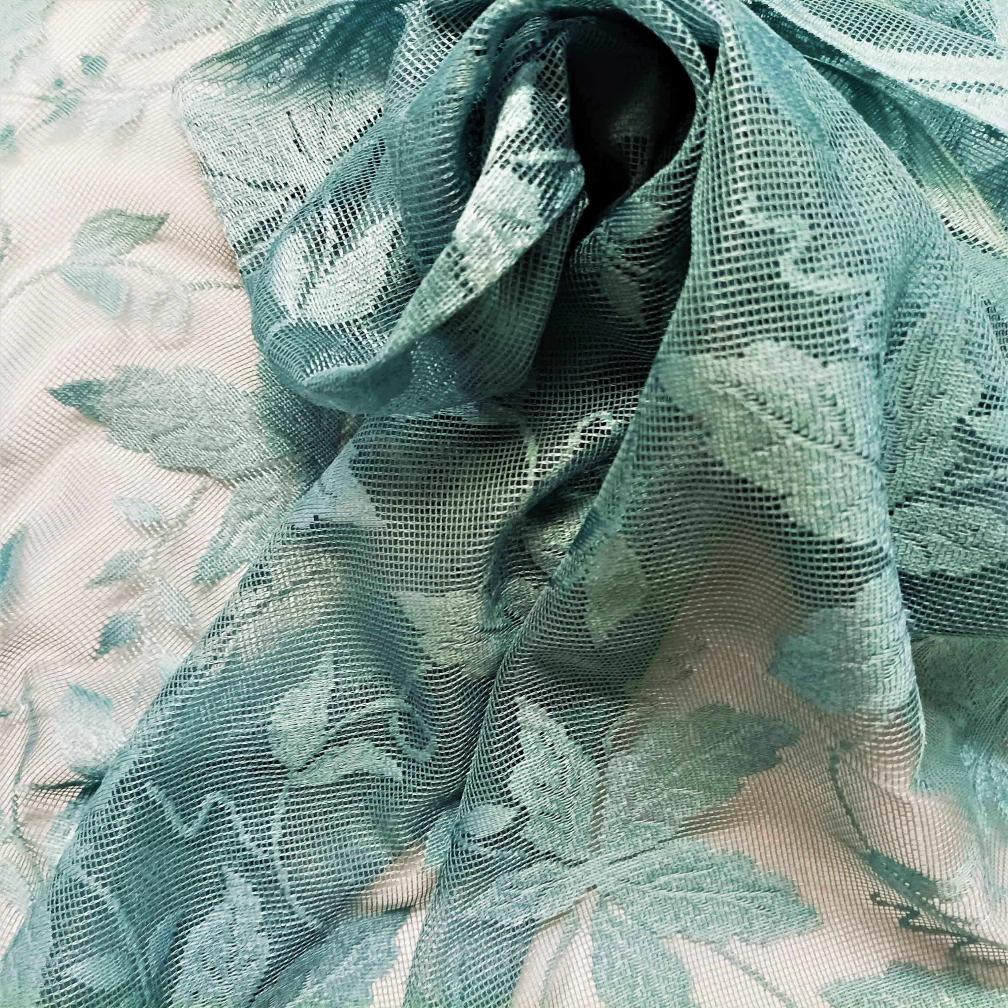 NIEZWYKLE STYLOWA FIRANKA ŻAKARD RETRO W PIĘKNEJ MIĘTOWEJ BARWIE Z DUŻYM WZOREM KWIATOWYM NA STRUKTURZE SIATECZKI WYSOKOŚĆ 150 CM PRODUCENT POLONTEX CZĘSTOCHOWA