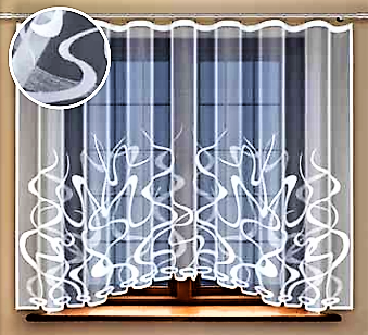 NOWOCZESNA GOTOWA FIRANA BIAŁY ŻAKARD Z BARDZO ORYGINALNYM WZOREM TO EFEKTOWNA ARANŻACJA OKNA W NIEZWYKLE STYLOWYM WYDANIU. FIRANKA ŚWIETNIE WPISUJE SIĘ W AKTUALNE TRENDY DEKORACYJNE, NADAJE ŚWIEŻOŚCI, LEKKOŚCI ORAZ BLASKU. PIĘKNIE SIĘ UKŁADA, A FANTAZYJNIE WYCIĘTY DÓŁ W POŁĄCZENIU Z MODNYM DESIGNEM DECYDUJE O UNIKALNYM KLIMACIE PRZESTRZENI.