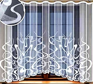 NOWOCZESNA GOTOWA FIRANA BIAŁY ŻAKARD Z BARDZO ORYGINALNYM WZOREM I ELEGANCKIM WYCIĘCIEM NA DOLE PRODUCENT HAFT KALISZ