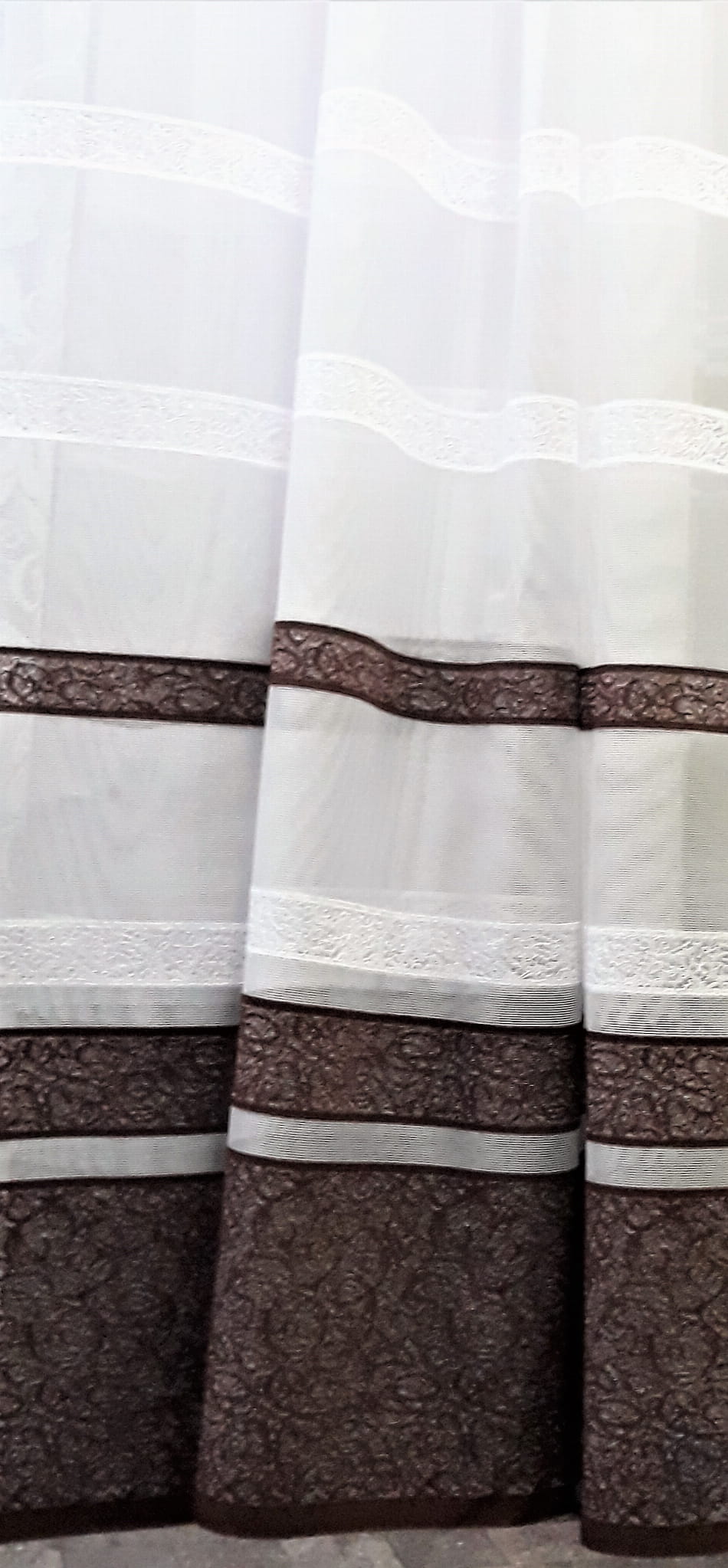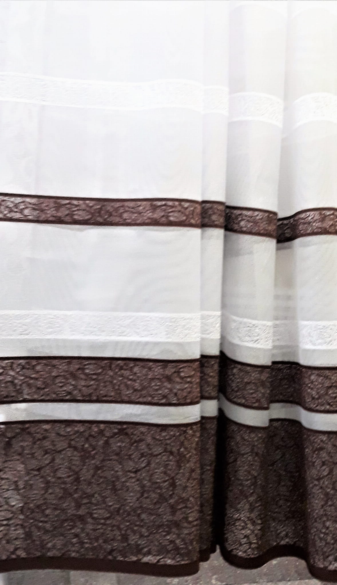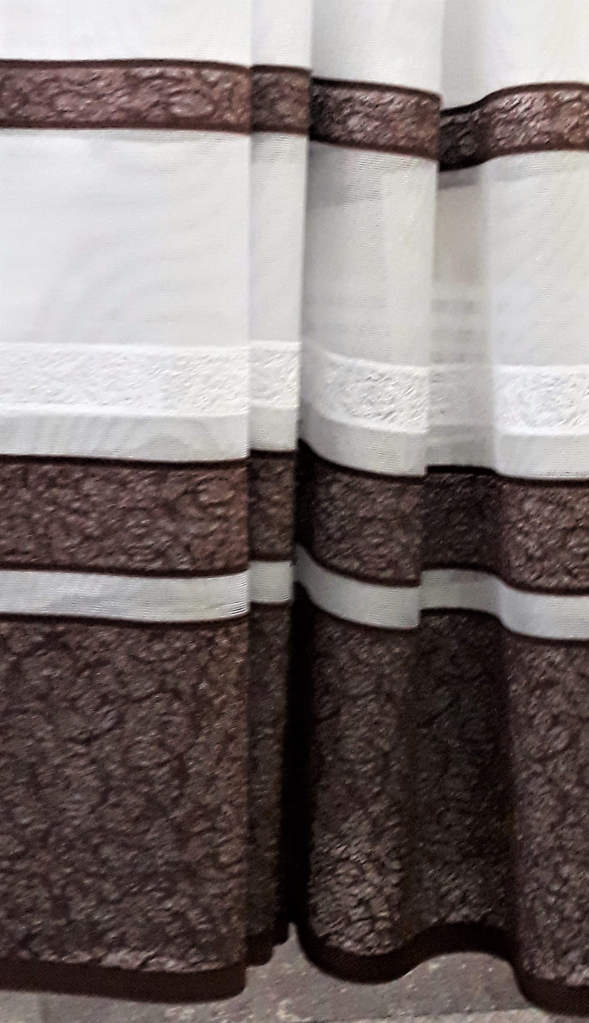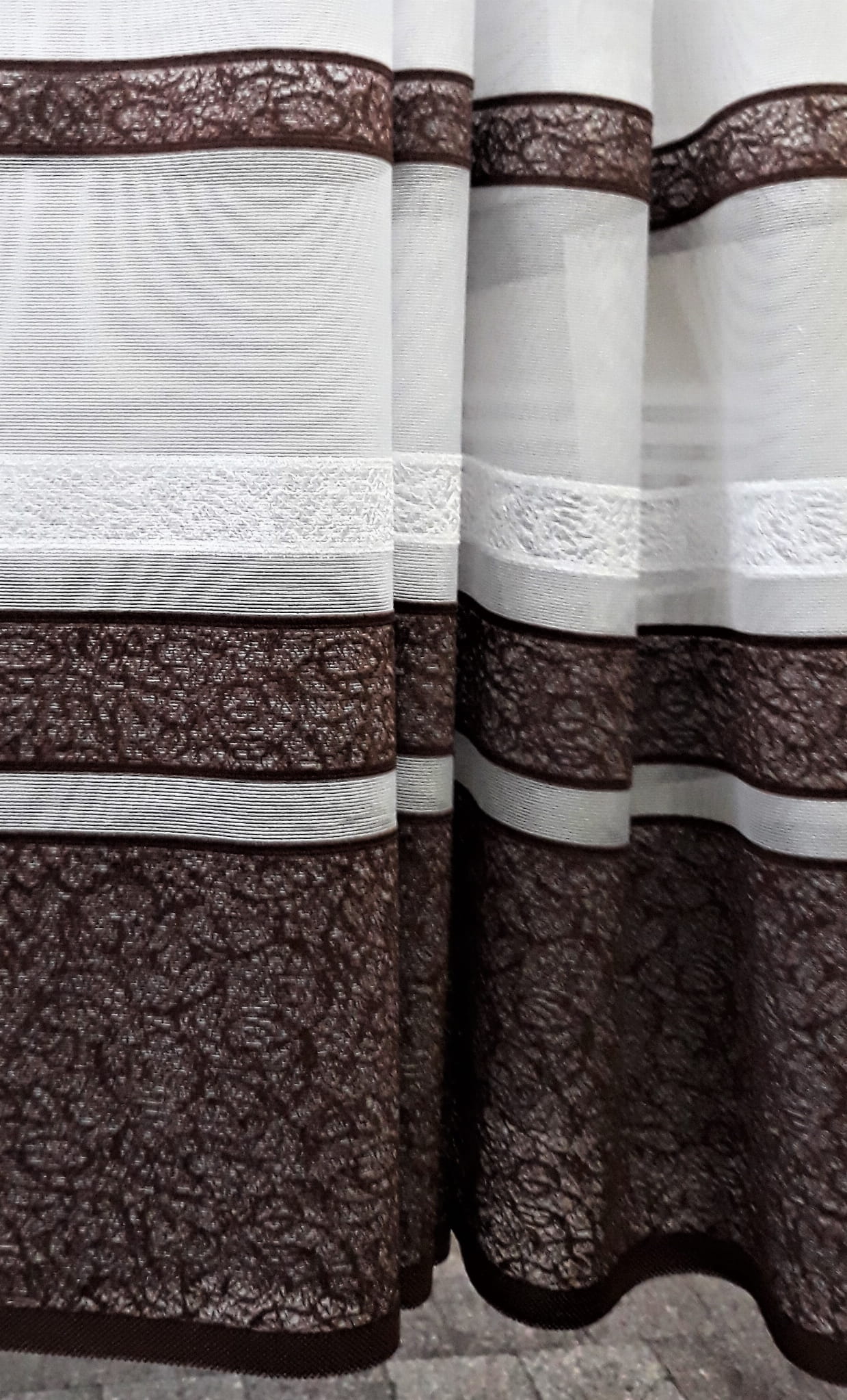 NOWOCZESNA I BARDZO ORYGINALNA FIRANA Z ŻAKARDU W BIAŁYM KOLORZE Z BRĄZOWYM SZLAKIEM NA DOLE WYSOKOŚĆ 120 CM PRODUCENT HAFT KALISZ