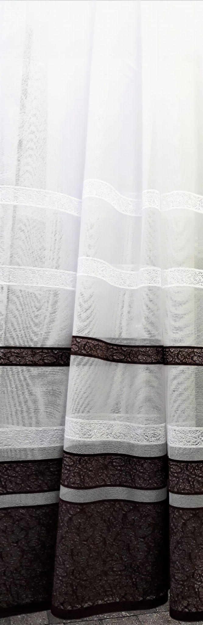 NOWOCZESNA I BARDZO ORYGINALNA FIRANA Z ŻAKARDU W BIAŁYM KOLORZE Z BRĄZOWYM SZLAKIEM NA DOLE TO IDEALNA PROPOZYCJA DLA OSÓB CENIĄCYCH SOBIE DEKORACJĘ OKNA W UNIKALNYM STYLU. FIRANKA NADAJE WNĘTRZU WYKWINTNEJ ELEGANCJI ORAZ WYJĄTKOWEGO KLIMATU. DOBRZE PRZEPUSZCZA ŚWIATŁO, OPTYCZNE ROZJAŚNIAJĄC I OCIEPLAJĄC POMIESZCZENIE.