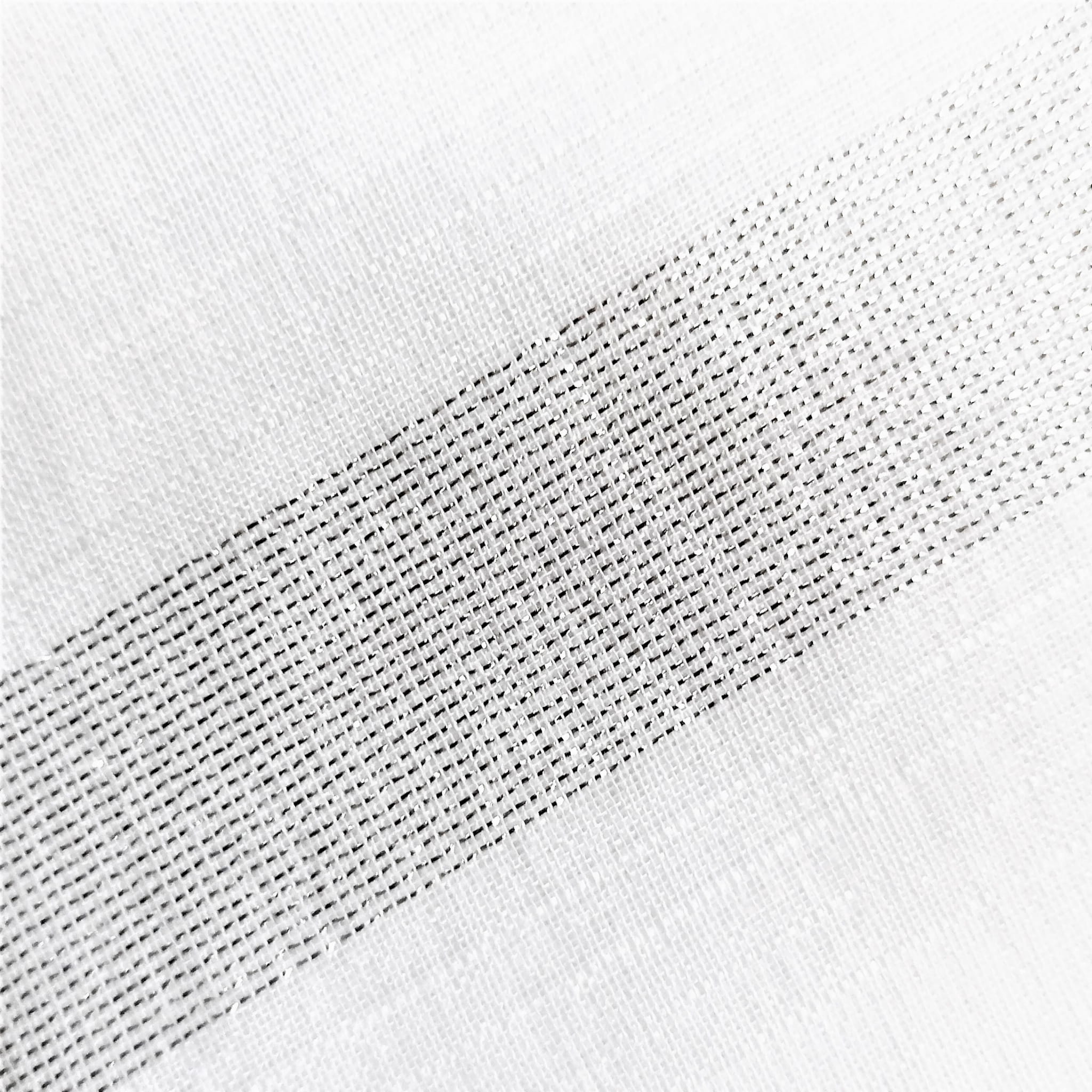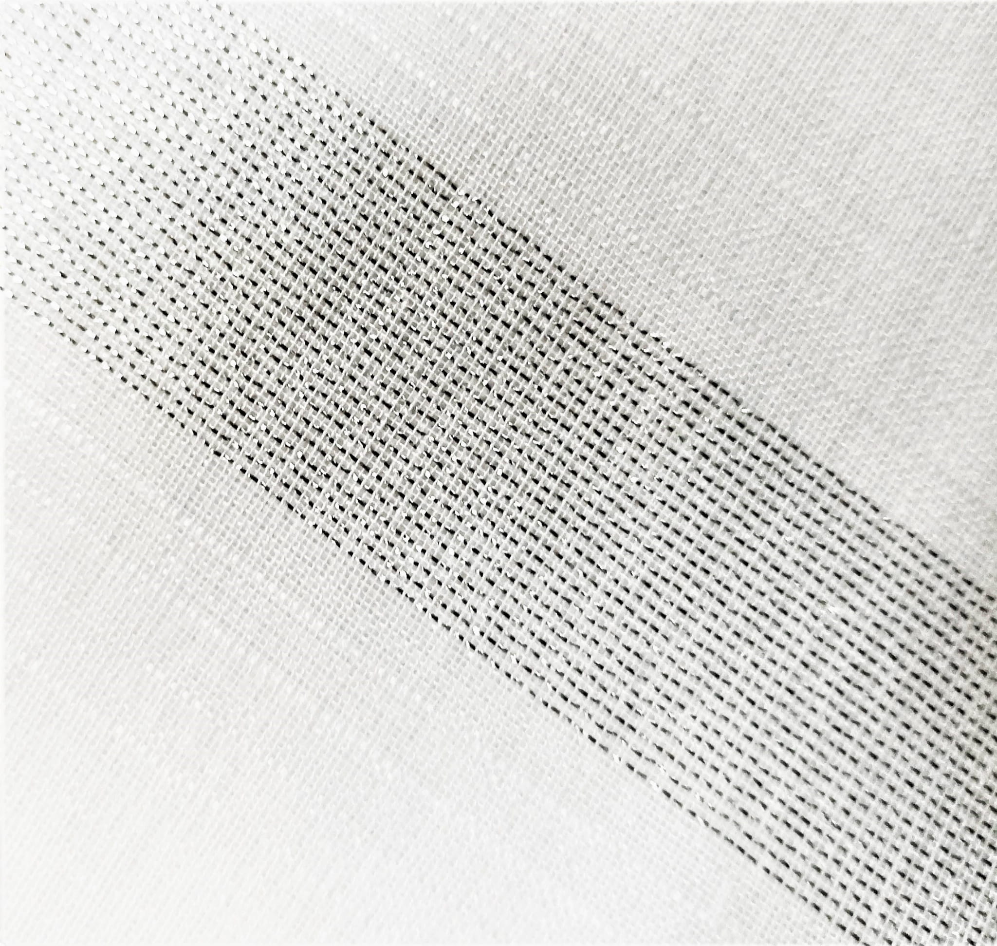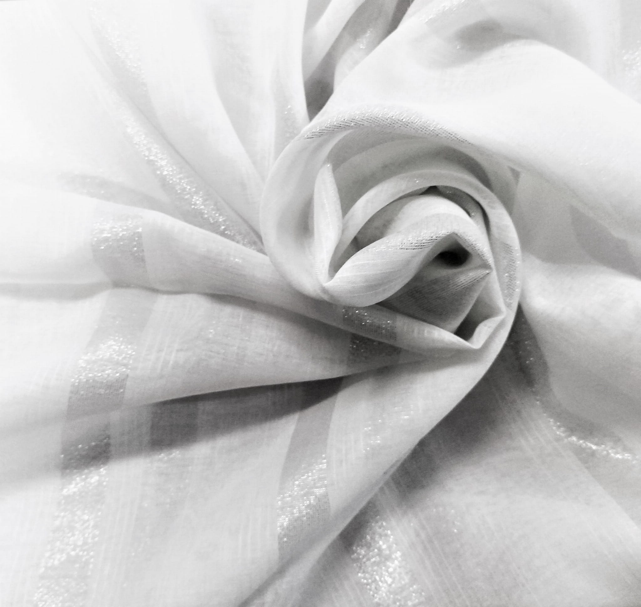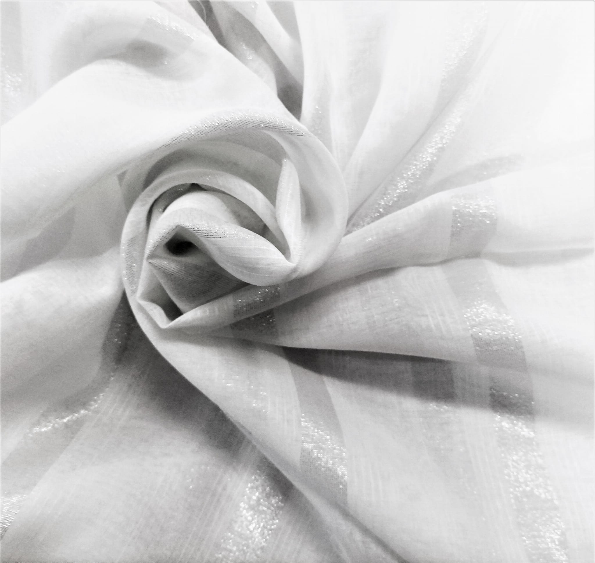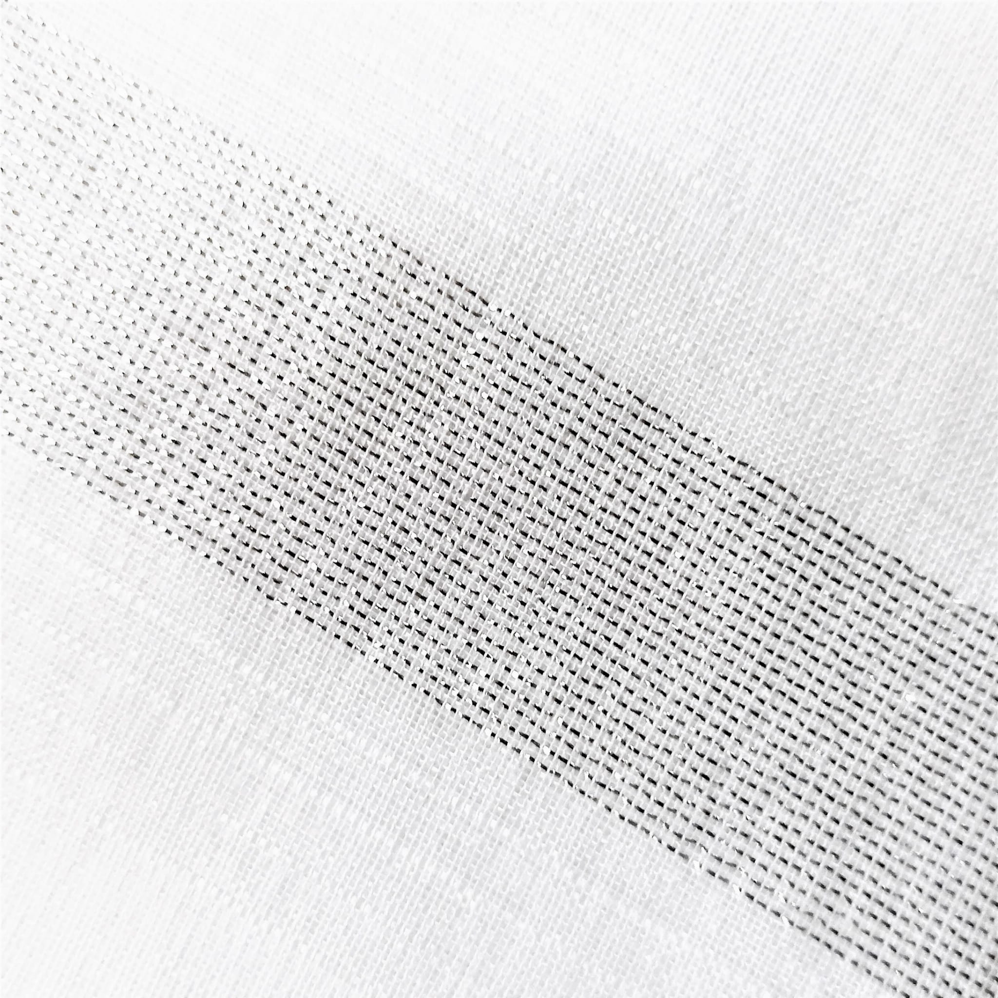 ORYGINALNA FIRANA BIAŁA ETAMINA ZDOBIONA NA CAŁEJ POWIERZCHNI PIONOWO UŁOŻONYMI PASAMI W KOLORZE SREBRNYM TO ŚWIETNA ARANŻACJA OKNA W NOWOCZESNYM WNĘTRZU. DELIKATNA ETAMINA SUBTELNIE PRZEPUSZCZA NATURALNE ŚWIATŁO, A PIONOWE, SREBRZYSTE PASY Z LEKKIM BŁYSKIEM W STYLU GLAMOUR NADAJĄ PRZESTRZENI UNIKALNEGO KLIMATU. REFLEKSY ŚWIETLNE NA STRUKTURZE FIRANKI TWORZĄ NIEZWYKŁY EFEKT GLAMOUR, HARMONIJNIE POŁĄCZONY Z KLASYCZNĄ ELEGANCJĄ. FIRANA WPROWADZA DO POMIESZCZENIA ELEMENT ŚWIEŻOŚCI, ZWIEWNOŚCI I BLASKU.