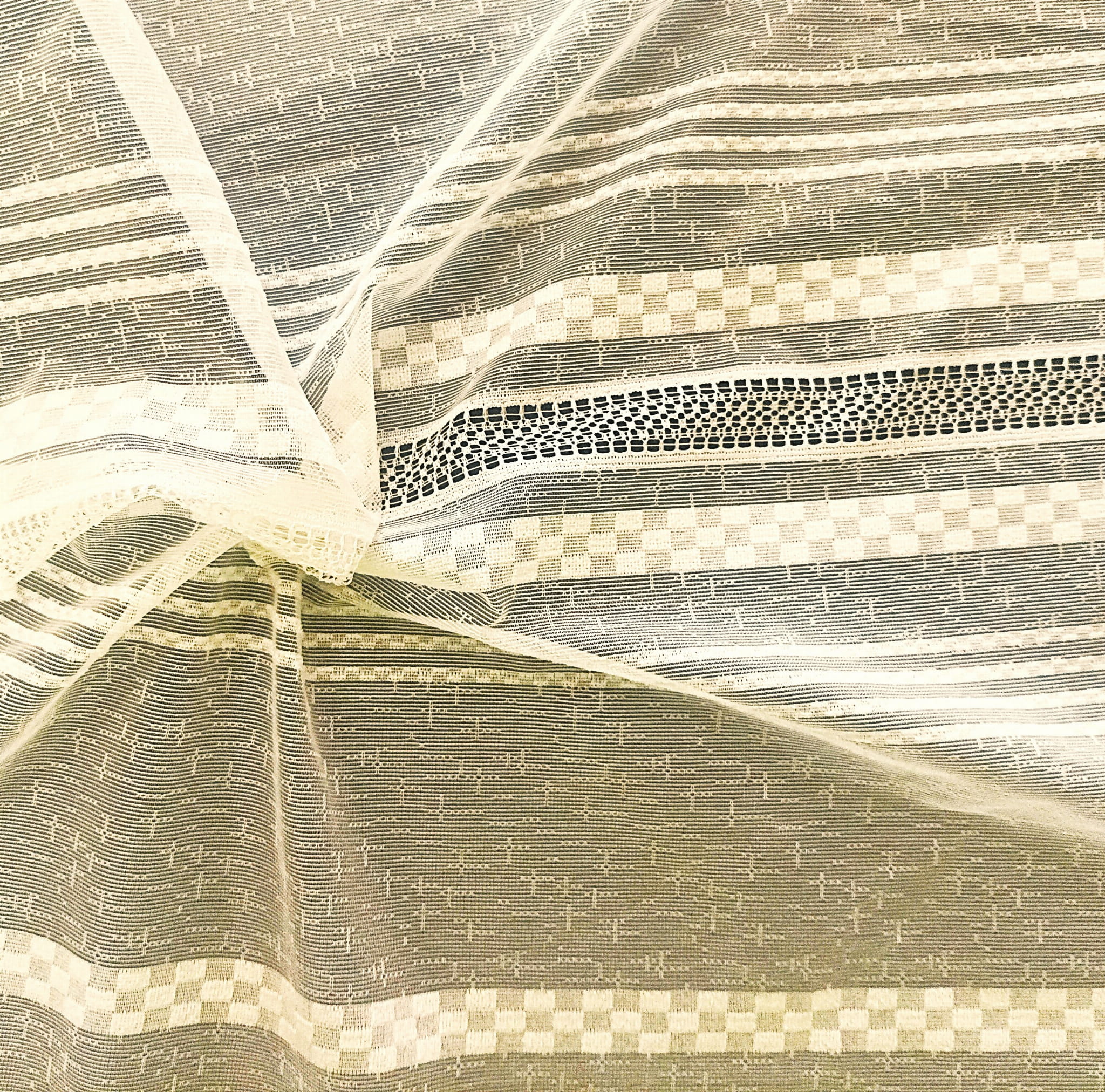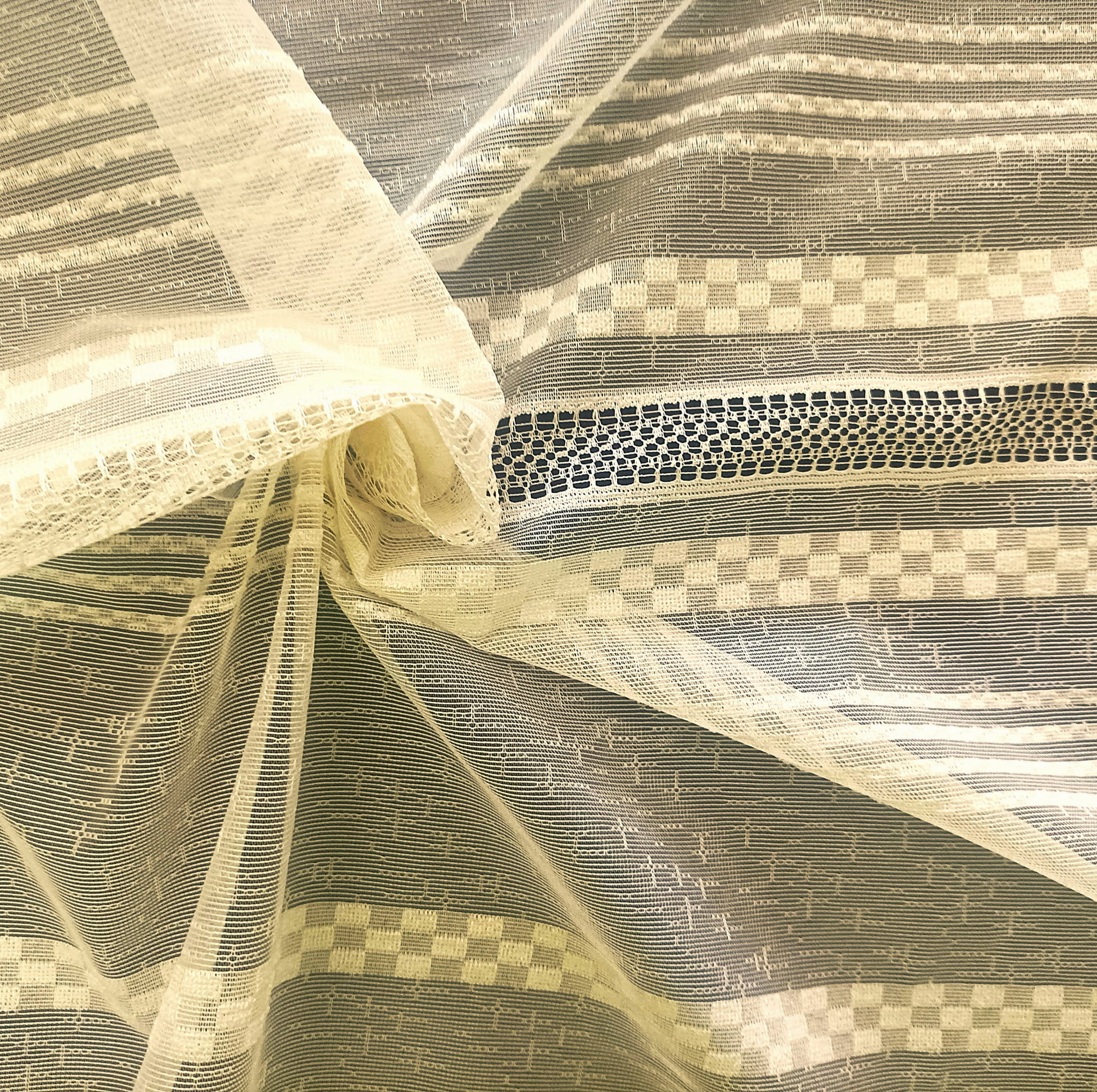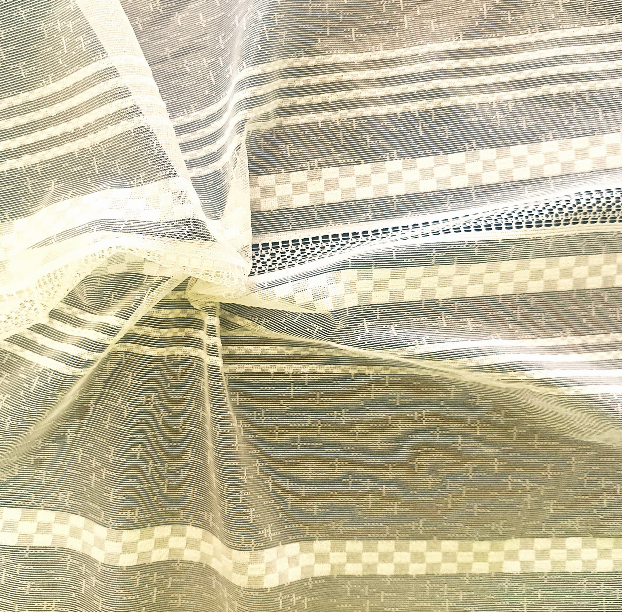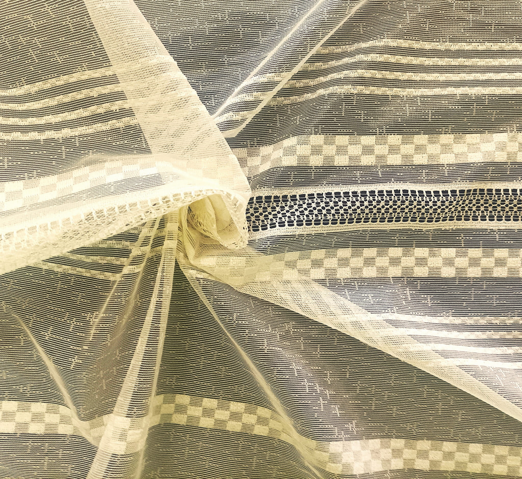 ORYGINALNA FIRANKA ŻAKARD W SUBTELNYM KOLORZE ECRU Z DWOMA SZLAKAMI W POSTACI OZDOBNYCH POZIOMO UŁOŻONYCH PASÓW WYSOKOŚĆ 250 CM PRODUCENT HAFT KALISZ