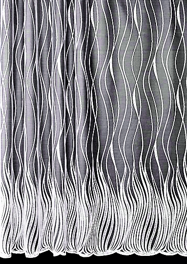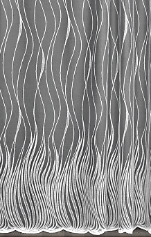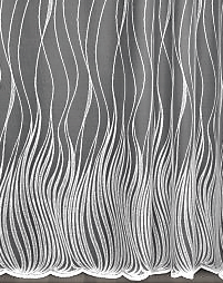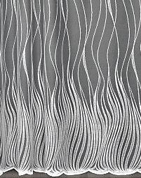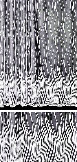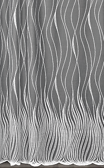 ORYGINALNA FIRANKA ŻAKARDOWA W BIAŁYM KOLORZE Z EFEKTOWNYM WZOREM W POSTACI PIONOWO UŁOŻONYCH FAL I BOGATO ZDOBIONYM DOŁEM WYSOKOŚĆ 160 CM 180 CM 250 CM