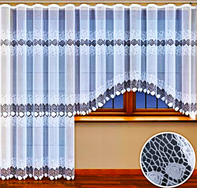 ORYGINALNA GOTOWA FIRANKA ŻAKARD KOLOR BIAŁY Z EFEKTOWNYM WZOREM PRODUCENT HAFT KALISZ