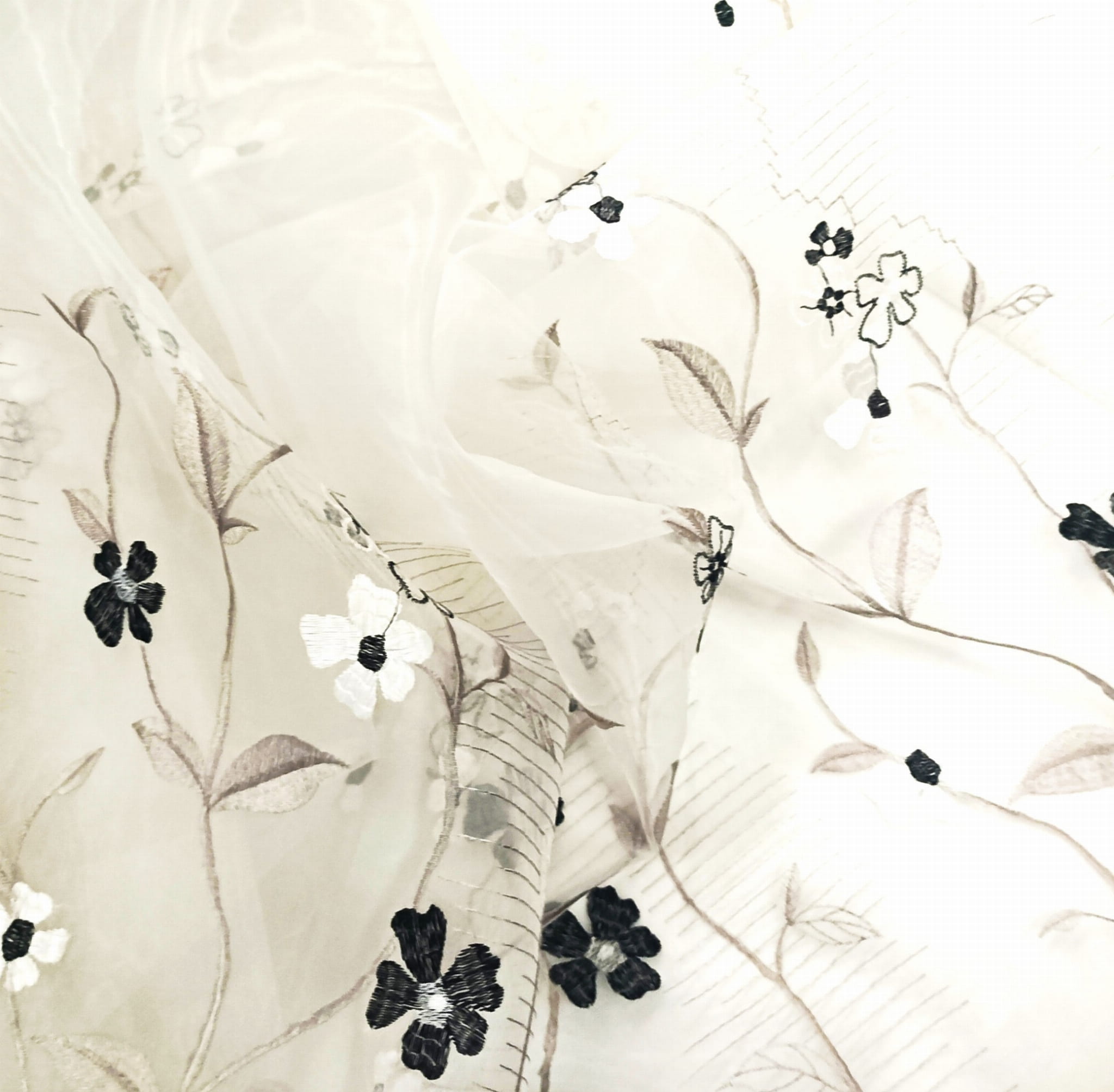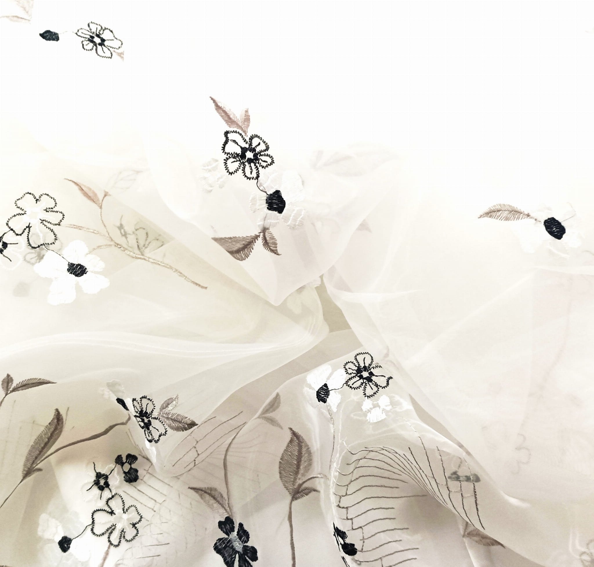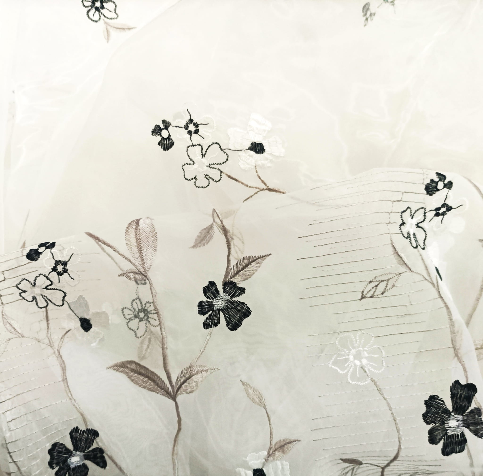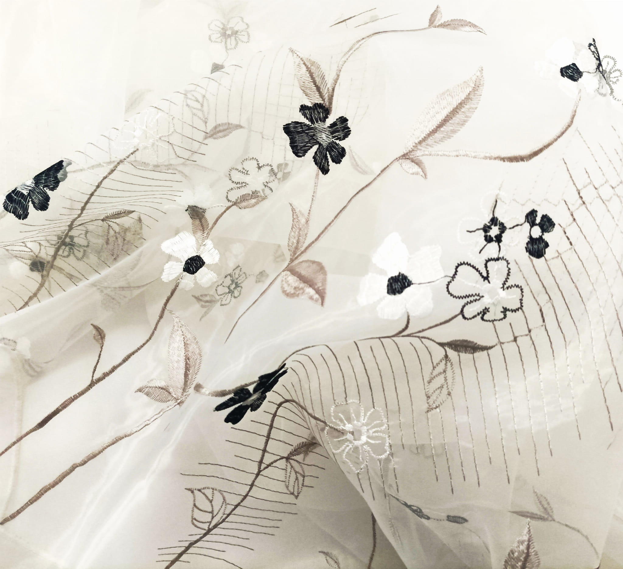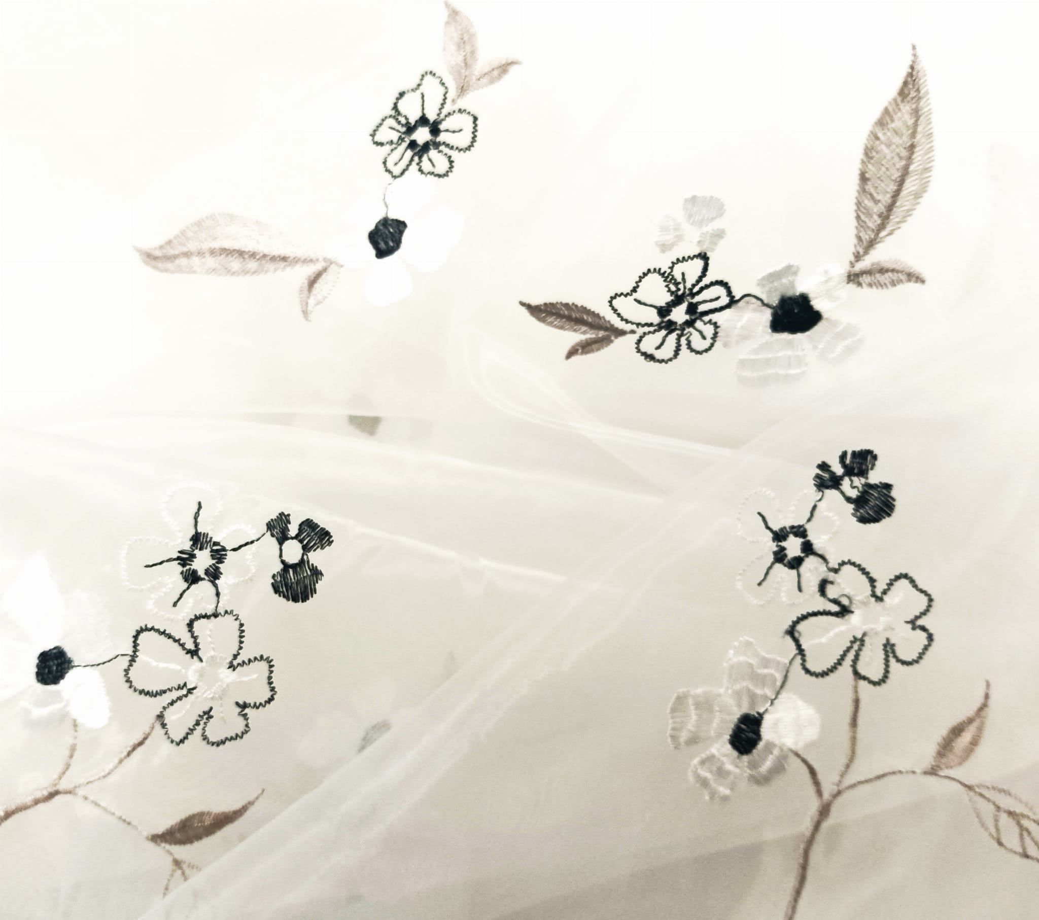 ORYGINALNA ORGANTYNA PREMIUM Z HAFTOWANYM WZOREM FLORYSTYCZNYM W POSTACI DUŻYCH KWIATÓW W PIĘKNYM POŁĄCZENIU KOLORYSTYCZNYM BEŻU, BIELI ORAZ CZERNI NA BIAŁYM TLE Z POŁYSKIEM GLAMOUR TO NIEZWYKLE STYLOWA ARANŻACJA. PREZENTUJE SIĘ EFEKTOWNIE JAKO UNIKALNA, OZDOBNA FIRANA LUB ELEGANCKA, DEKORACYJNA ZASŁONA. SUBTELNIE PRZEPUSZCZA PROMIENIE SŁONECZNE, ROZŚWIETLA I ROZJAŚNIA WNĘTRZE, DYSKRETNIE FILTRUJĄC NADMIAR ŚWIATŁA. ORGANTYNA PODKREŚLA NIEPOWTARZALNY KLIMAT PRZESTRZENI I TWORZY SPEKTAKULARNĄ DEKORACJĘ OKNA W TRENDACH GLAMOUR, VINTAGE, BOHO, RETRO ORAZ KLASYCZNYCH.