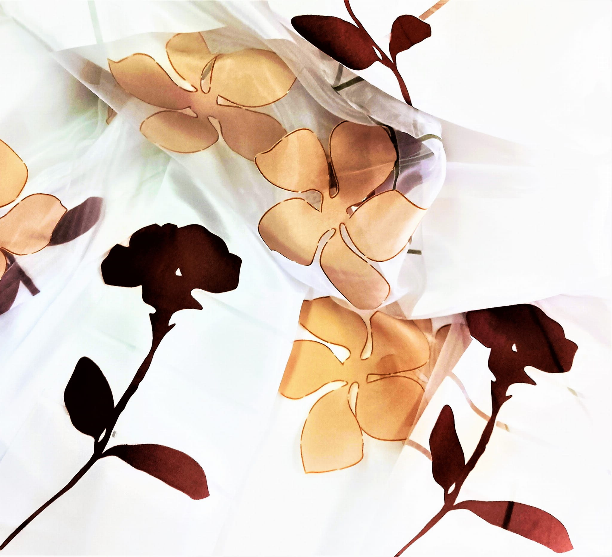 ORYGINALNA ORGANTYNA Z WOALEM KOLOR BIAŁY Z WZOREM W POSTACI SZEROKICH, PIONOWO UŁOŻONYCH PASÓW Z ORNAMENTAMI W KOLORZE CZEKOLADOWEGO BRĄZU I CIEPŁEGO BEŻU TO BARDZO EFEKTOWNA DEKORACJA OKNA. UNIKALNE POŁĄCZENIE PRZEZROCZYSTEJ ORGANTYNY I BIAŁEGO WOALU Z PRZEPIĘKNYMI, DUŻYMI KWIATOWYMI ORNAMENTAMI NADAJE ARANŻACJI SPEKTAKULARNEGO EFEKTU. DELIKATNA I ZWIEWNA FIRANA DYSKRETNIE FILTRUJE PROMIENIE SŁONECZNE, UKŁADA SIĘ DOSKONALE I TWORZY STYLOWI KLIMAT WNĘTRZA. JEST IDEALNA JAKO ELEGANCKA FIRANA LUB PEŁNA FINEZJI ZASŁONA. ŚWIETNIE SPRAWDZI SIĘ W PRZESTRZENIACH, URZĄDZONYCH W STYLU RETRO, VINTAGE, ANGIELSKIM, RUSTYKALNYM, GLAMOUR, BOHO ORAZ EKLEKTYCZNYM.